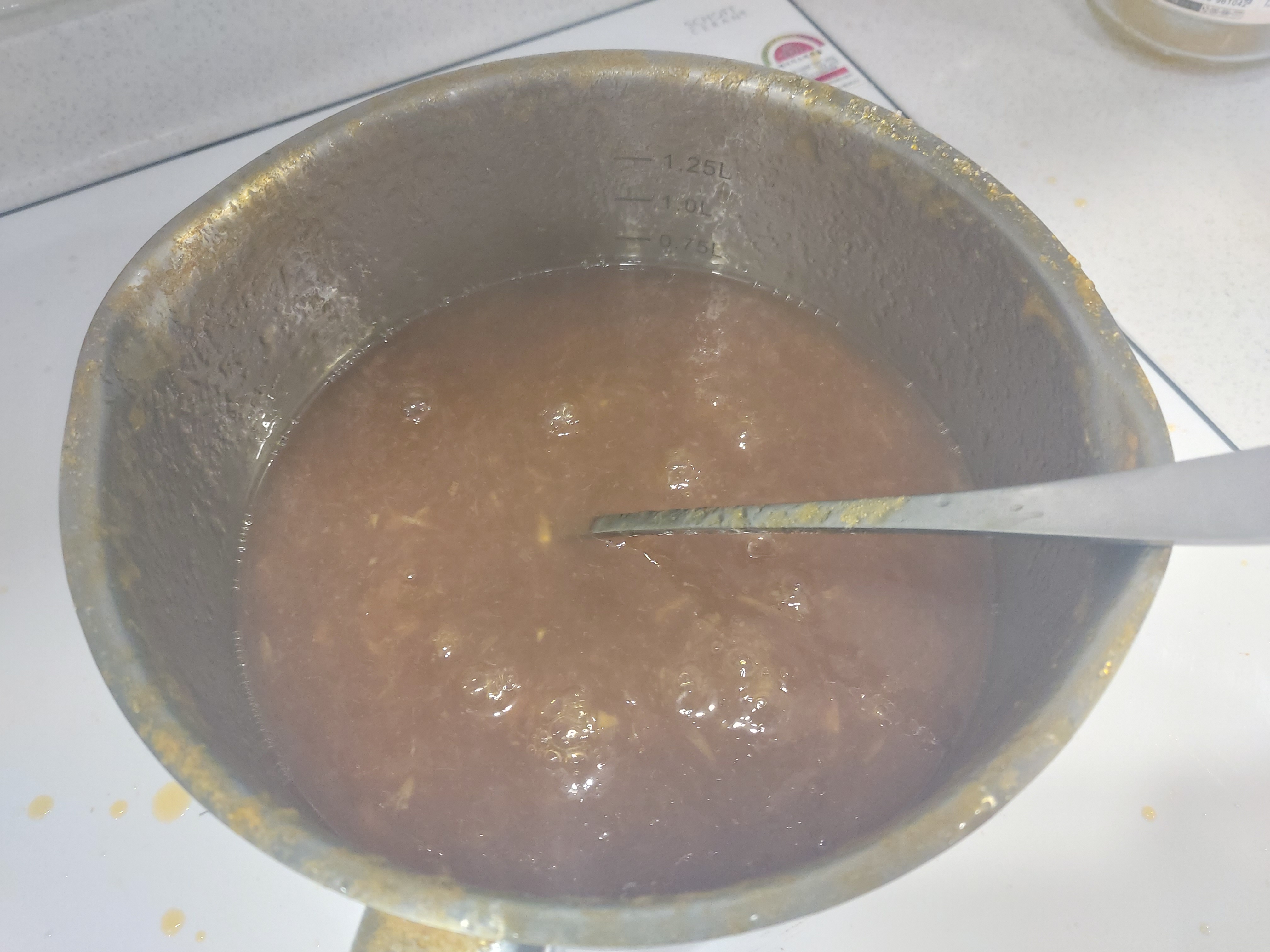 설탕 사진이 없는데 설탕은 먹을만큼..... 계량을 하고 넣지는 않았는데 종이컵기준으로 2컵 정도 넣었던 것 같다. 설탕을 녹이기 위해 한번씩 저어주고 중간중간 한번씩 묽기도 확인하면서 또 저어줬다.