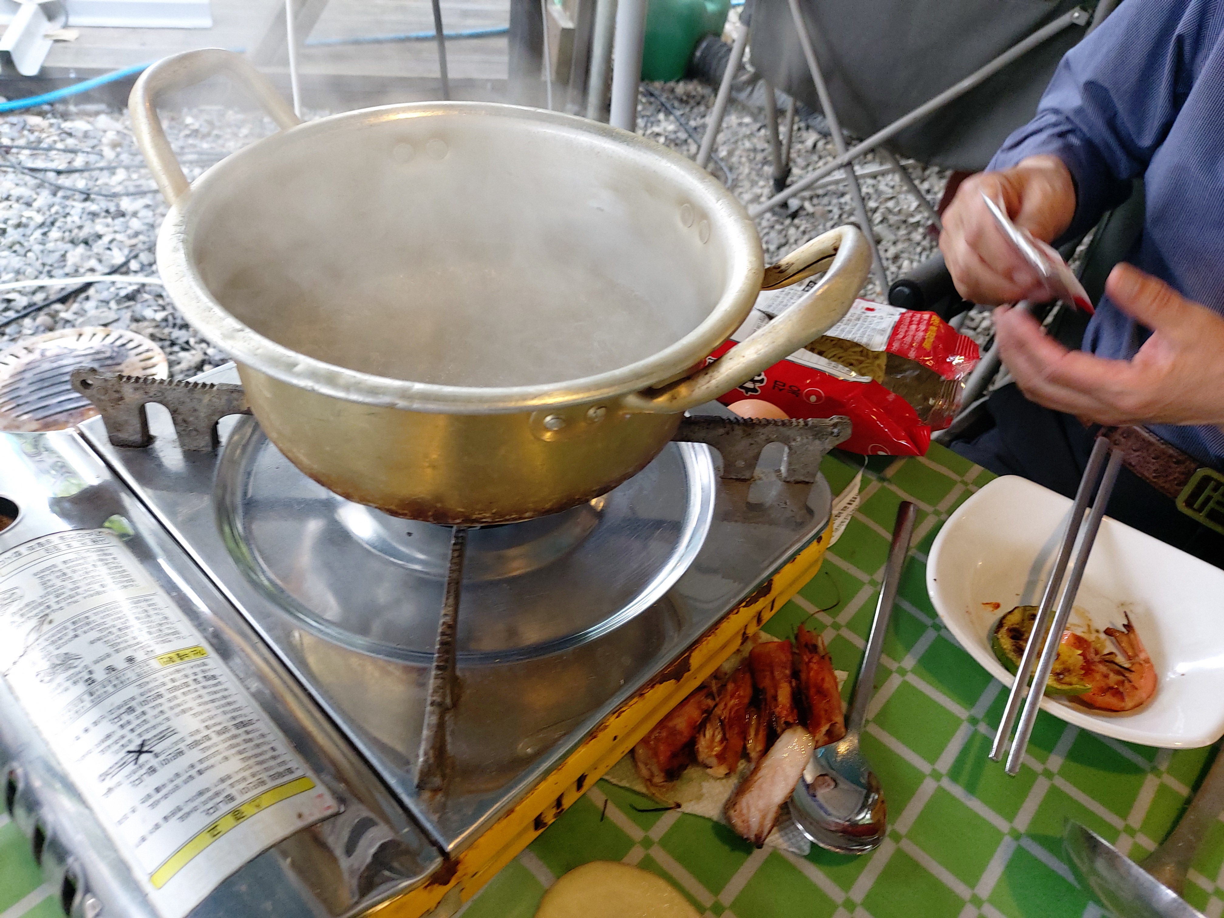 고기먹고 진짜 배불렀는데 캠핑느낌에 라면은 정말 먹고싶다 해서 라면도 주문해서 먹음.
