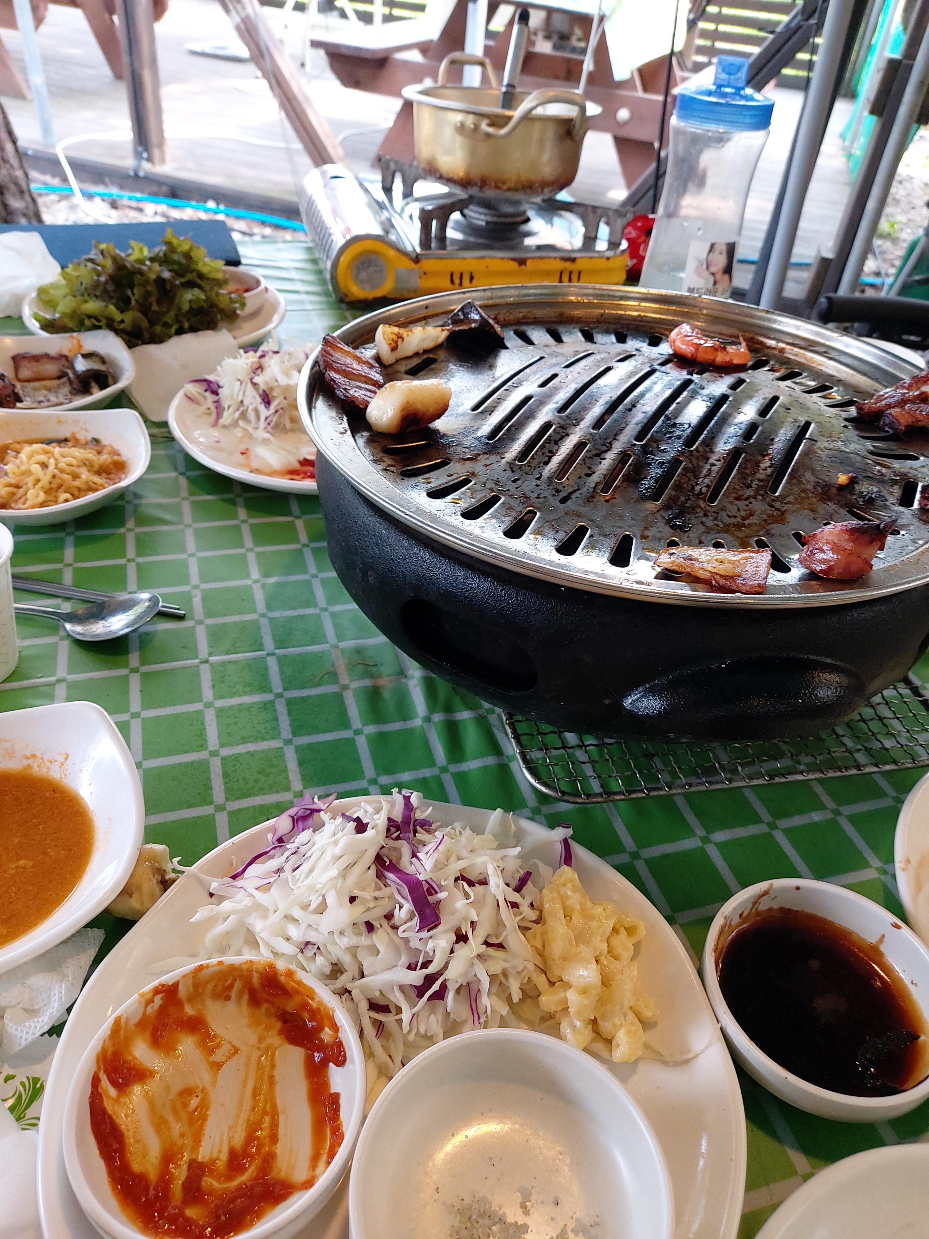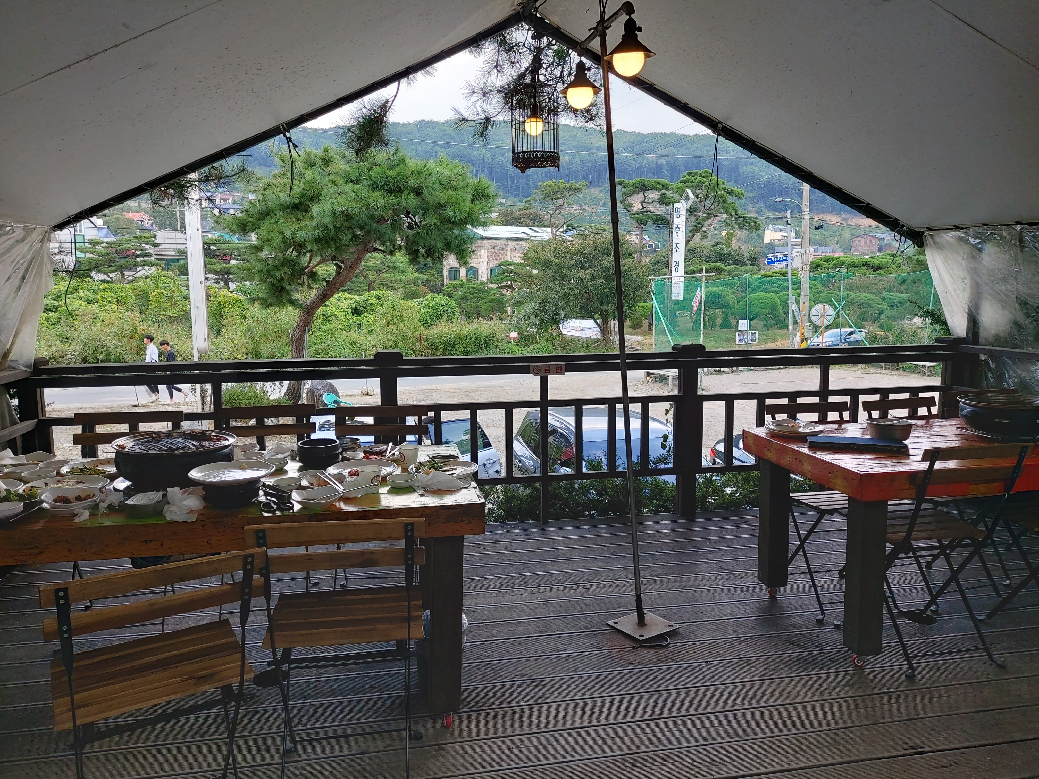 사실은 더 위쪽에 있는 항아리에 고기를 구워서 판다는 어느 고깃집에 가려다가 사람이 너무 많아서 (쫄려서) 포기하고 가는길에 봐뒀던 모노캠프로 향했다. 검색했을때도 캠핑 느낌의 분위기에서 식사를 할 수 있다고 해서 왔는데 앉을때부터 먹고나서까지 가족들이 다 잘한 선택이었다며 칭찬해서 매우 뿌듯함을 느꼈다.