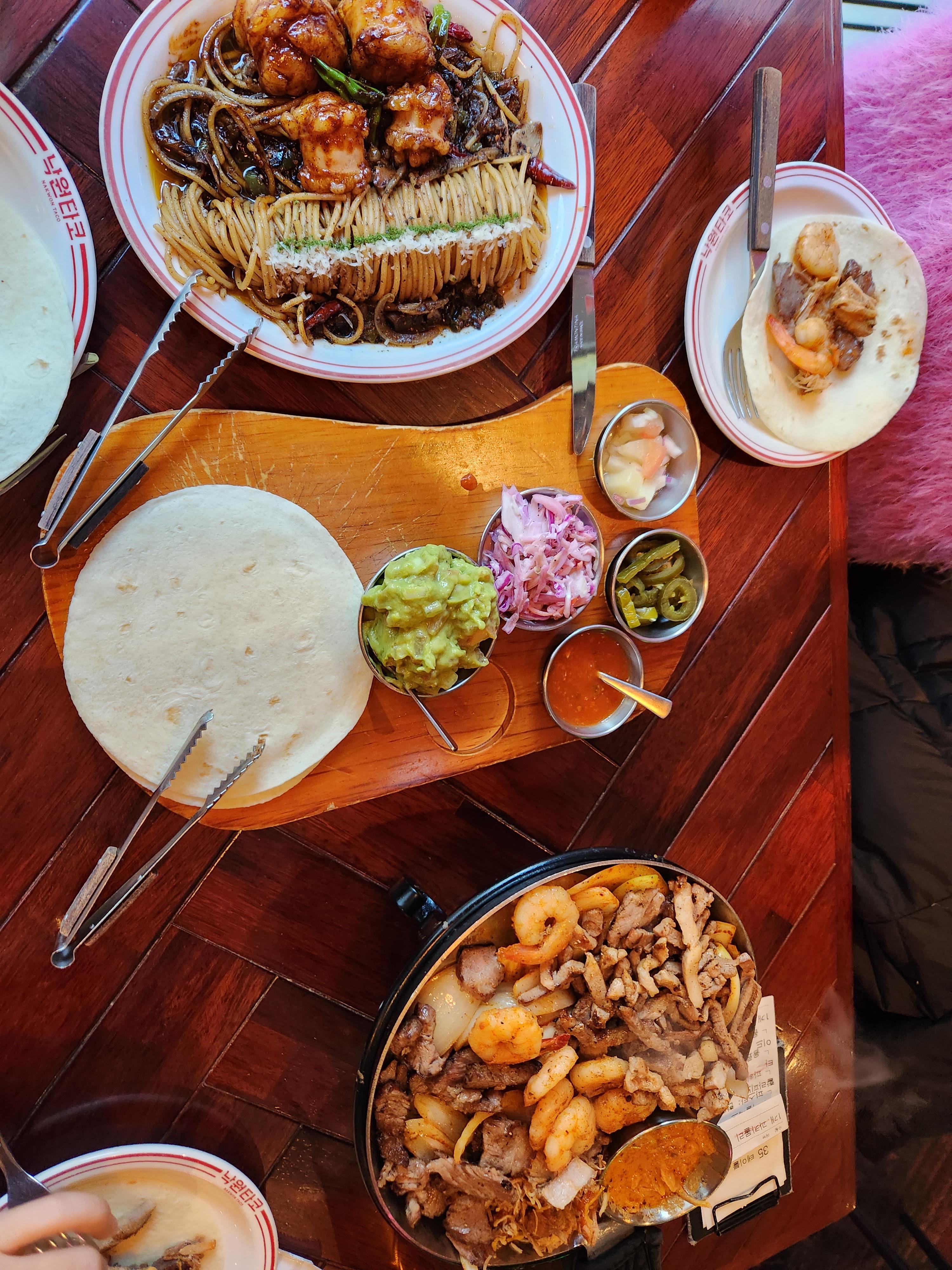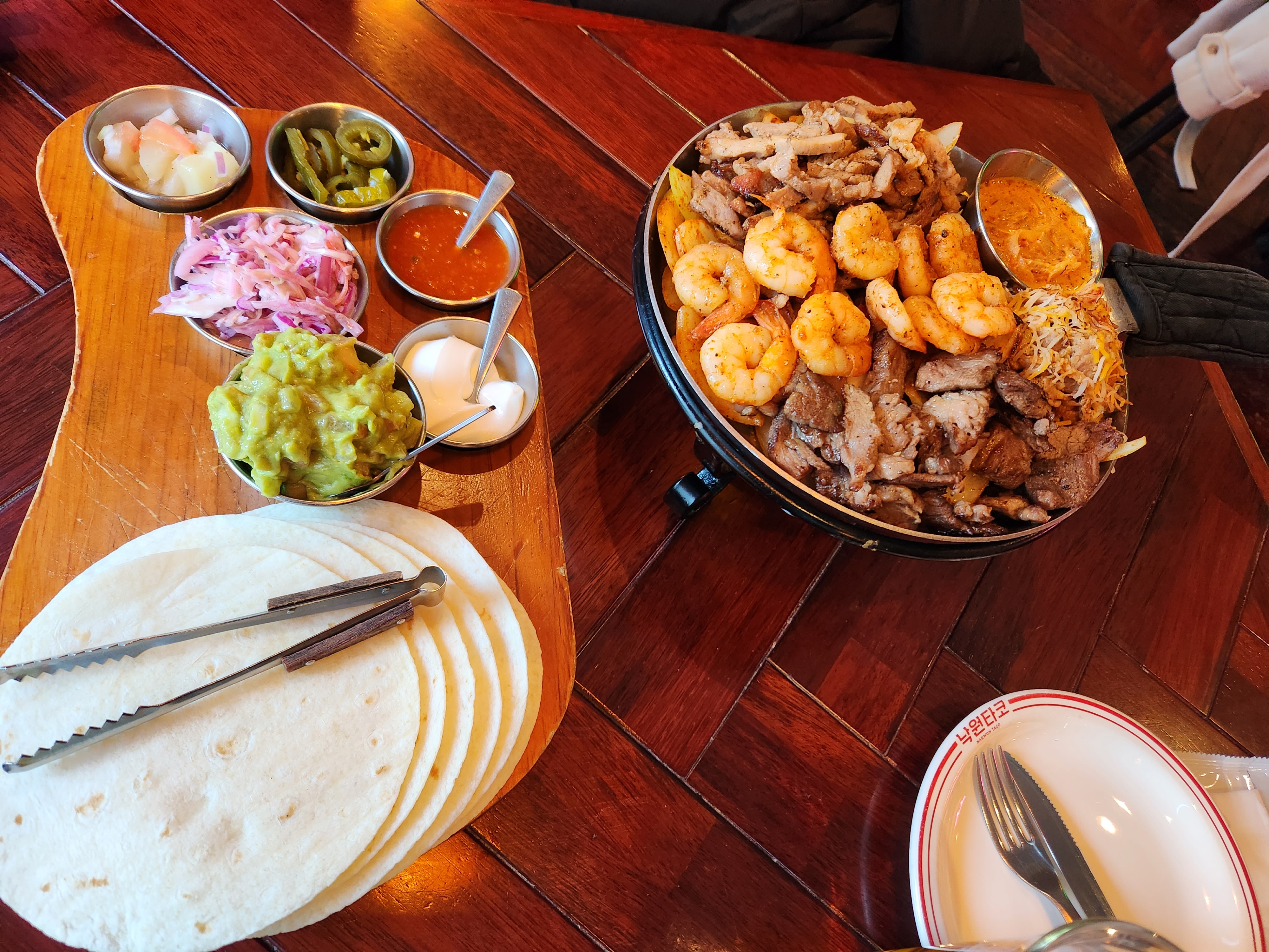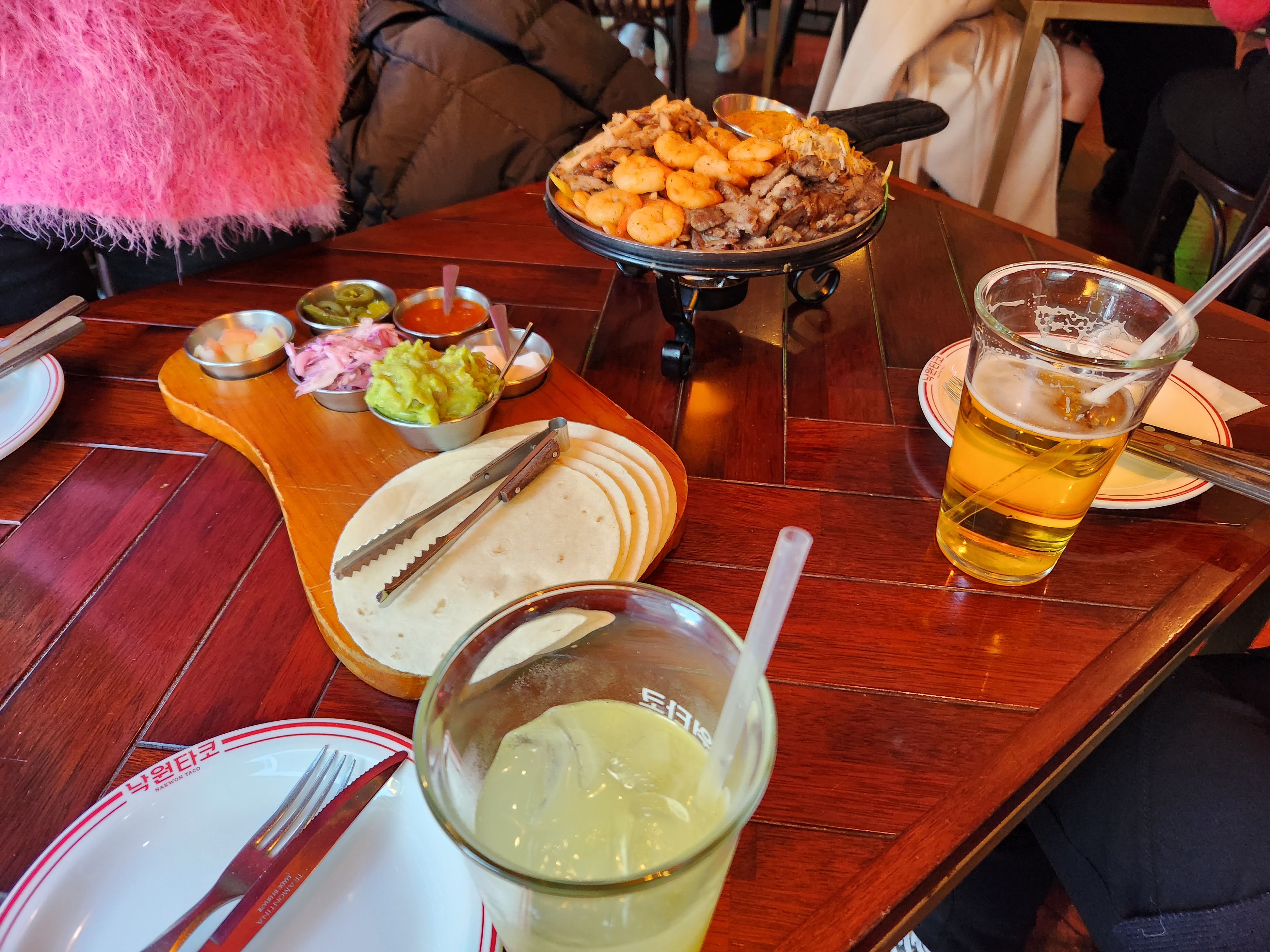 낙원 파히타의 기본 메뉴는 고기, 새우, 고기 이런 구성으로 새우를 좋아하지 않는 사람은 미트러버였나... 고기만 들어간 메뉴가 있으니 그걸 주문하는 것도 괜찮은 방법일 것 같다. 개인적으로는 대창파히타를 주문할까 싶었는데 그건 세트메뉴가 안돼서 안먹어본 다른 사람들을 위해 기본 메뉴로 결정되었다.