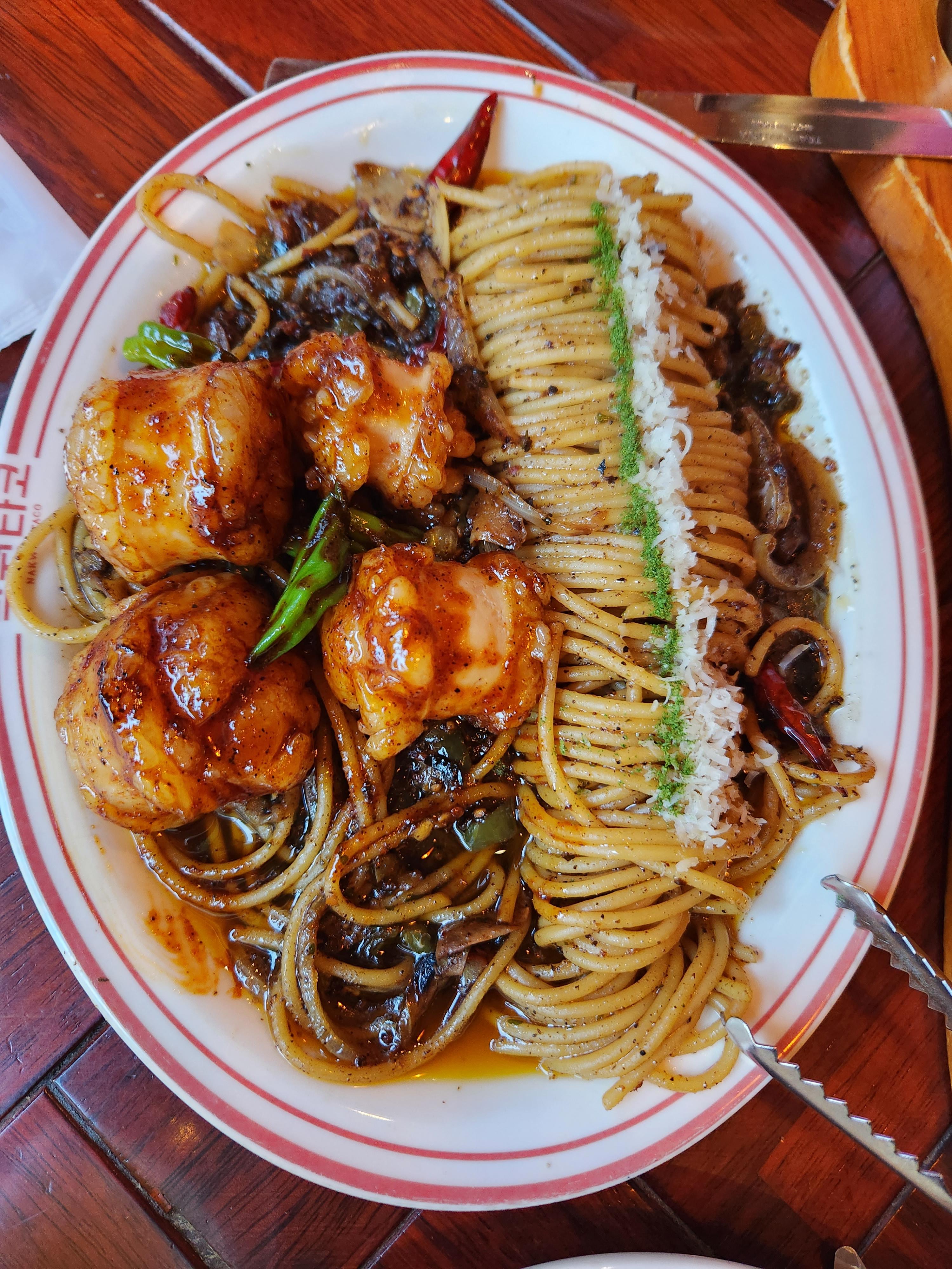 이 파스타는 이름에서도 살짝 매운 맛이 느껴지긴 했지만, 후추 매운맛에 가까워서 먹다보면 맵기도 매운데 기침이 나기도 한다. 소스가 그렇게 매워보이진 않지만 제법 매워서 음료수의 대부분을 이 파스타 때문에 먹게 되는 사태가 벌어졌다. 그래도 맛있게 중독적으로 매운 맛 덕분에 계속 먹게되는 맛이었다. 다만 파히타에 비하면 엄청 자극적이라 번갈아가며 먹으면 파히타의 맛을 잘 못 느낄 수 있다.