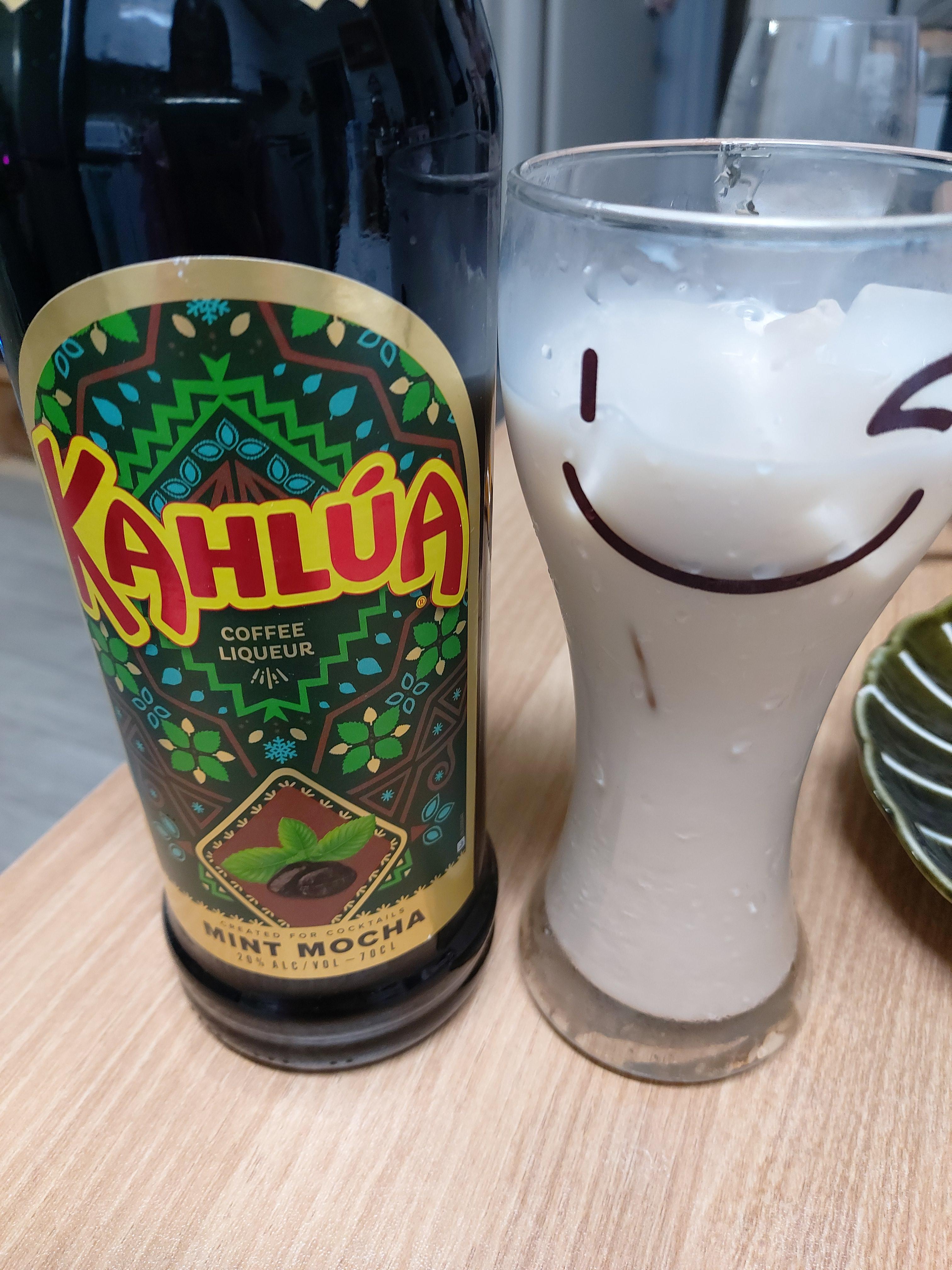술은 민트초코맛 깔루아. 민트맛은 조금 나지만 깔루아는 옳다. 맛있음 ㅎㅎ