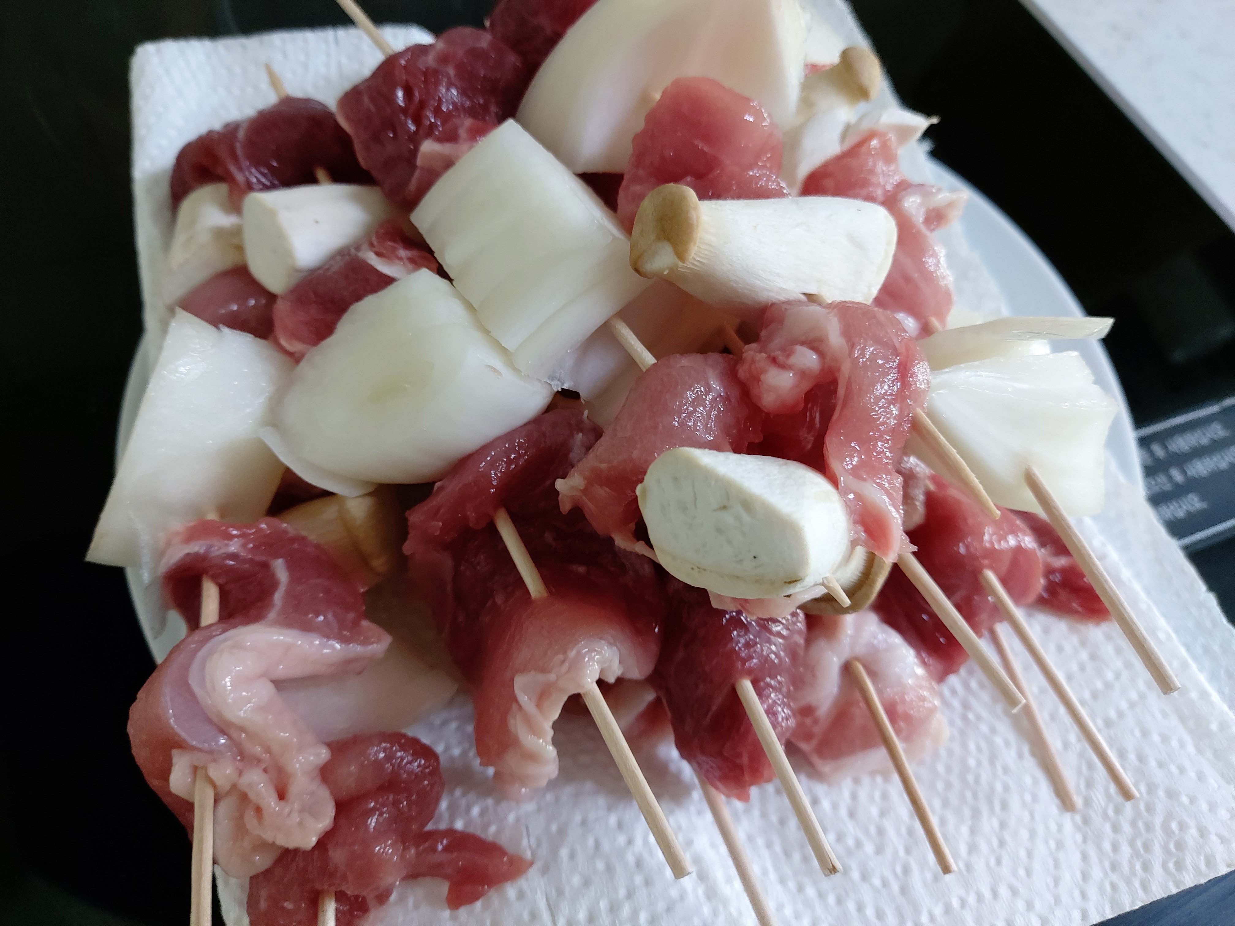 야채는 가볍게 버섯과 양파 정도. 그리고 다이소에서 사온 꼬치.