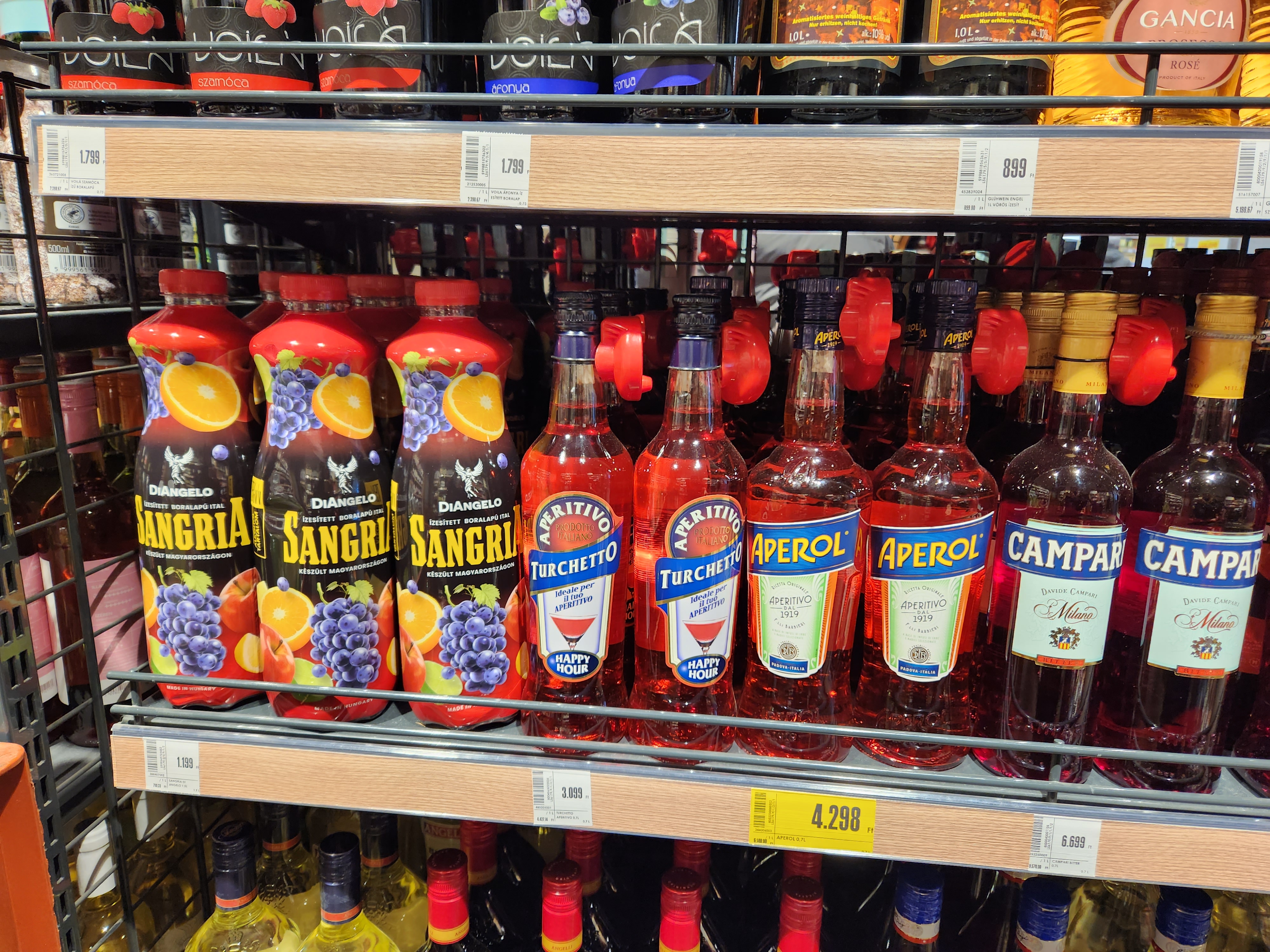 한국에서도 쉽게 찾을 수 있는 아페롤과 캄파리. 식전주로 가볍게(?) 마실 수 있는 술들이다. 샹그리아는 거의 음료수처럼 마실 수 있을 것 같지만 헝가리에는 이미 너무 다양한 종류의 술들이 갖춰져 있었다.