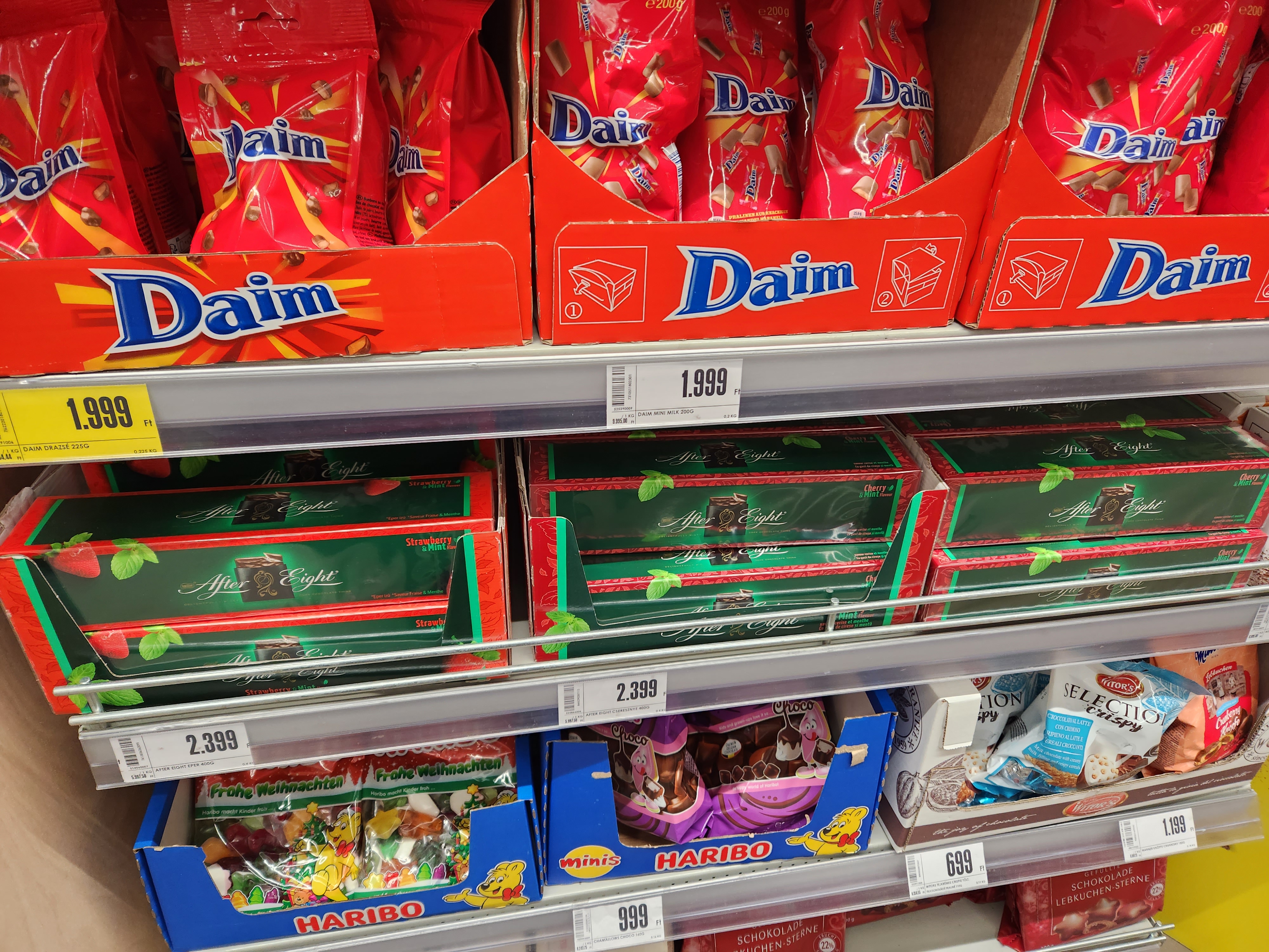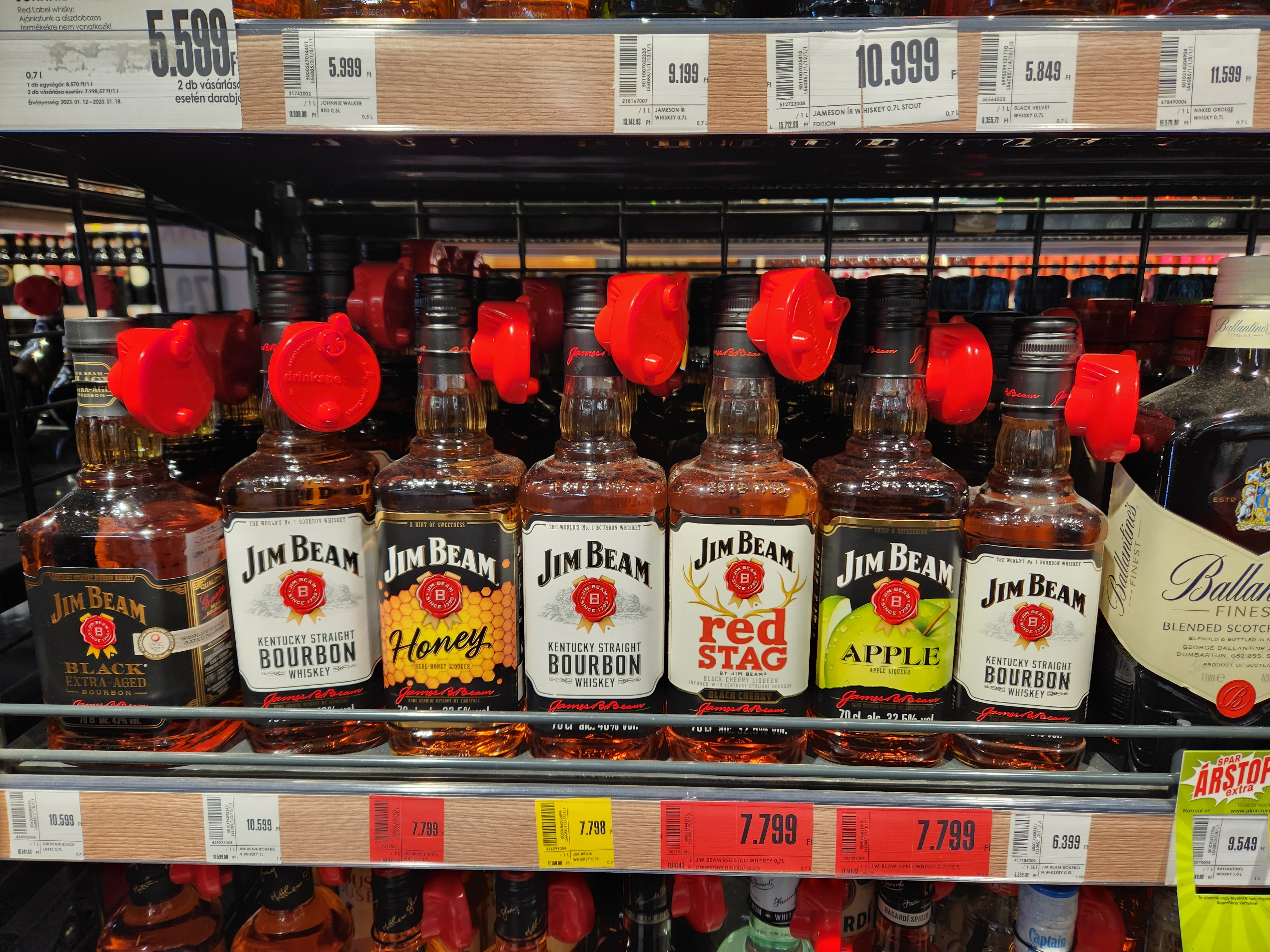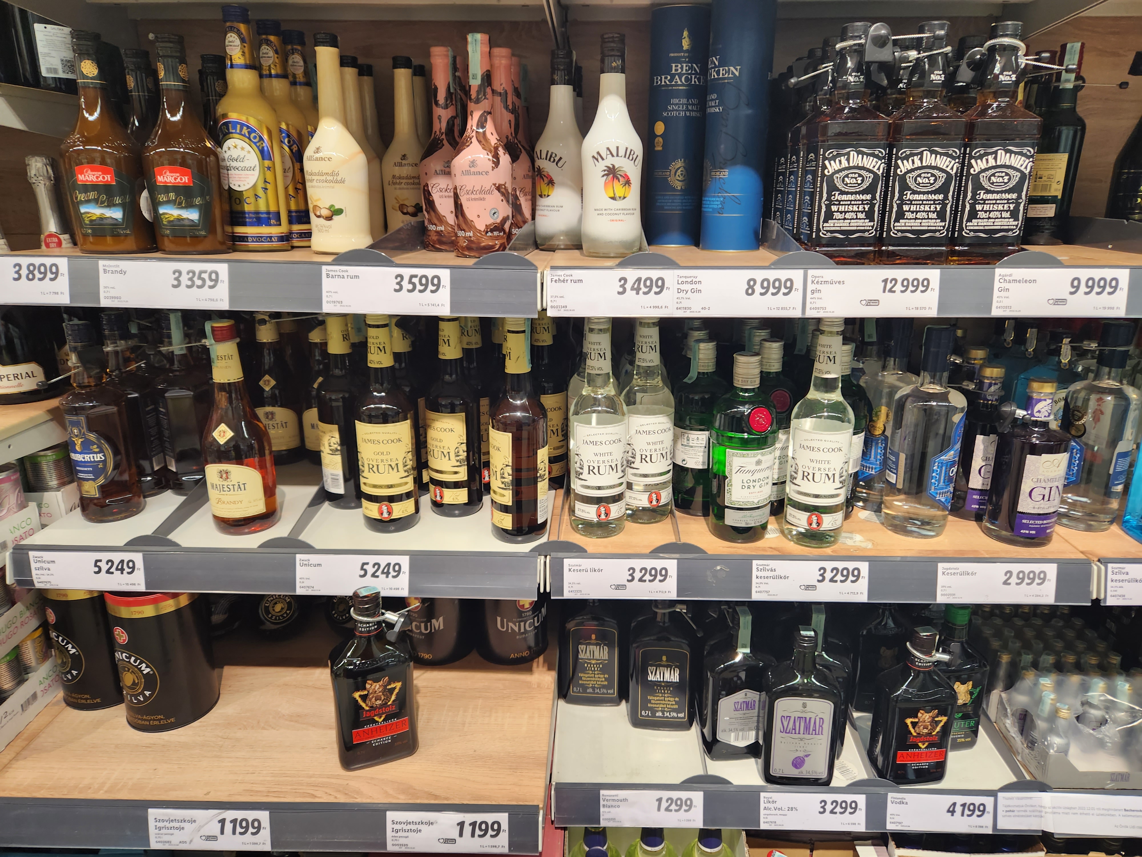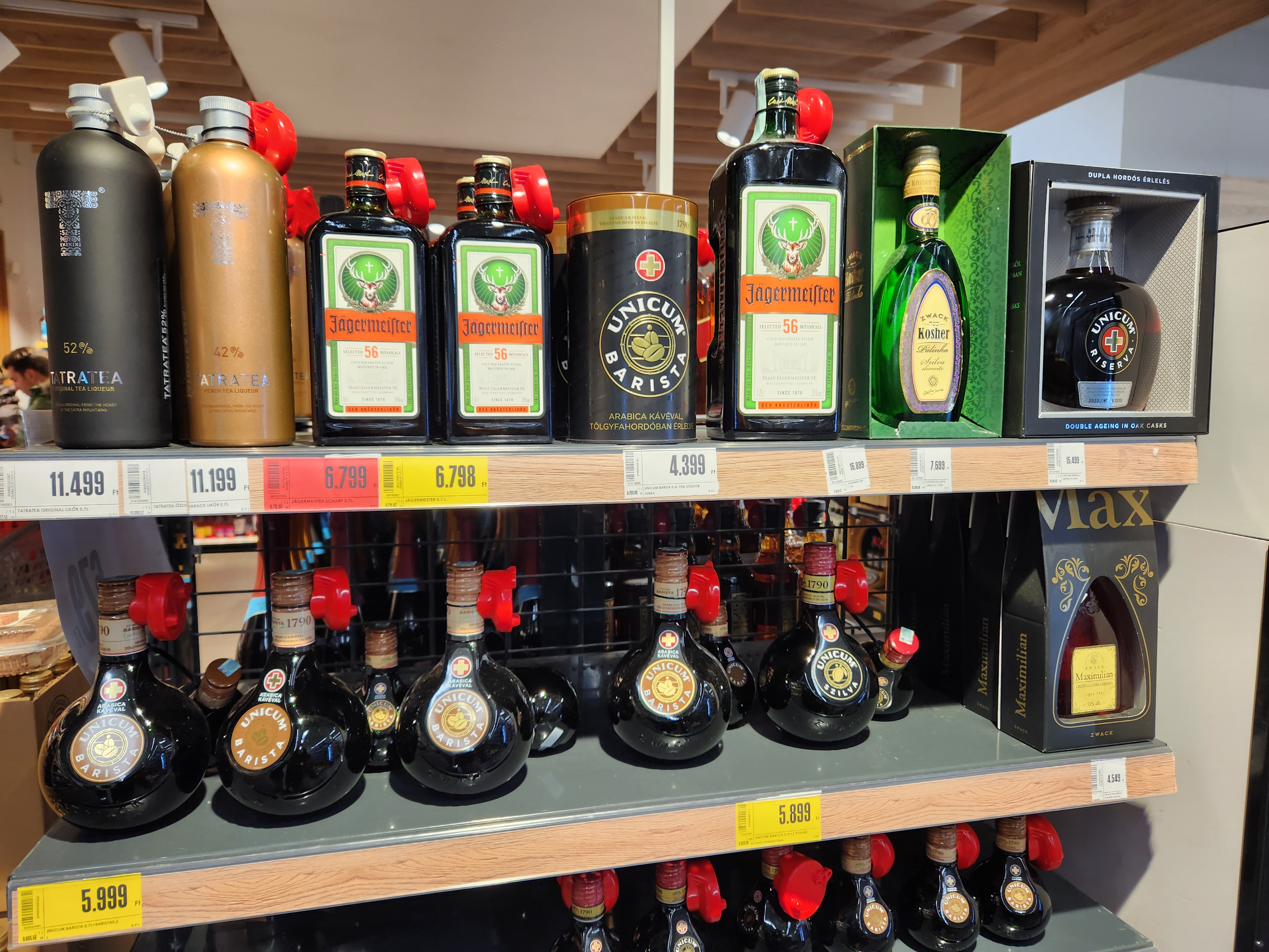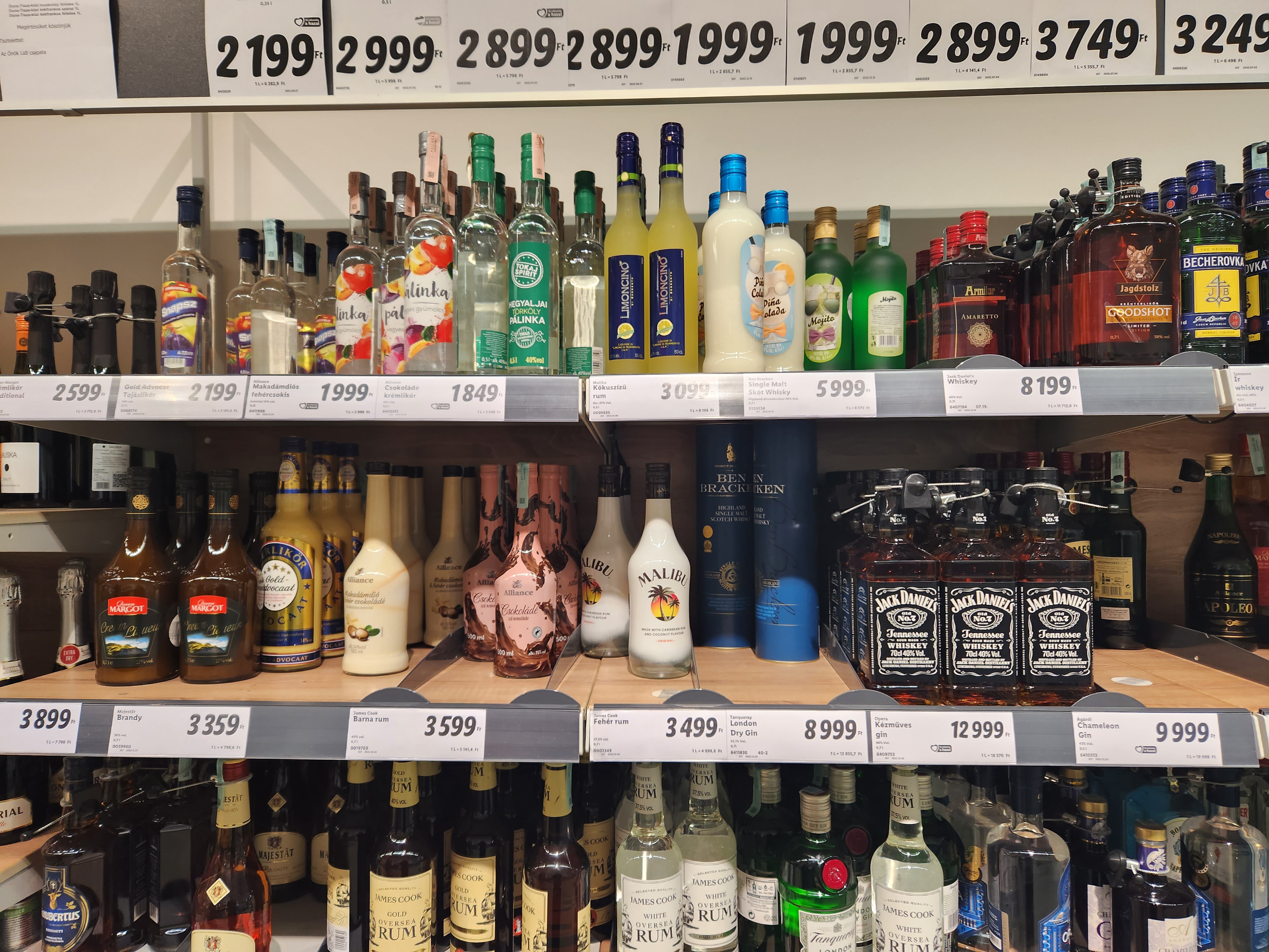 보자마자 감탄한 술 영역. 짐빔도 다양한 종류가 있었고 바카디나 발렌타인, 잭다니엘도 종류가 많았다. 가격도 이만하면 제법 싼 편이라고 본다. 짐빔이 2만원대, 잭다니엘이 3만원 조금 안되는 가격이면 한국보다는 훨씬 싼 것 같기도 하다. (주세 때문이겠지만..) 물론 헝가리에 위스키를 사러 오진 않지만 술을 마시겠다면 한국에서 사오기보단 그냥 와서 사면 될 것 같다.