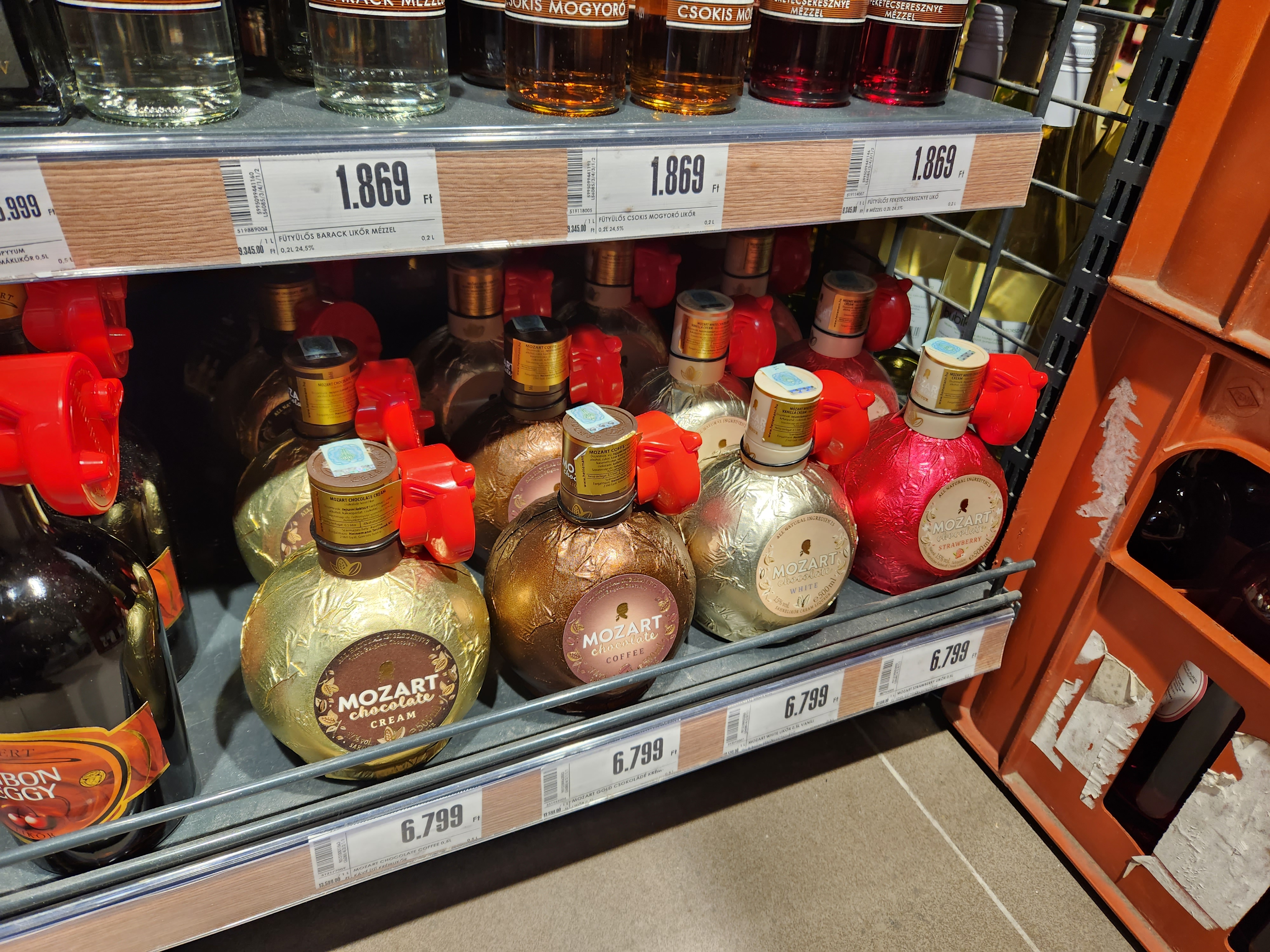 마지막으로 부다페스트 공항의 술 가격. 분명 면세인데.....? 가격이 비싼 느낌이 든다면.... 윗칸의 26.9유로짜리 모짜르트는 마트에서 본 것보다 훨씬 큰 크기였고, 아래에 있는 16.9 짜리 모짜르트는 위에 있는 것보다 작은 크기다.