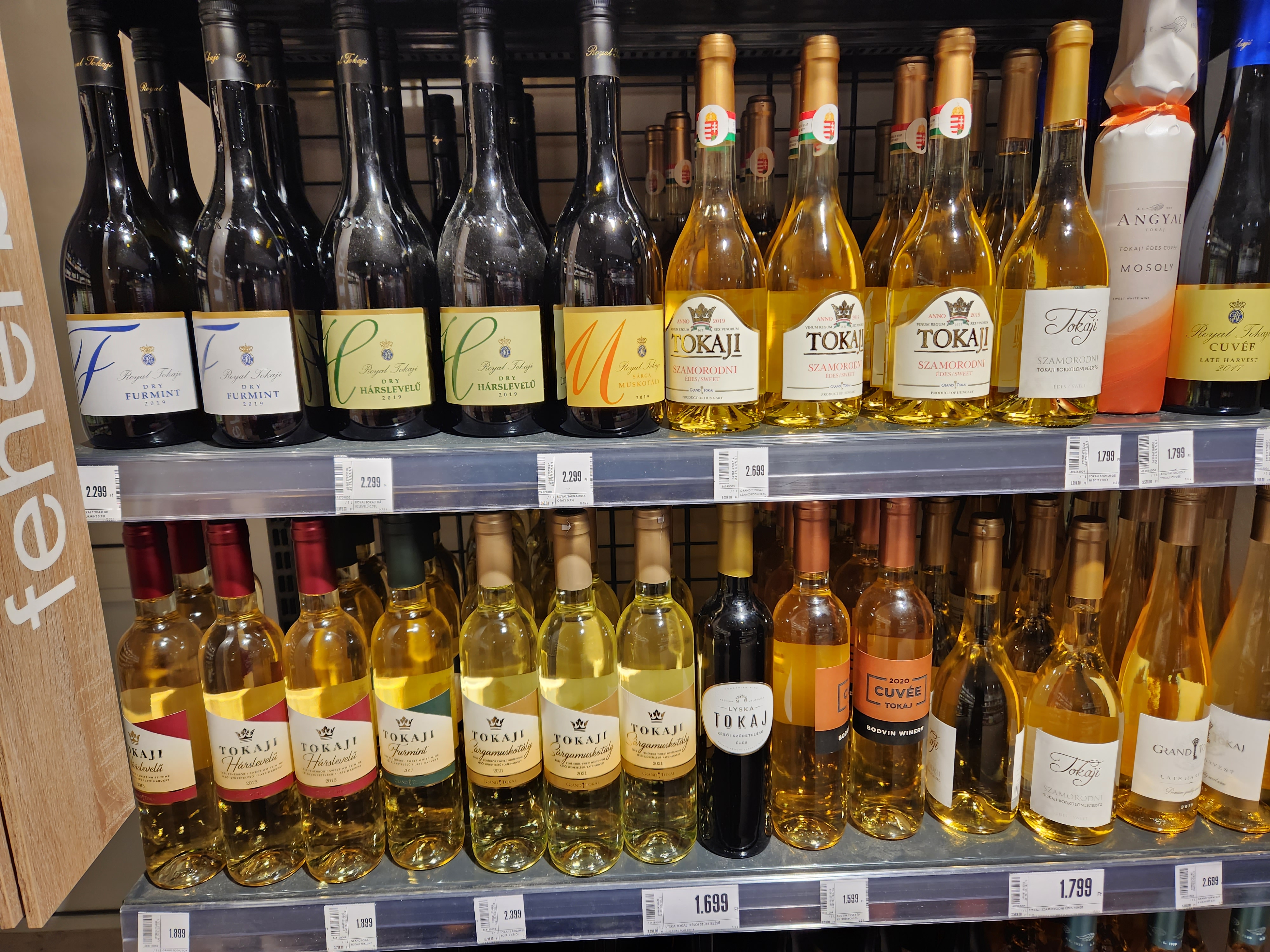 헝가리에 오면 꼭 사야한다는 토카이와인! 한국에서는 엄청 비싼 가격으로 살 수 있다고 해서 토카이와인을 마셔보고 더 사기도 했다. 마트에서는 당도 5가 대부분이었고 6은 거의 찾아볼 수 없었다. 가끔 있는 곳이 있다고 하던데 내가 간 마트에서는 못봤다. 전문 매장 혹은 면세점에서는 쉽게 찾을 수 있다.