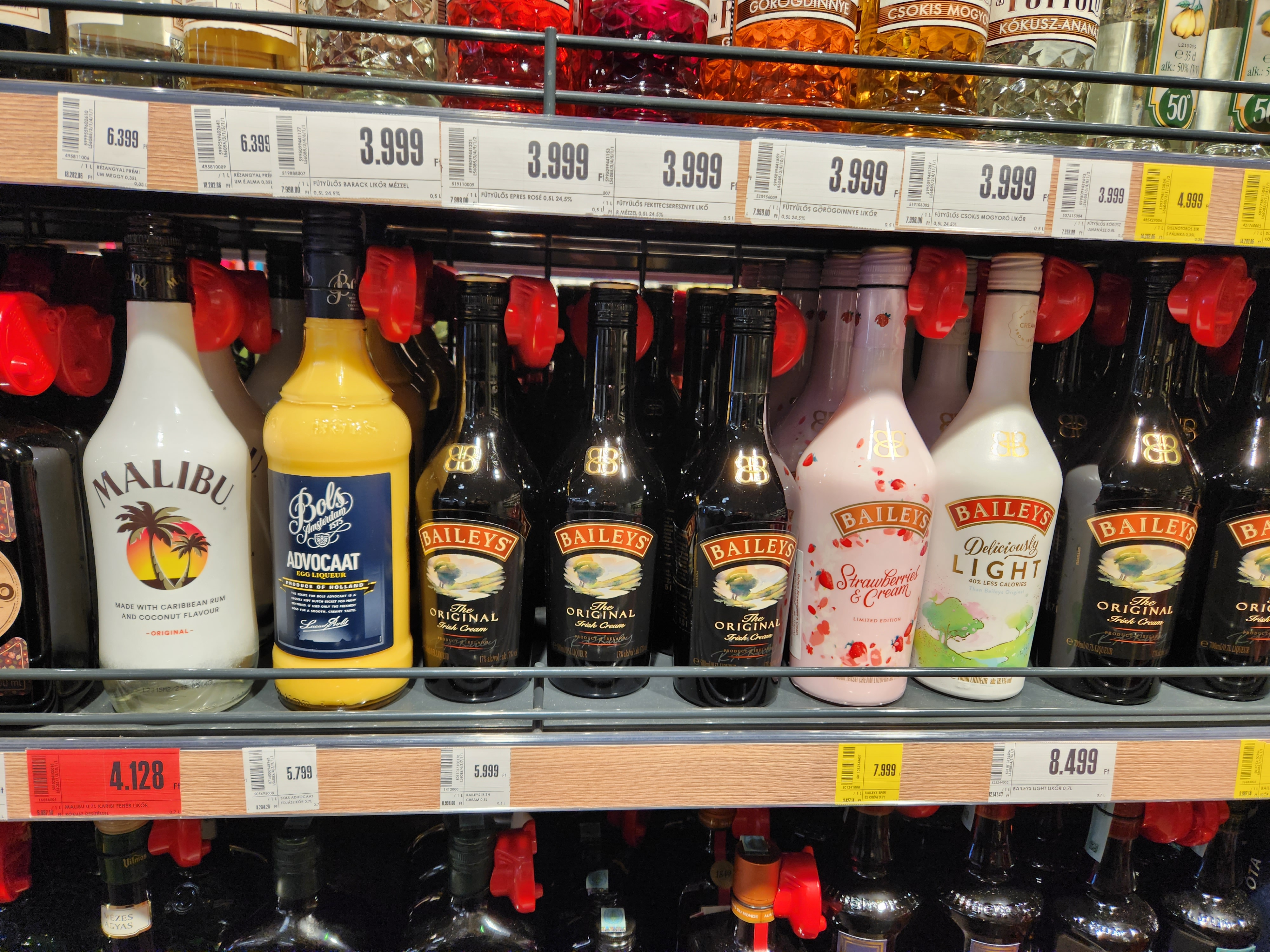 팔린카 외에도 다른데서 찾기 힘든 몇가지 술을 봐서 신난 나머지 사진을 더 찍어보았다. 베일리스 딸기는 가끔 다른데서도 봤지만 초록색의 LIGHT 는 처음 봤다. 헝가리에서 사고싶은 술이 이미 너무 많아서 뭘 사진 못했지만.... 깔루아밀크 같이 생겼는데 티라미수나 다른 맛이 써있는 엔젤리라는 리큐어도 보였고 아예 보지도 못했던 리큐어 병들도 다양했다.