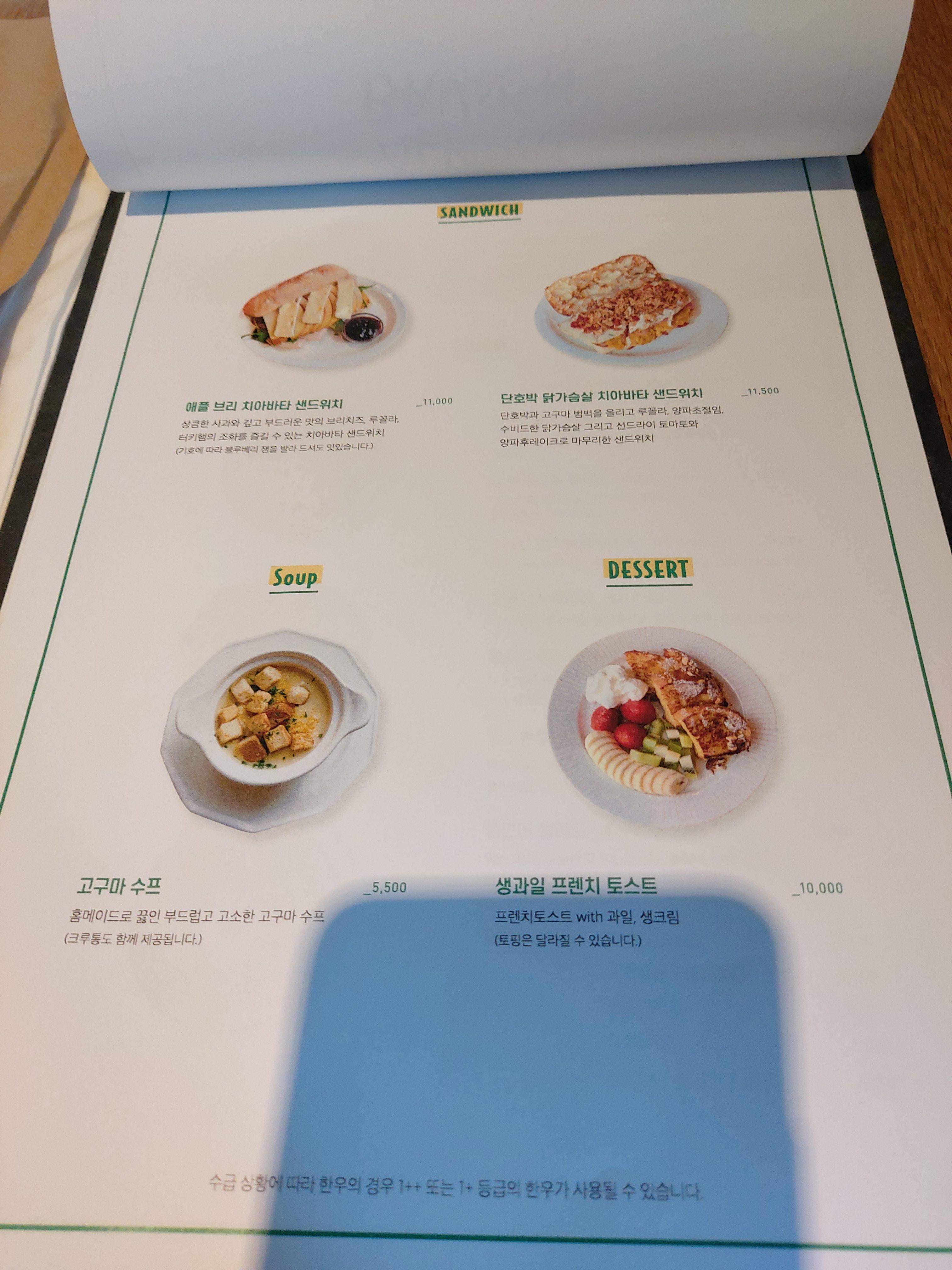브런치 메뉴들이 엄청 다양하진 않았지만 샌드위치나 오픈샌드위치, 샐러드 등 간단하게 먹을 수 있는 메뉴들은 제법 있는 편이어서 좋았고 각각의 샌드위치들도 취향에 따라 골라 먹기 좋았다.