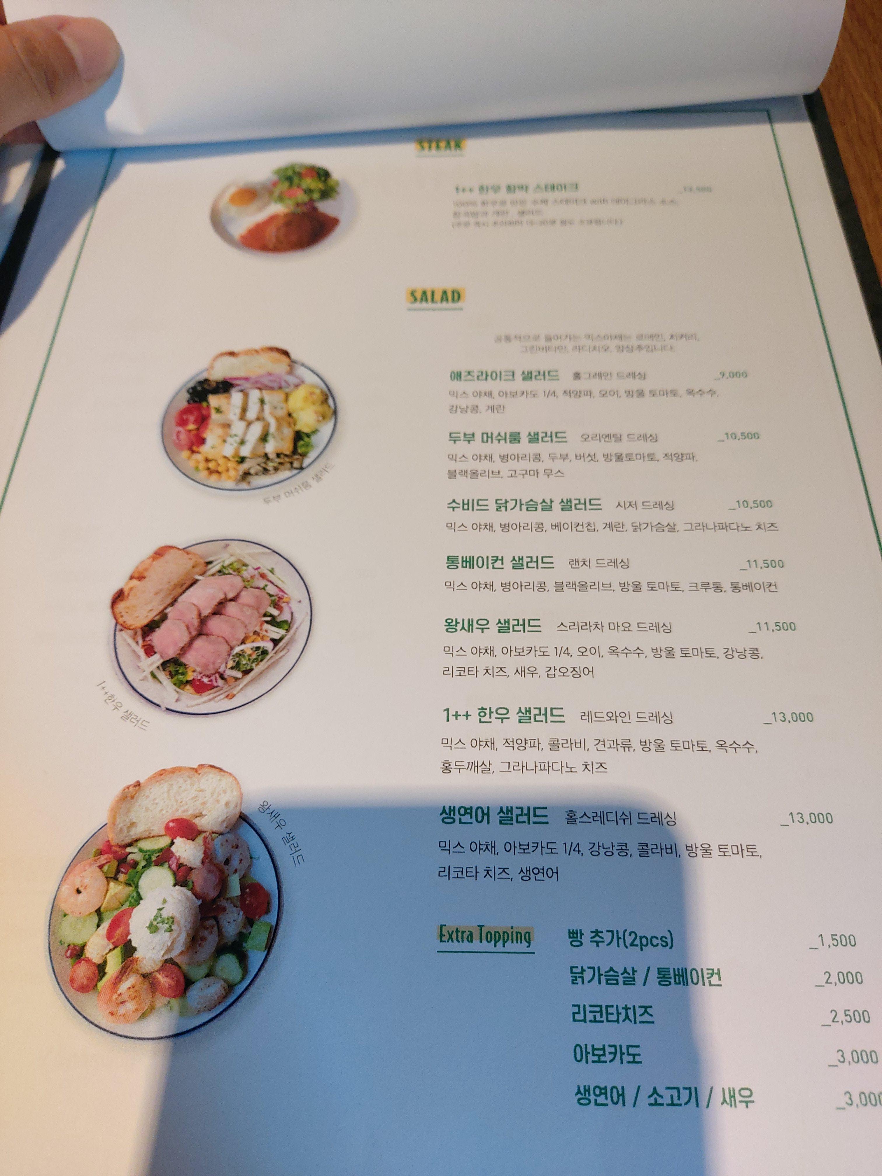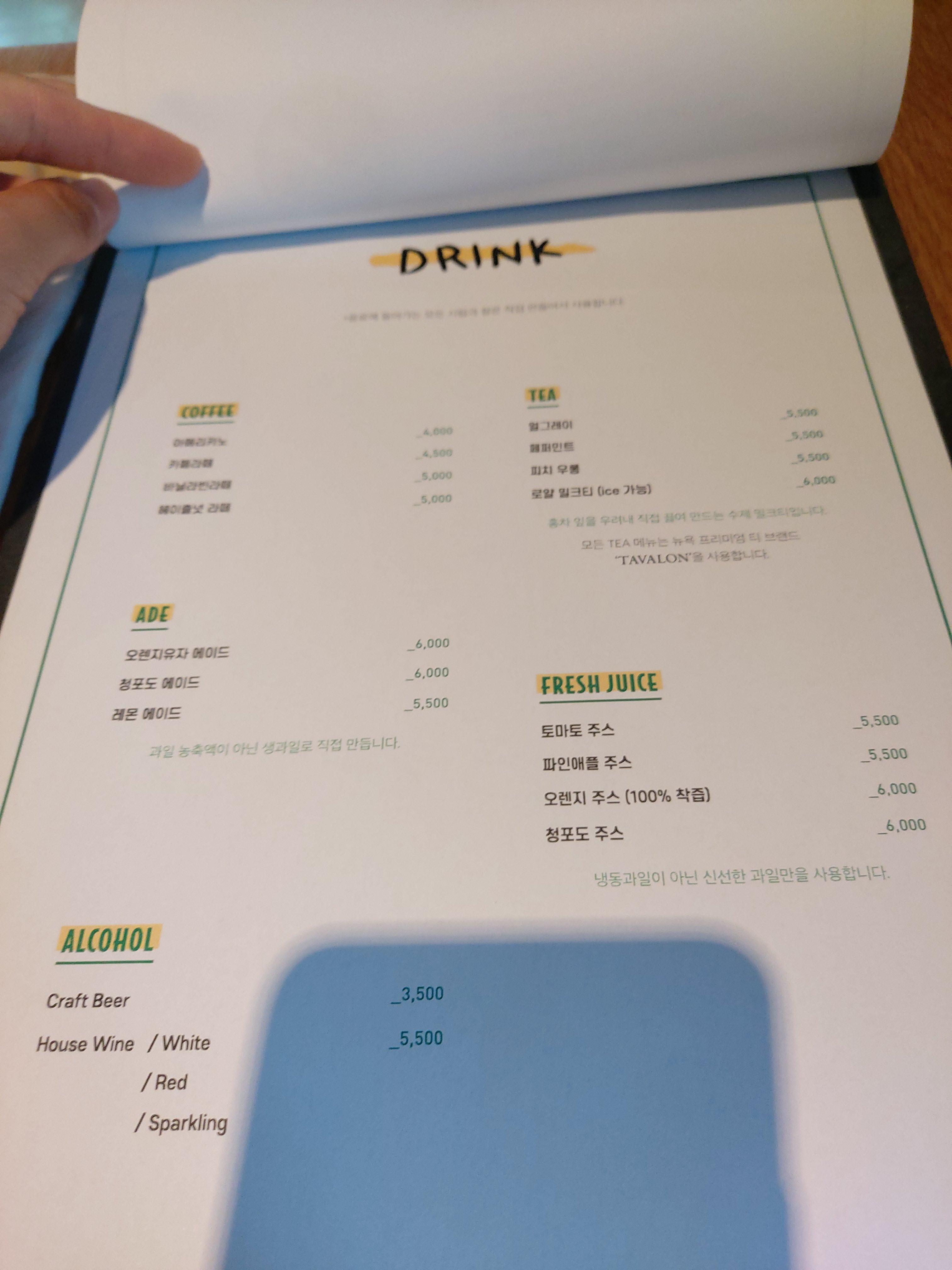 메뉴판.... 자리의 각도가 좋지 않아 카메라 그림자가 나온다 ㅠㅠ