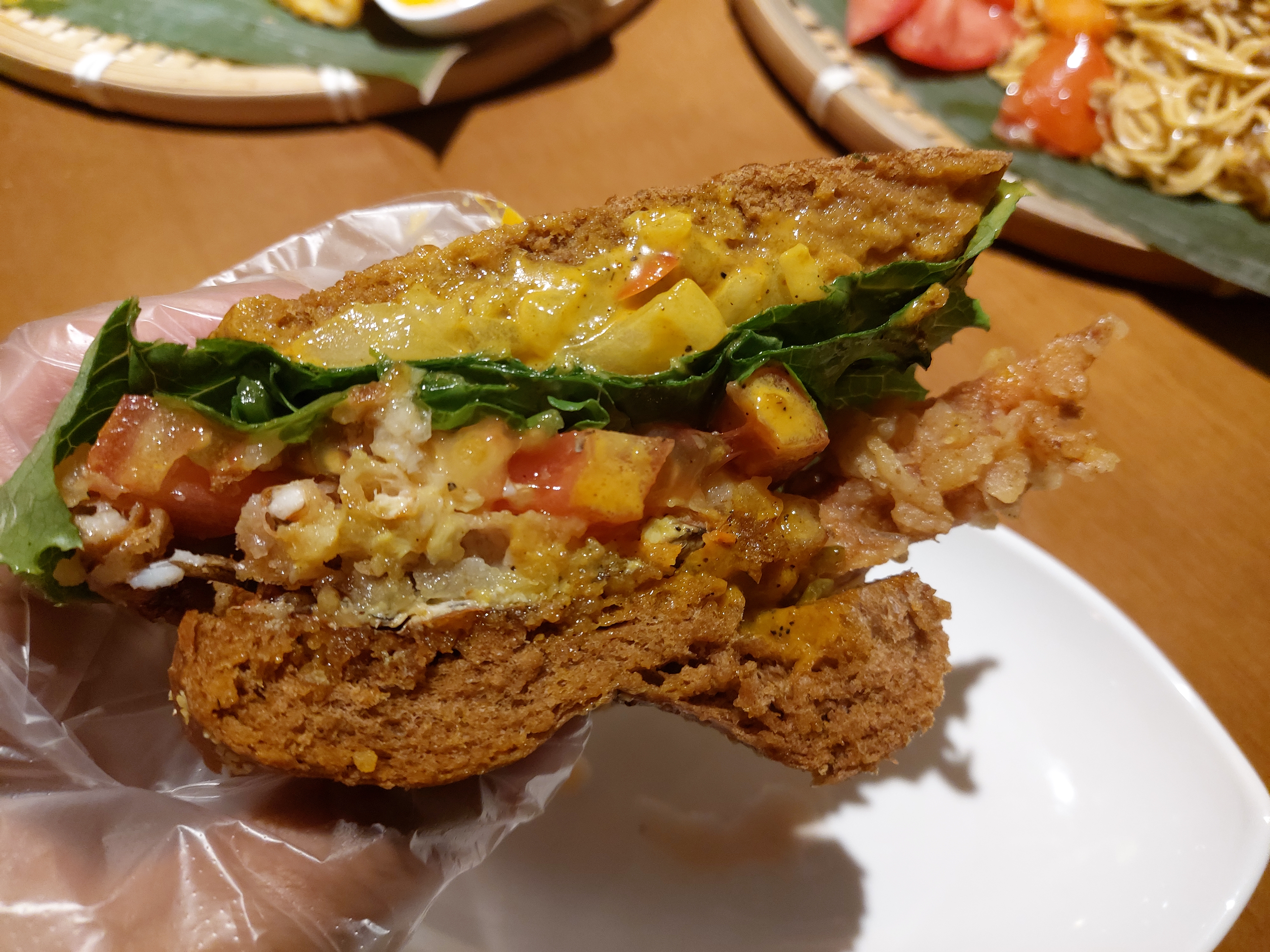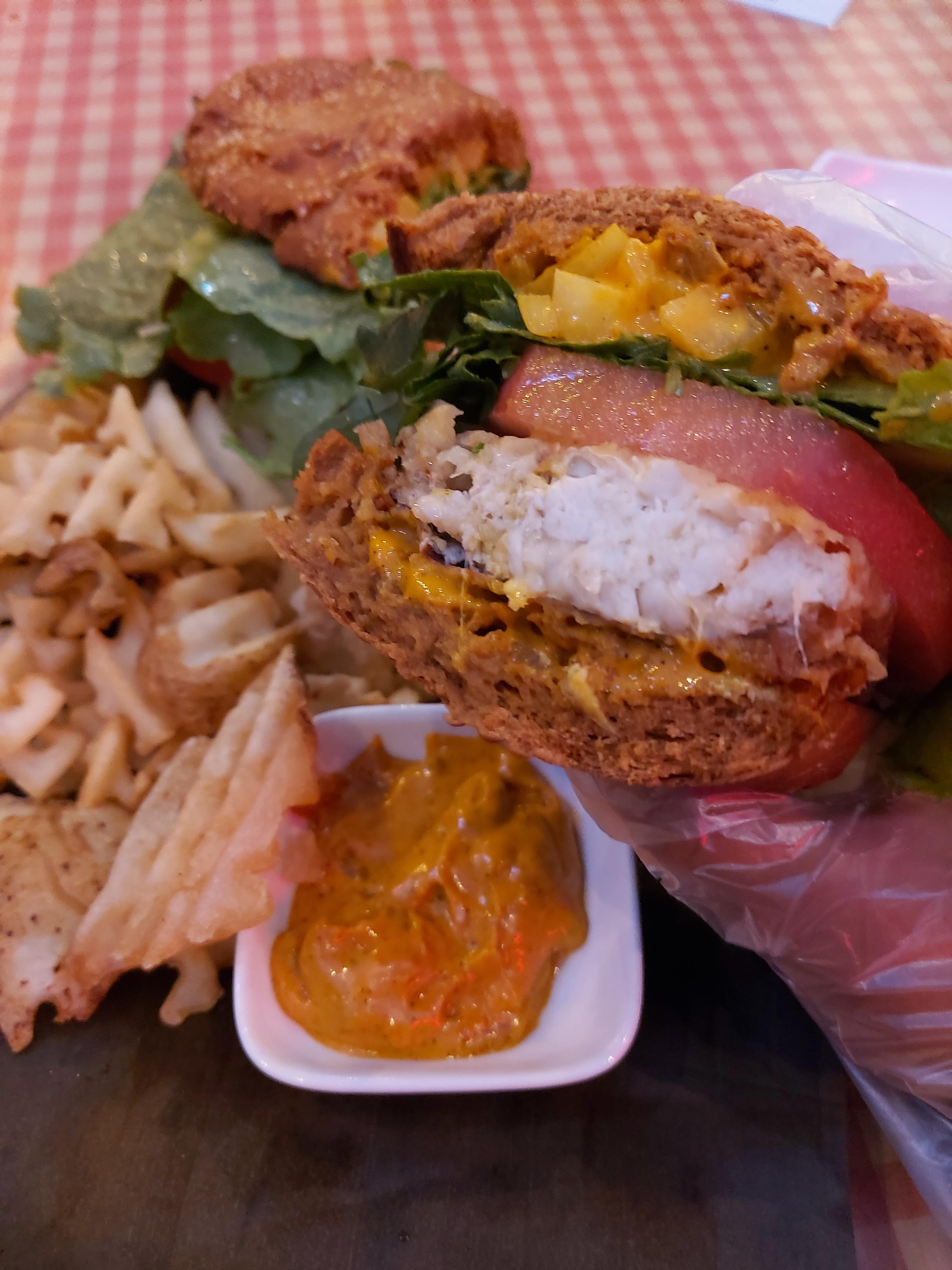 게살커리버거였나? 게살을 통째로 튀긴듯한 비주얼에 오픈 샌드위치 형식으로 나오는데 위에 얹을 빵은 옆에 같이 놓여져있다. 빵에는 카레크림 소스가 있었는데 이게 진짜 만능 소스(?) 같은 느낌으로 느끼할 수 있는 게살 튀김의 맛도 잡아주고 샌드위치랑도 잘 어울리게 만들어줬다. 살짝 매콤한 편이긴 한데 엄청 매운건 아니고 크림의 고소한 맛도 같이 있어서 먹을때도 맛있고 먹고나서도 생각나는 맛이다.