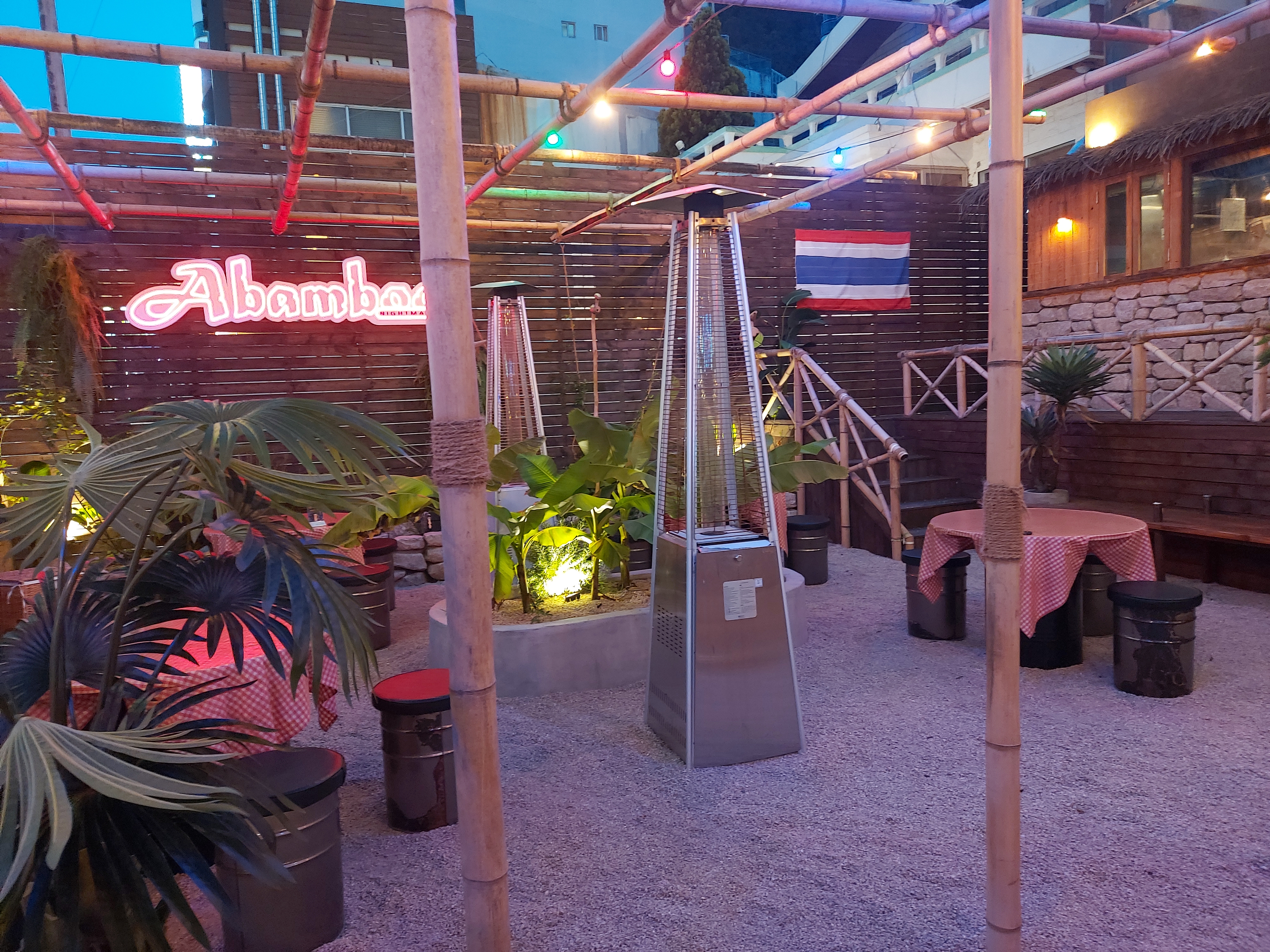 건물 하나가 통째로 어밤부 나이트마켓이었는데 사람이 적어서인지 코로나 거리두기 단계 때문인지 2층은 운영하지 않는다고 1층과 야외테이블만 안내를 했다. (밖에서 본 2층 안의 사람은 유령이었을까....? 몇명은 2층으로 가는것 같았는데 예약손님이거나 관계자지 않을까 싶다)