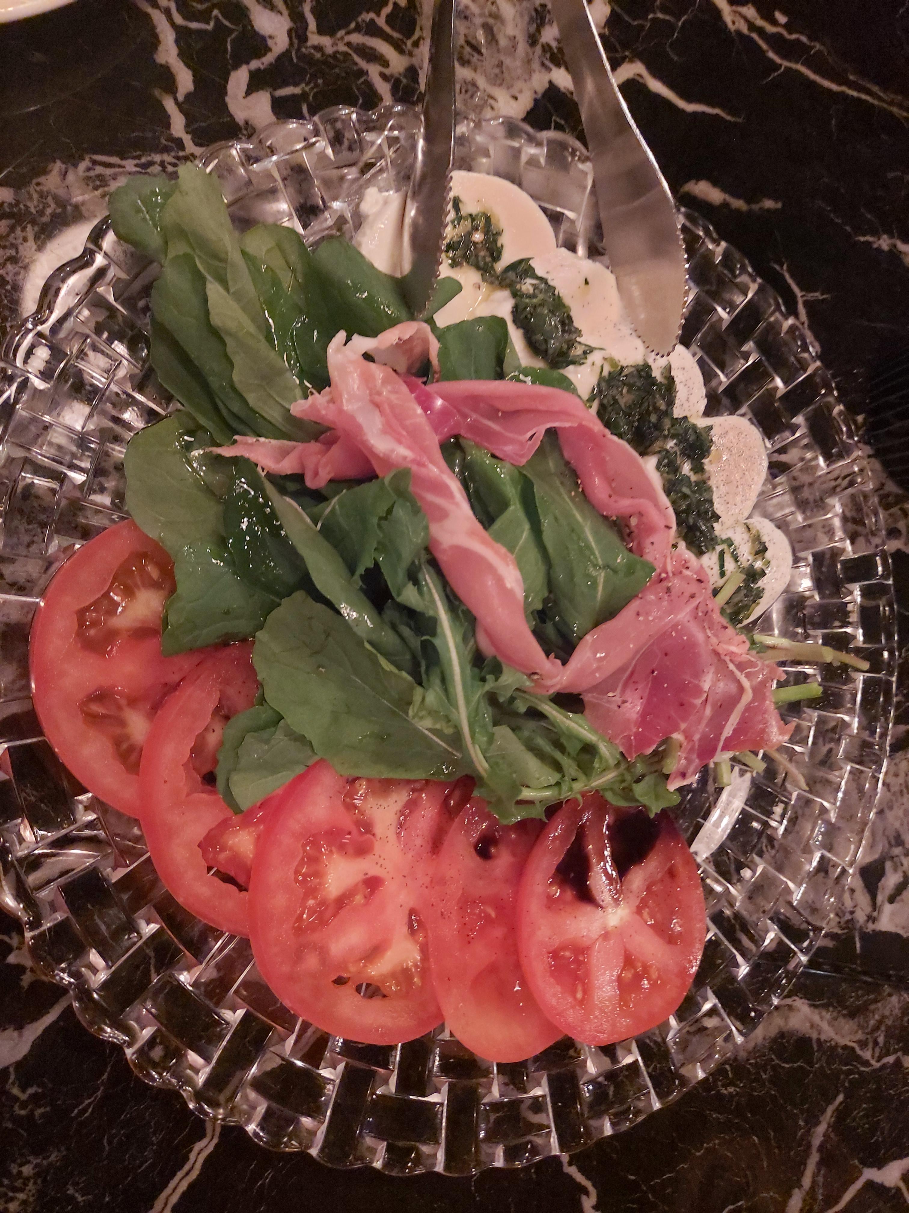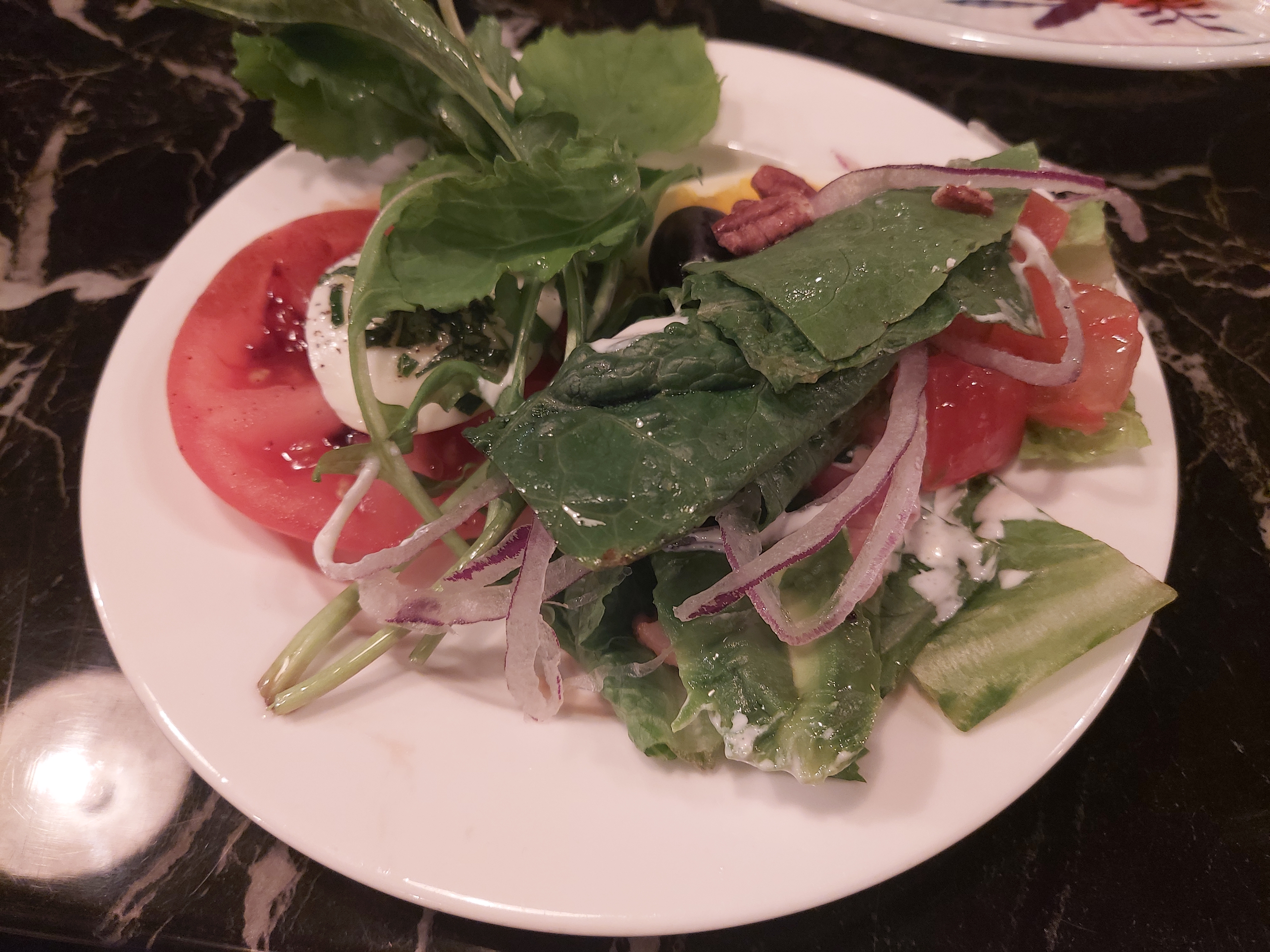 스테이크 듀오 런치세트 메뉴에 파스타를 추가하고 루꼴라 카프레제 샐러드도 추가했다. 그런데 기본 샐러드로 콥샐러드가 나오는 터라 샐러드 메뉴만 두개였다.