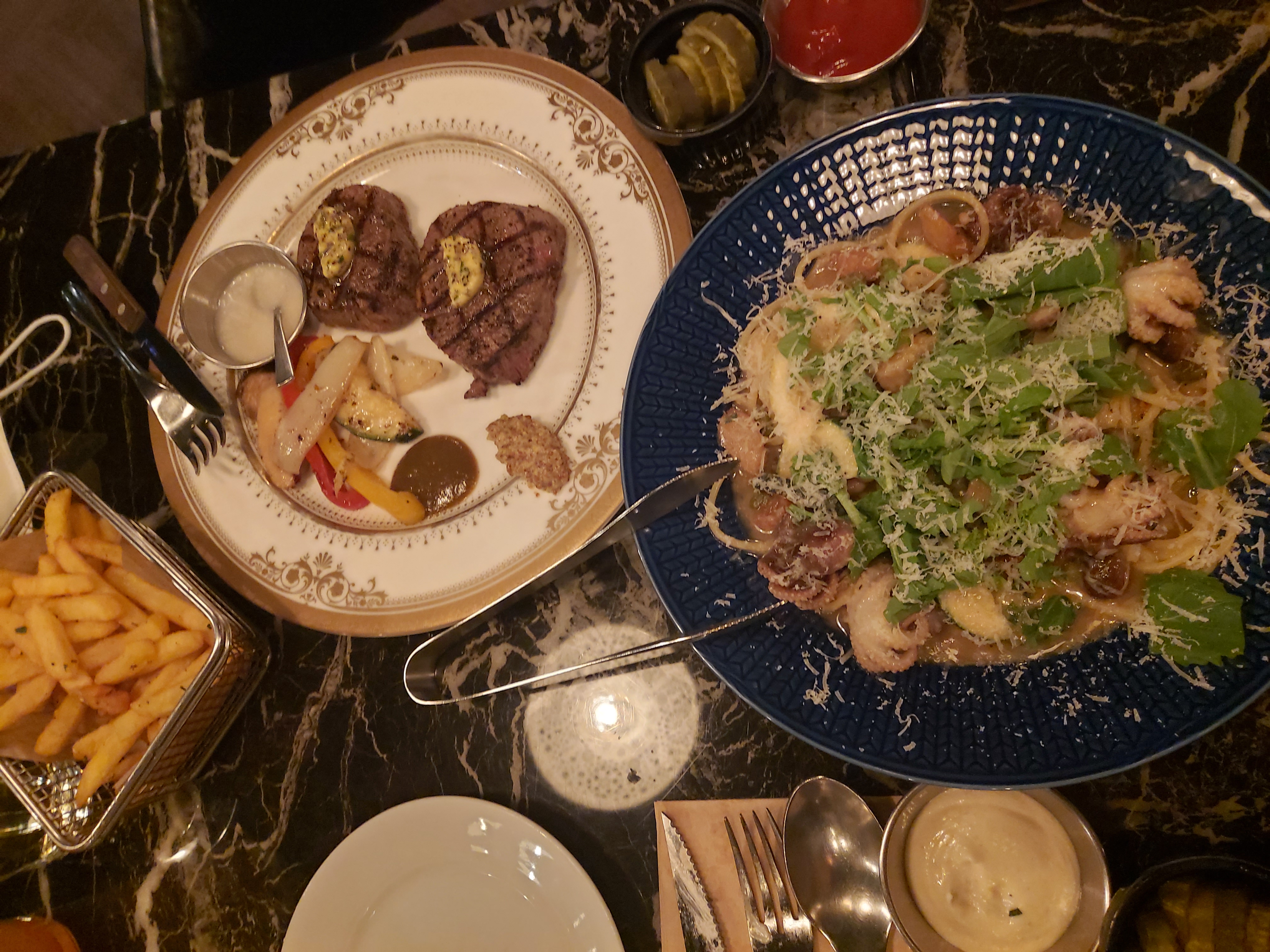 사진을 보니 감자튀김도 사이드 메뉴로 주문했었다. 다시 사진을 보며 감탄하게 되는데 우리는 셋이서 대체 얼마나 먹었던 걸까..... 이때 내가 먹은건 샐러드와 스테이크 뿐이었는데 생각보다 대식가인 사람들만 갔었나 하는 생각이 들어 감탄하게 된다. (그런데 아마 파스타는 좀 남았던 것 같다)