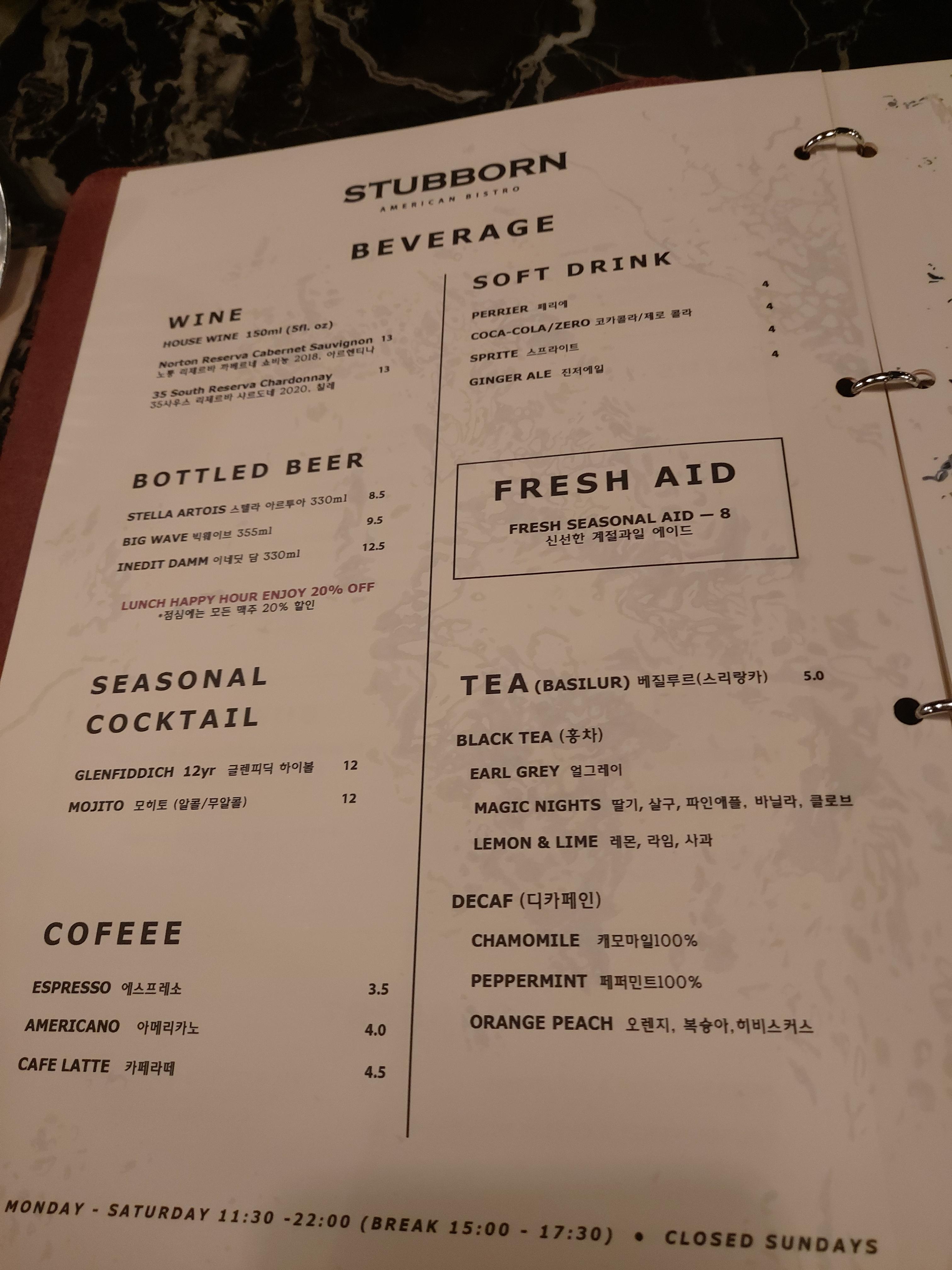 디너 메뉴판도 있는데 계속 회사분들이랑 점심회식 겸 가다보니 디너에는 간 적이 없어서 사진도 안찍었다. 검색하면 나오지 않을까 싶긴 하다.