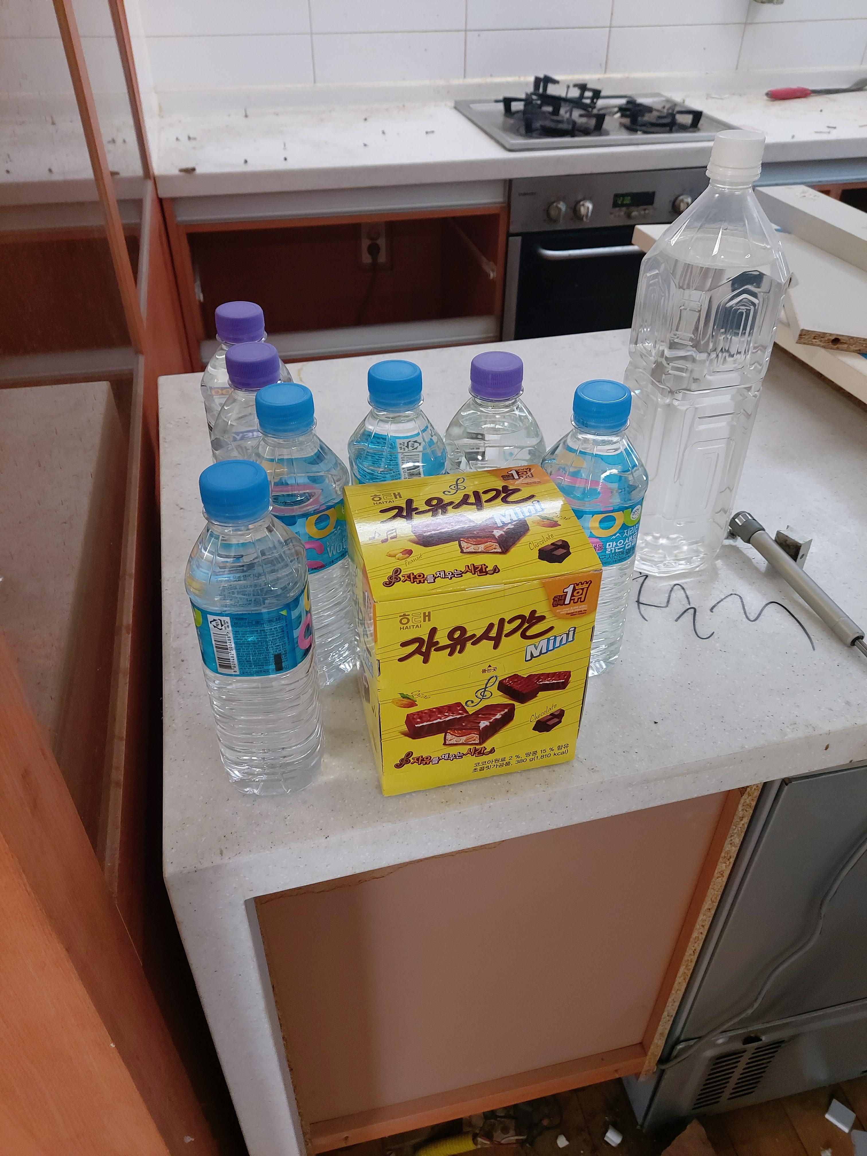 내가 자리에 계속 있는게 아니라 필요한걸 챙겨드리기 어려우니 작업자분들을 위한 간식을 미리 사두었다.