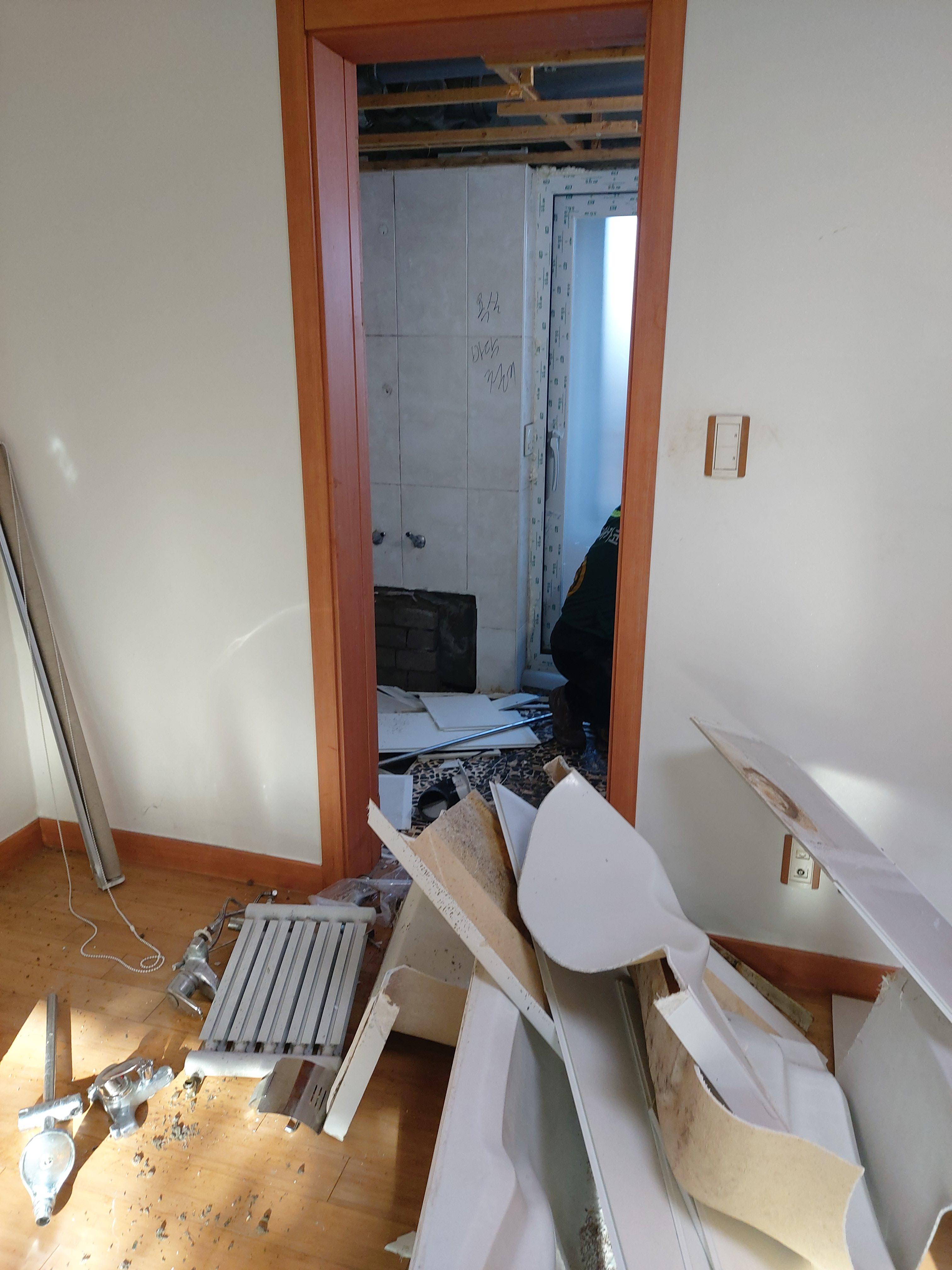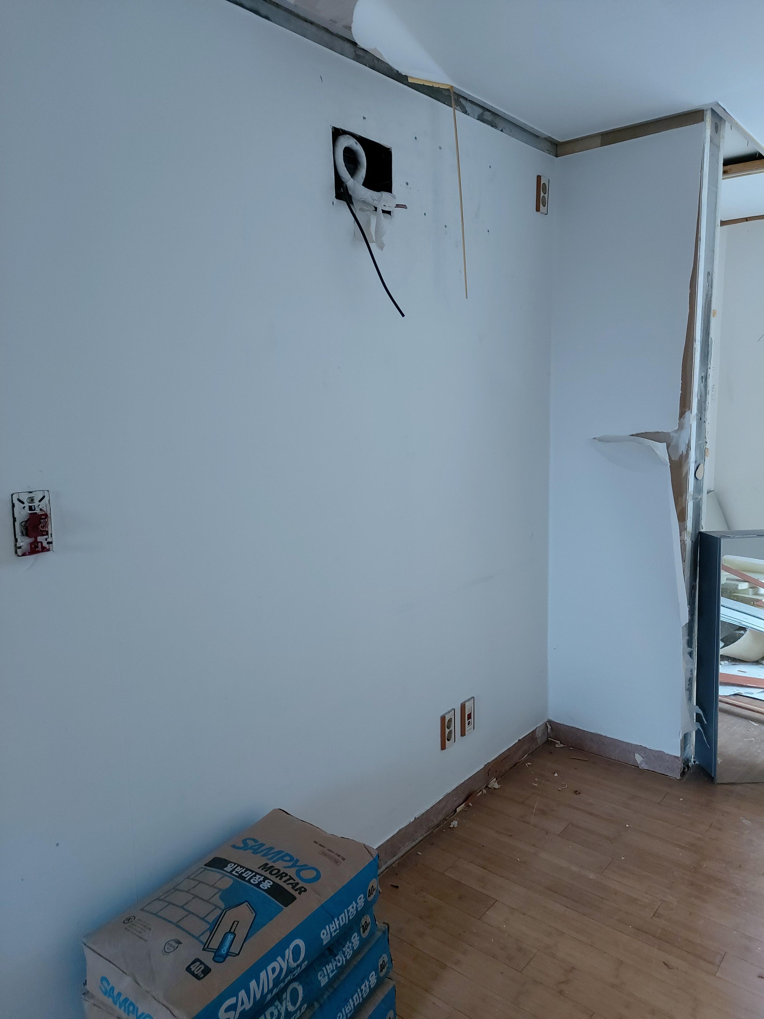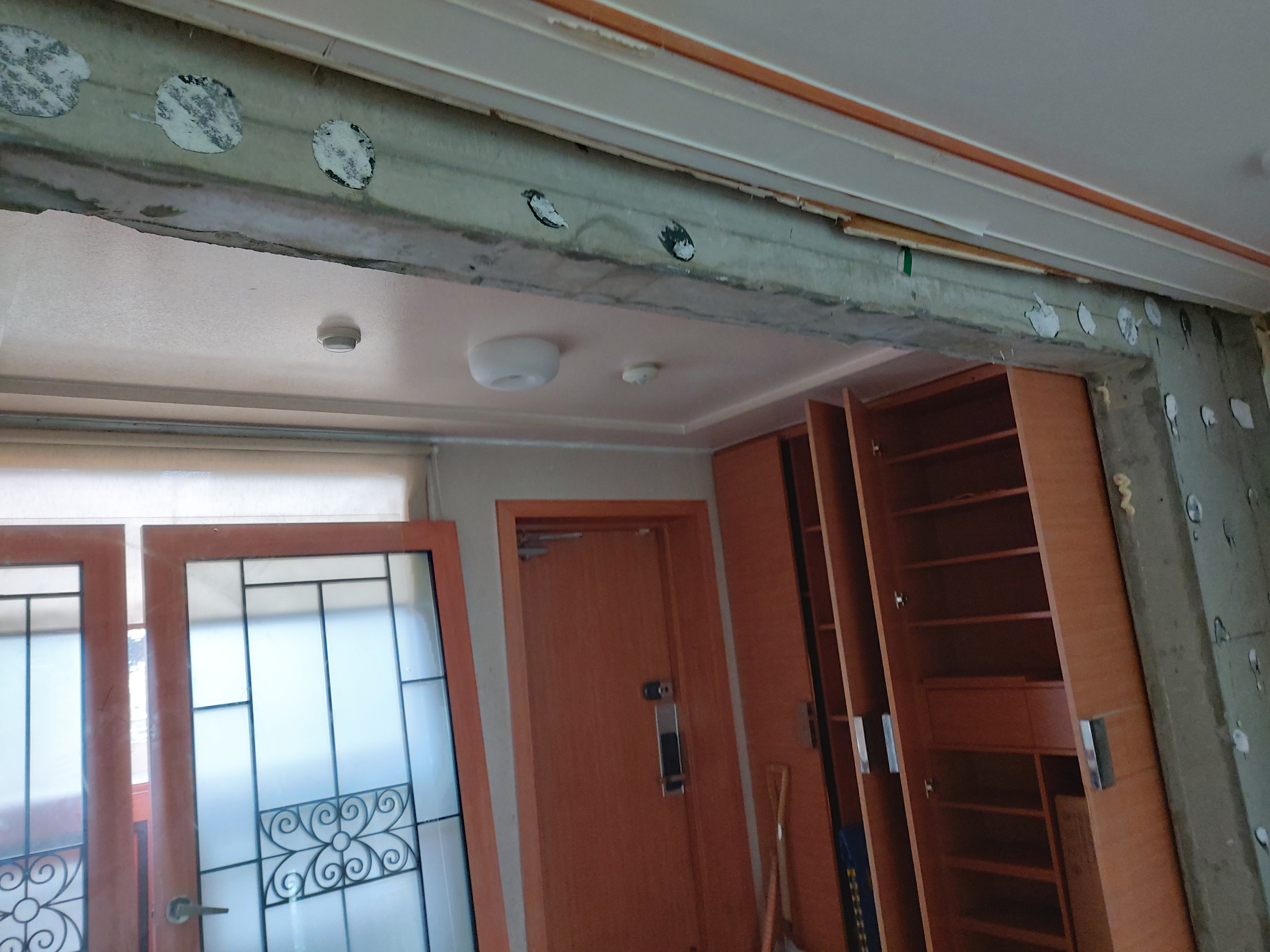 기존 집은 현관이 넓은 구조였는데 구조도를 보고 직접 가서 보니 현관을 이루는 벽은 가벽이길래 그냥 없애버리고 넓은 현관을 좁히고 집 안쪽으로 들여오는 작업을 진행했다. 현관 바닥에는 난방이 없어서 집안으로 옮겨오면서 바닥에 보일러선을 설치하느라 바닥 작업이 추가되었다. 원래는 현관에 있던 벽과 창문이라 겨울에는 이쪽으로 바람이 들어와서 조금 추울 수도 있겠지만 그래도 그건 어떻게 커버가 되지 않을까 하는 희망(?)으로 그냥 없앴다. 나중에 너무 추우면 암막커튼이라도 달아서 바람이라도 덜 들어오게 하면 좀 낫지 않을까....