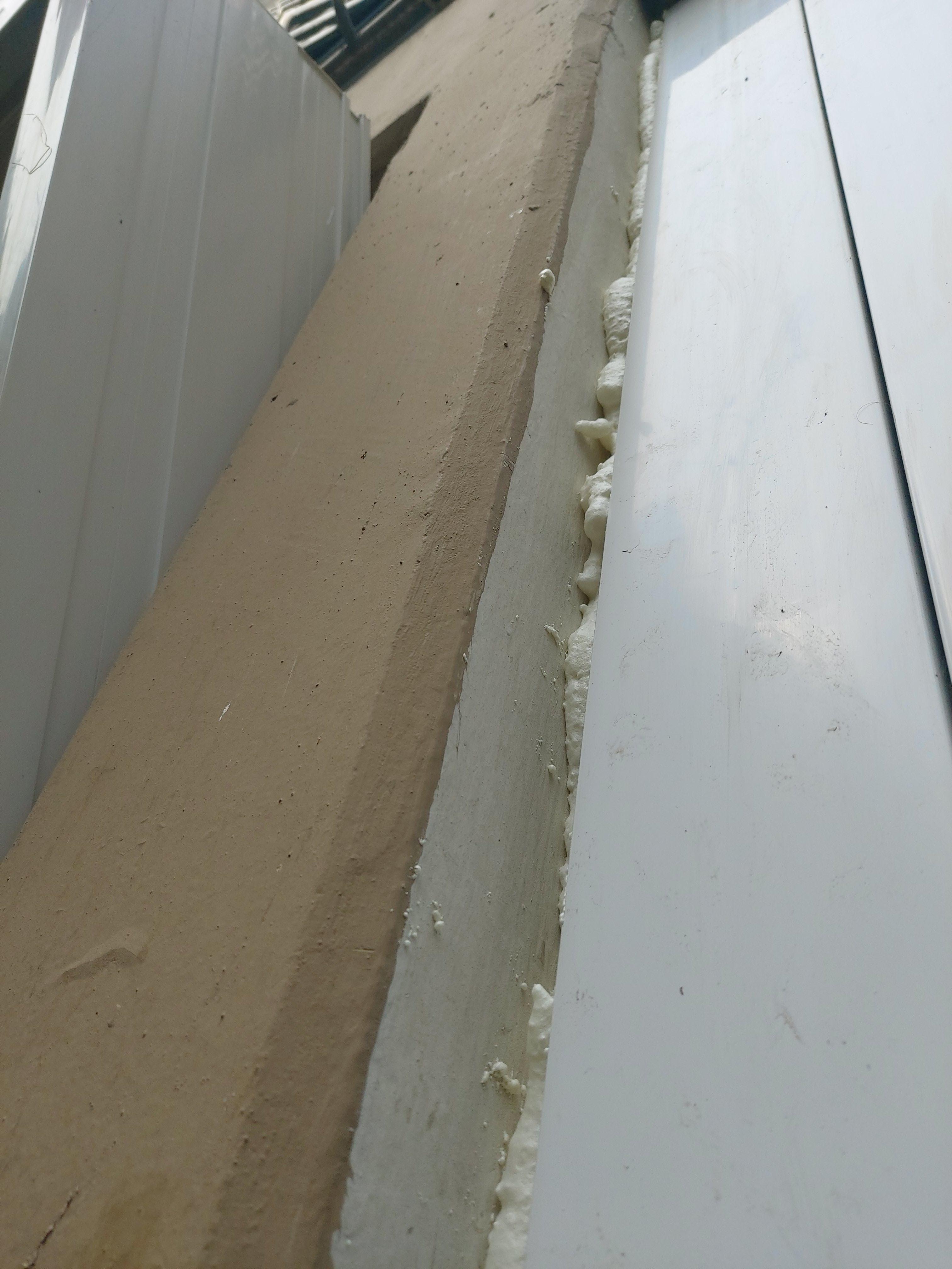 기존 창틀까지 빼낸 상태를 보면 이렇게 우레탄폼이 남아있는 걸 볼 수 있다. 이걸 뜯어내고 새로운 창틀을 끼우고 폼을 쏘는 거다