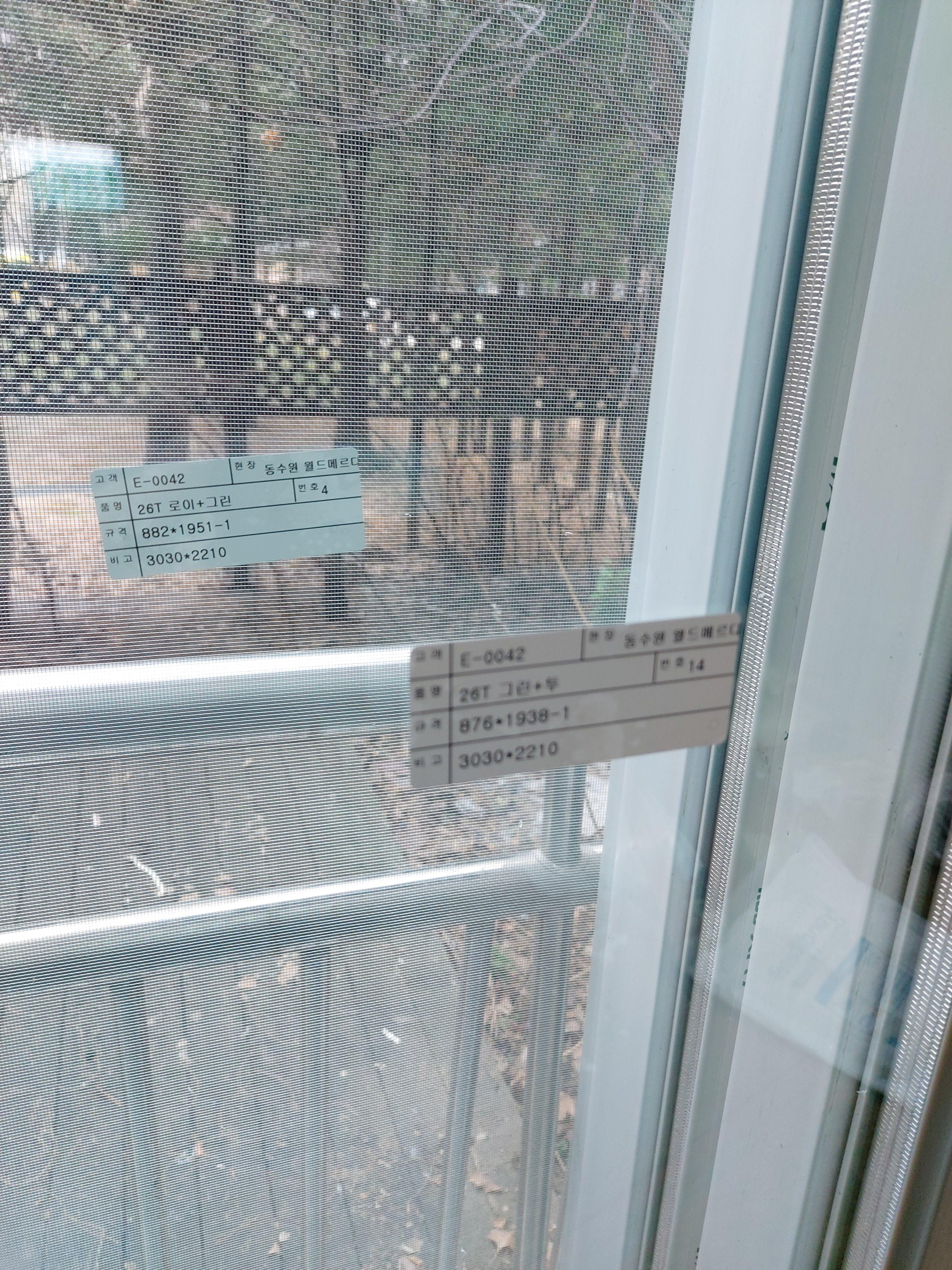 시공할때 창호 종류나 크기, 로이유리 여부 등을 확인하는것도 셀인카페 등에서 알려준 방법인데 공사 다 끝나고 알아서 나중에야 붙어있는거 보고 확인했다. 다행히도 이상한것 없이 다 견적냈던 것과 동일하게 들어가있어서 따로 연락해야하는 건 없었다.