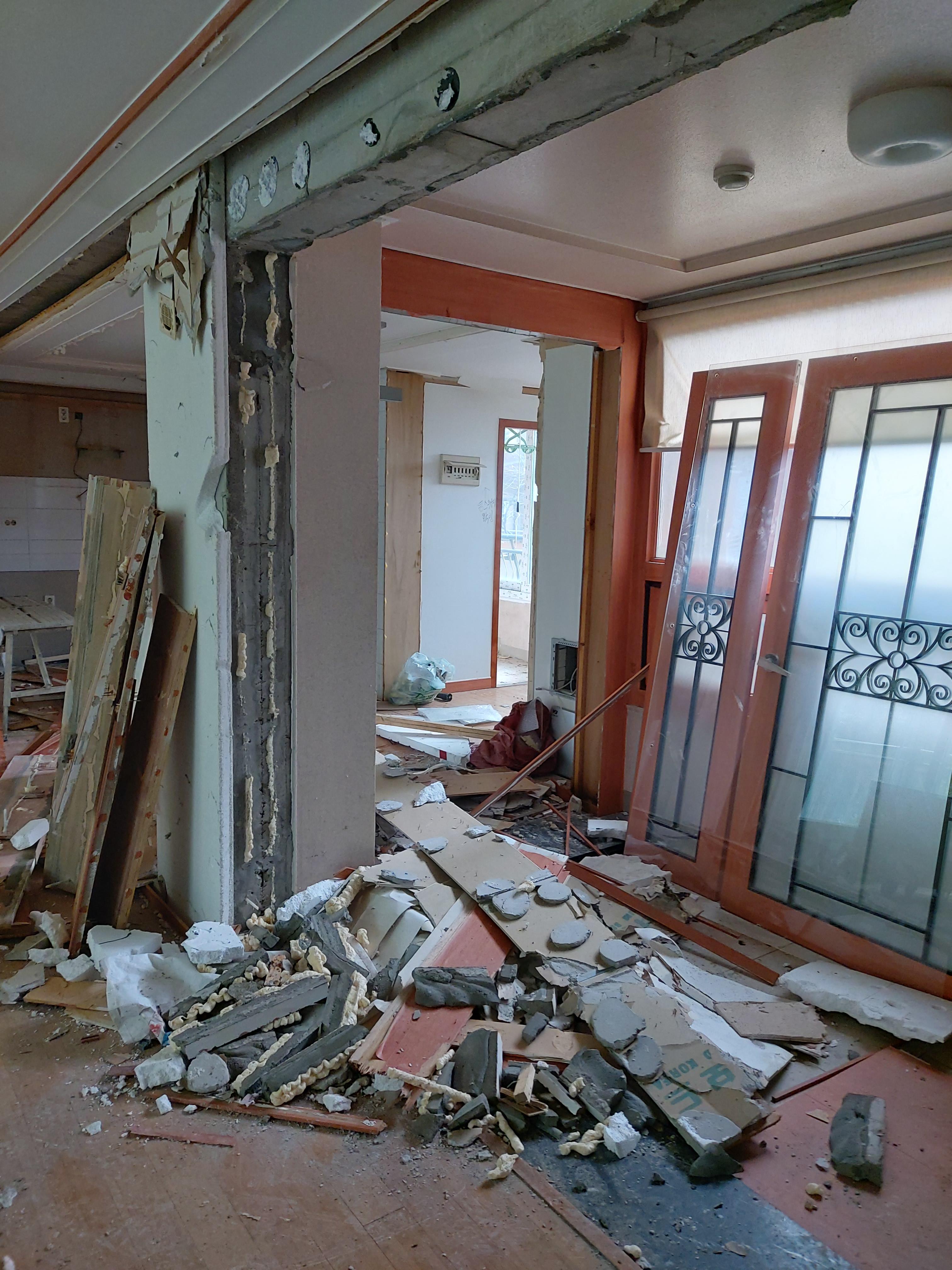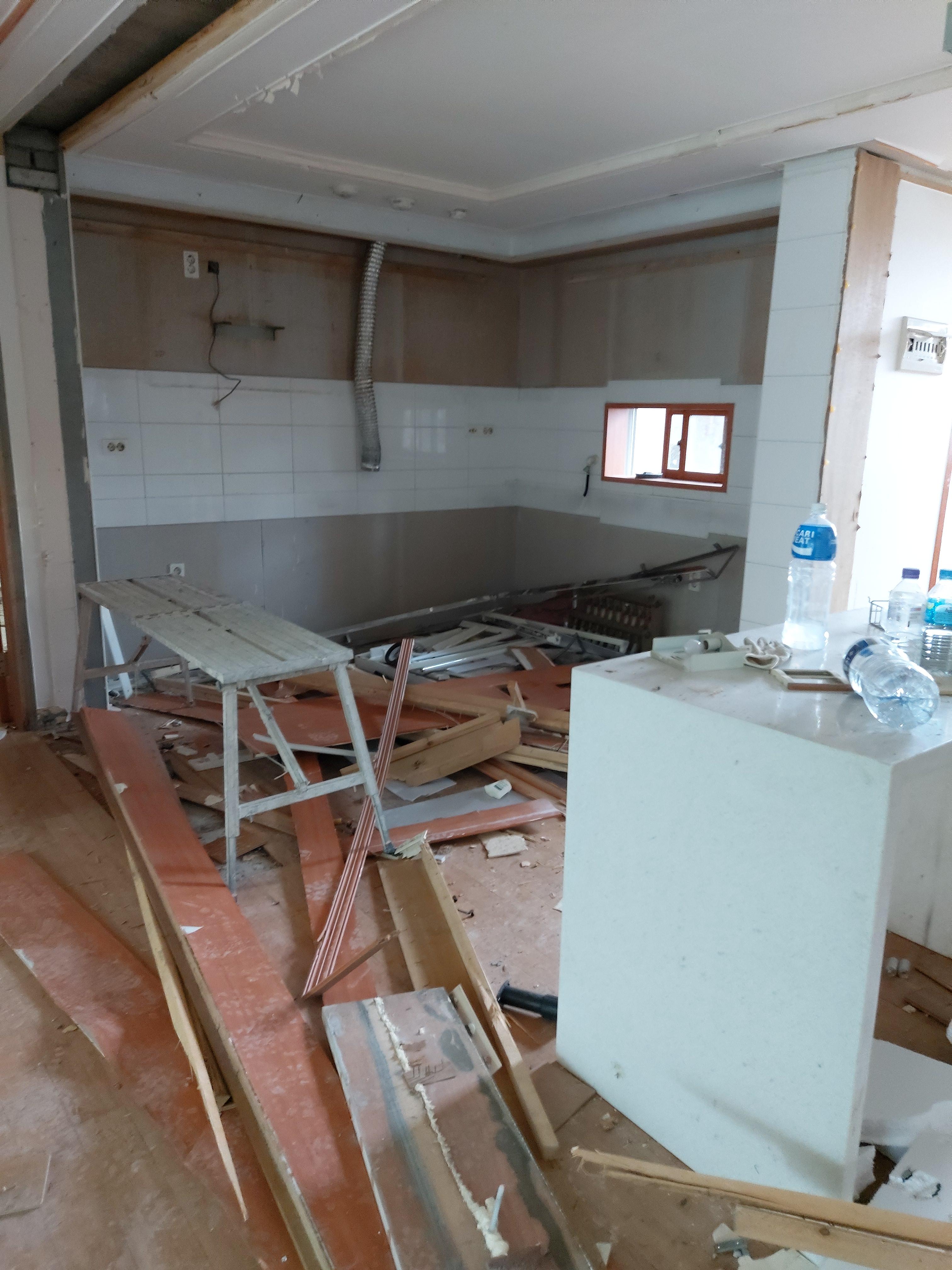 아래가 마루철거를 제외하고 철거공사 3일이 지난 후의 모습이었다. 철거하면서 미장이 필요한 작업들, 욕실 바닥의 방수층만드는 작업, 그리고 조적벽을 쌓아 젠다이를 만드는 것들까지 같이 작업을 진행했다.