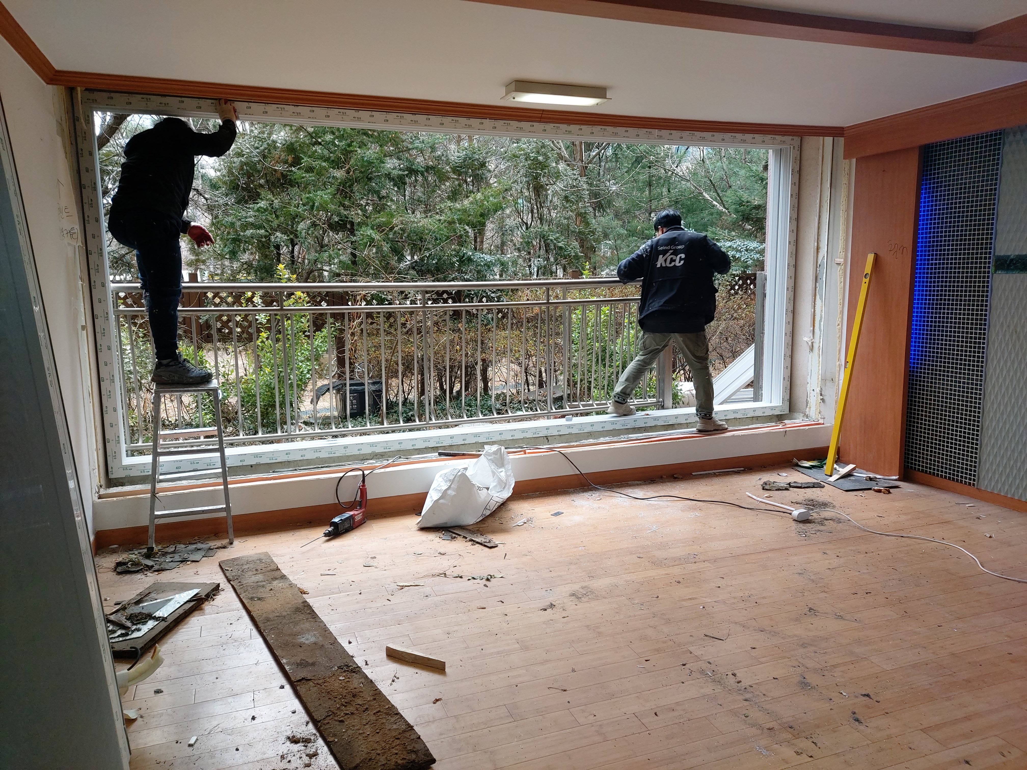 공사 가장 첫날 시공한건 철거가 아닌 샷시였다. 같은 업체를 통해서 모든 과정을 처리했으면 조금 더 스무스했을지도 모르겠지만 인테리어 업체 따로 계약하고 샷시 따로, 시스템에어컨까지 따로 계약했더니 일정 조율을 내가 해야하는 단점이 생겼다. 게다가 첫 공사이기도 해서 어떻게 진행되나 싶어 연차를 내고 하루종일 작업하는 걸 옆에서 지켜봤다.