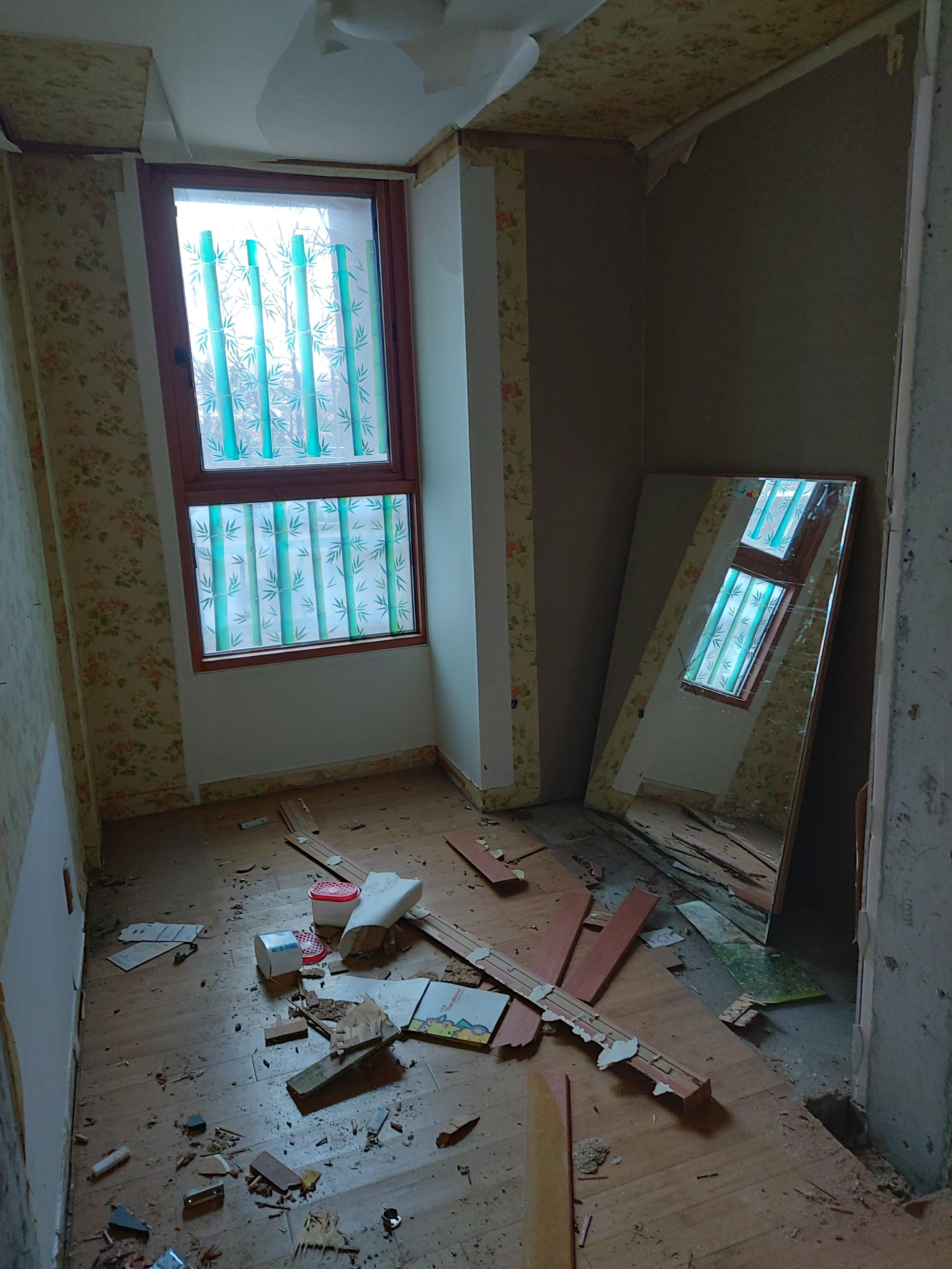 철거 첫날. 여기서부터 집 내부 장식들이 하나씩 사라지기 시작했다.