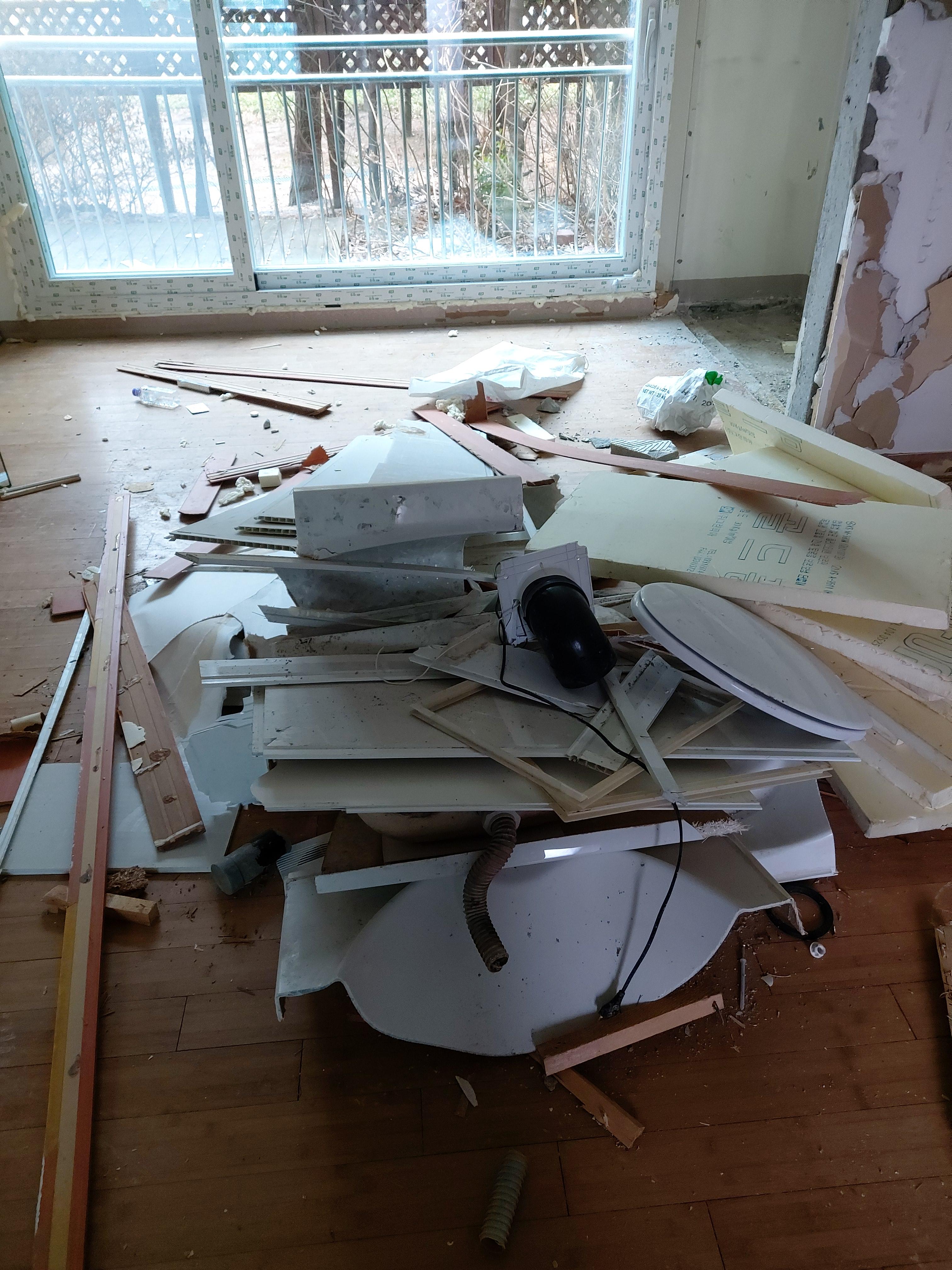 아니 이 집에 뭐가 이렇게 많았던건지 거실의 아트월도 떼니까 다 쓰레기고.... 중문을 포함해서 아일랜드식탁(재활용도 가능했을 것 같은데 이건 조금 아쉬웠다ㅠㅠ) 과 현관에 있던 가벽이나 장식장 등을 다 철거하고 나니 나오는 폐기물의 양이 엄청났다. 문득 이만한 양의 쓰레기를 버렸다고 생각하니 환경에 죄책감이 조금 든다. 그래도 우리집 다음에 들어오는 분은 그래도 이정도의 폐기물이 들지는 않을테니 나름의 위안을 삼아본다.