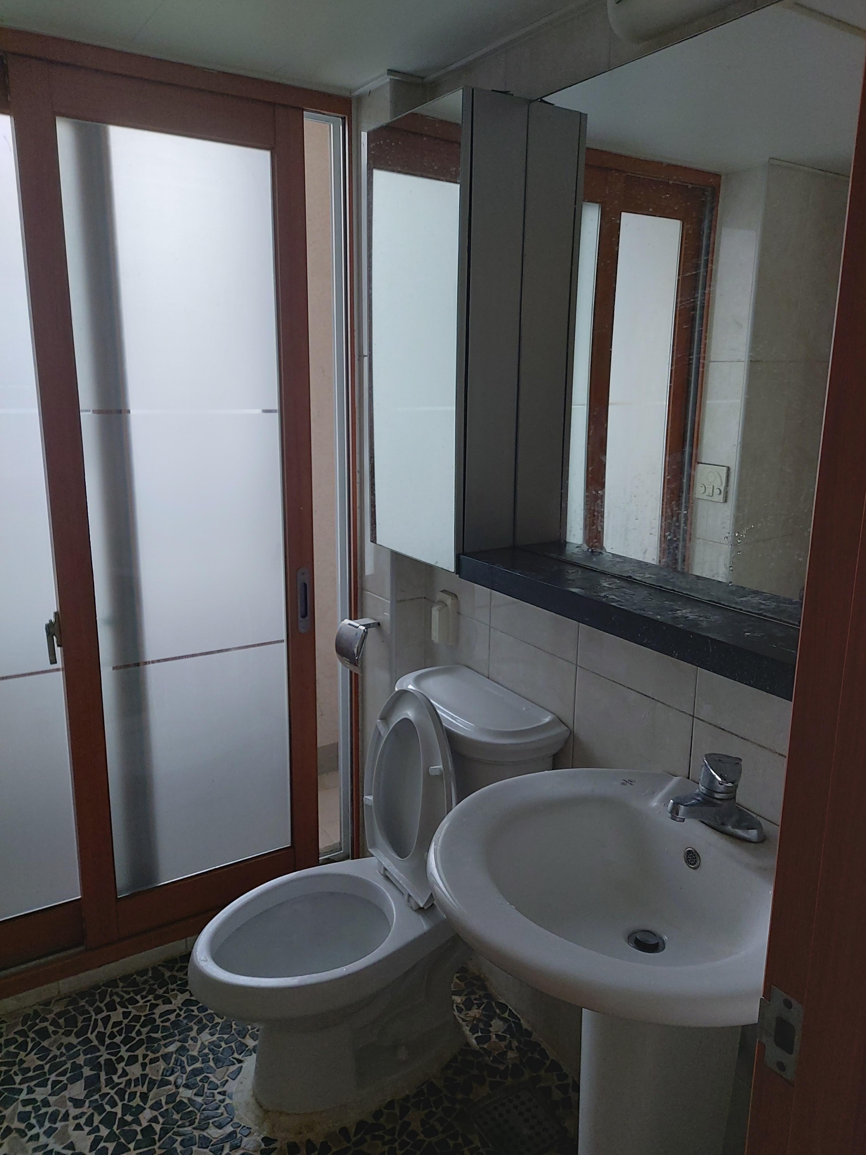그리고 안방 화장실. 이게 정말 예쁘게 쓰려면 대형 공사를 해야할 것 같은... 작은 베란다와 창문이 달려있는 화장실이다. 마음같아서는 아예 이 베란다마저 확장을 하고 욕조를 저쪽으로 뽑아서 수도도 다 바꾸고, 화장실에 샤워기 욕조를 다 두고 싶었는데 그렇게 하면 너무 큰 공사가 돼서.... 어쩔수 없이 큰 공사는 포기. 하지만 지금 생각하면 그냥 조금 더 써서라도 바꾸는게 나았을것 같기도 하다.