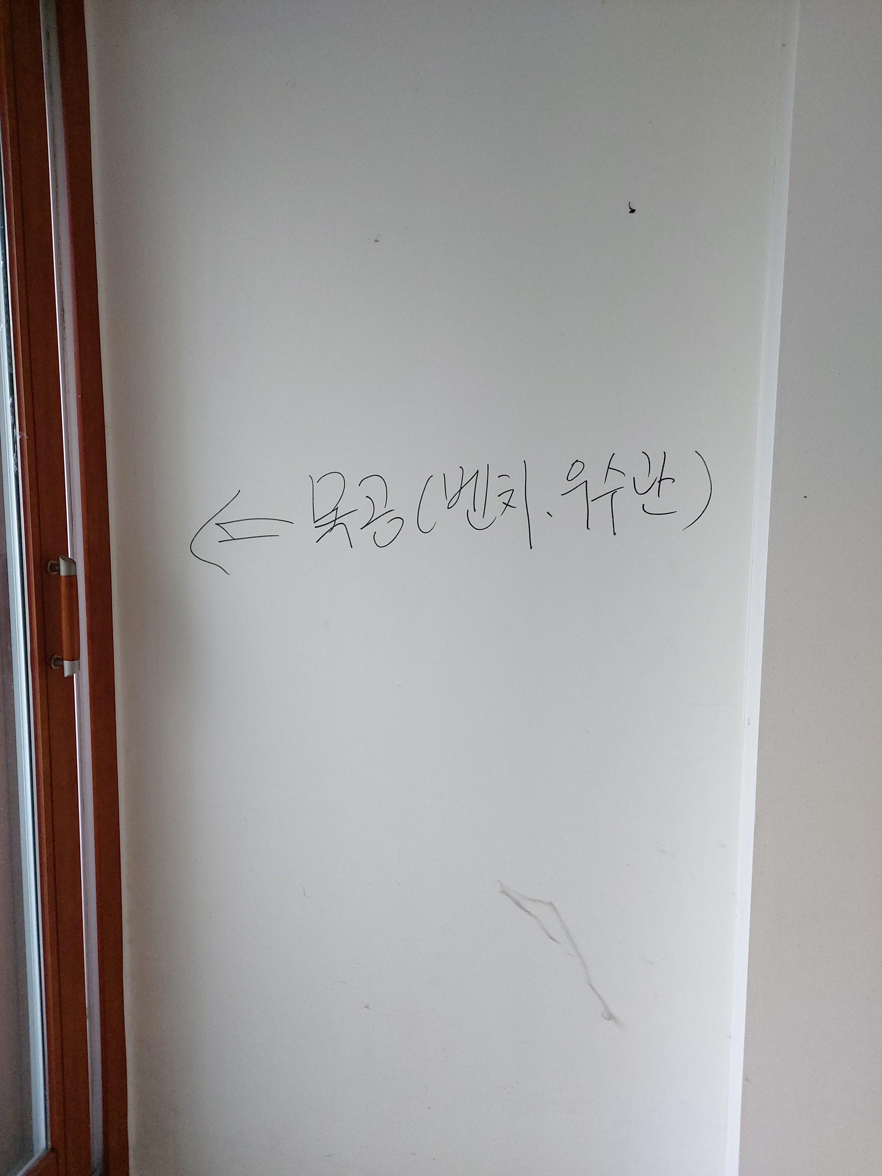어떻게 공사할지를 다 정해놓고 견적을 받은 거니만큼 대부분이 결정되어있었는데 세세하게 필요한 것들(콘센트 위치 추가라거나 수정 시 문제가 되는 부분, 특이사항 같은 것들) 은 혹시를 위해 턴키 사장님과 함께 매직으로 쓰면서 공사시작 전날 다시 점검했다.