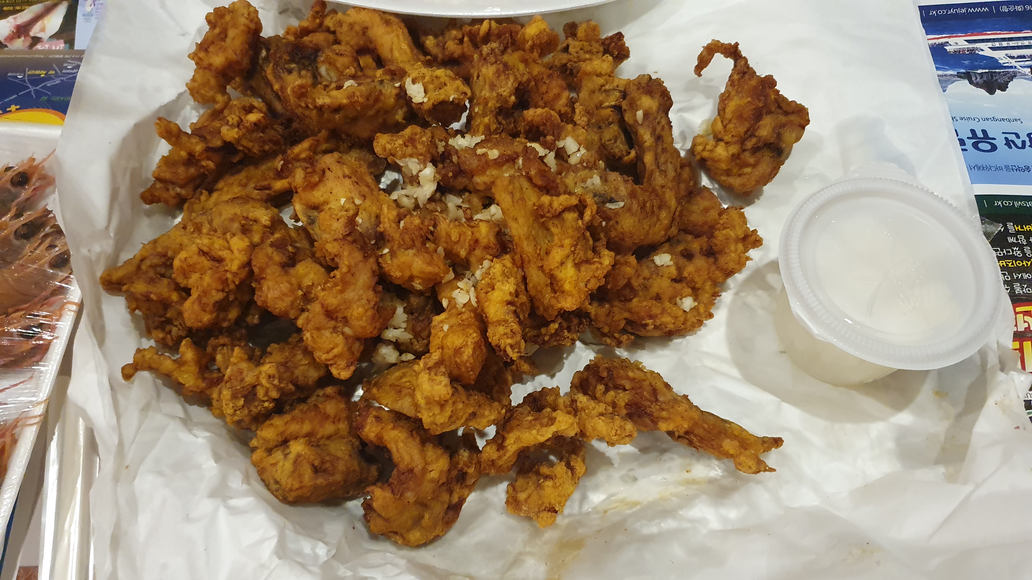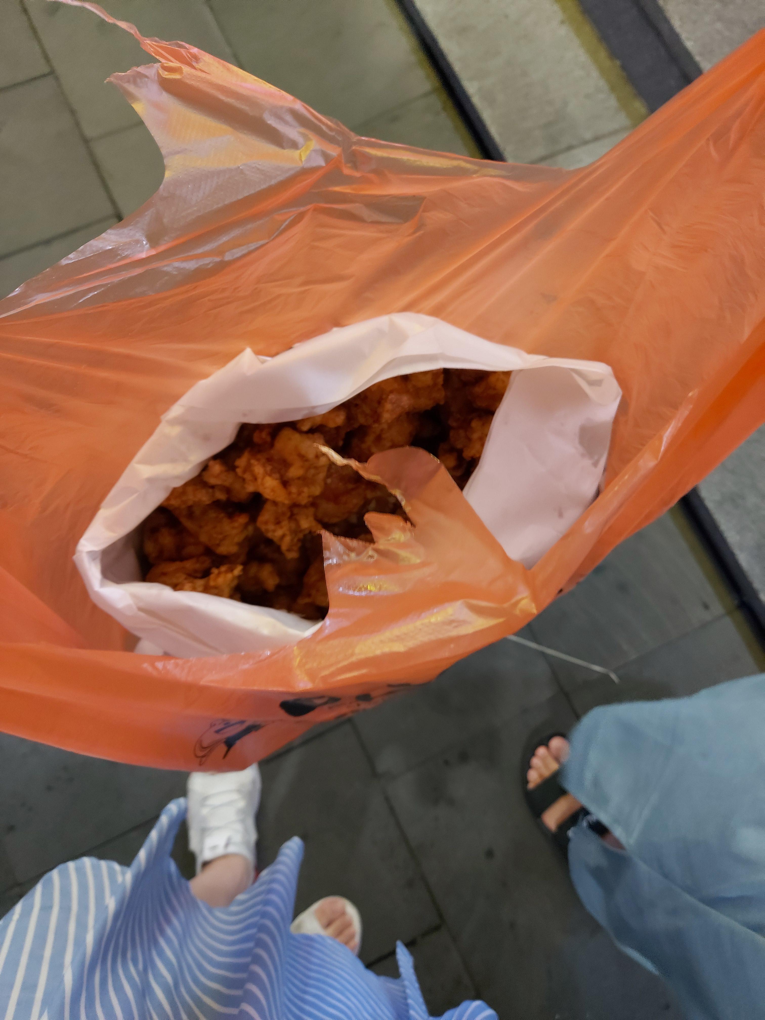 운이 좋게도 가자마자 바로 한마리를 받을 수 있었다. 한마리만 주문했는데 양이 좀 미친것 같았다. 다 먹을 수 있는지 의문이 드는 양임. 한마리만 주문했는데 거의 큰 비닐의 절반을 차지하는 양이라니 ㅋㅋ
