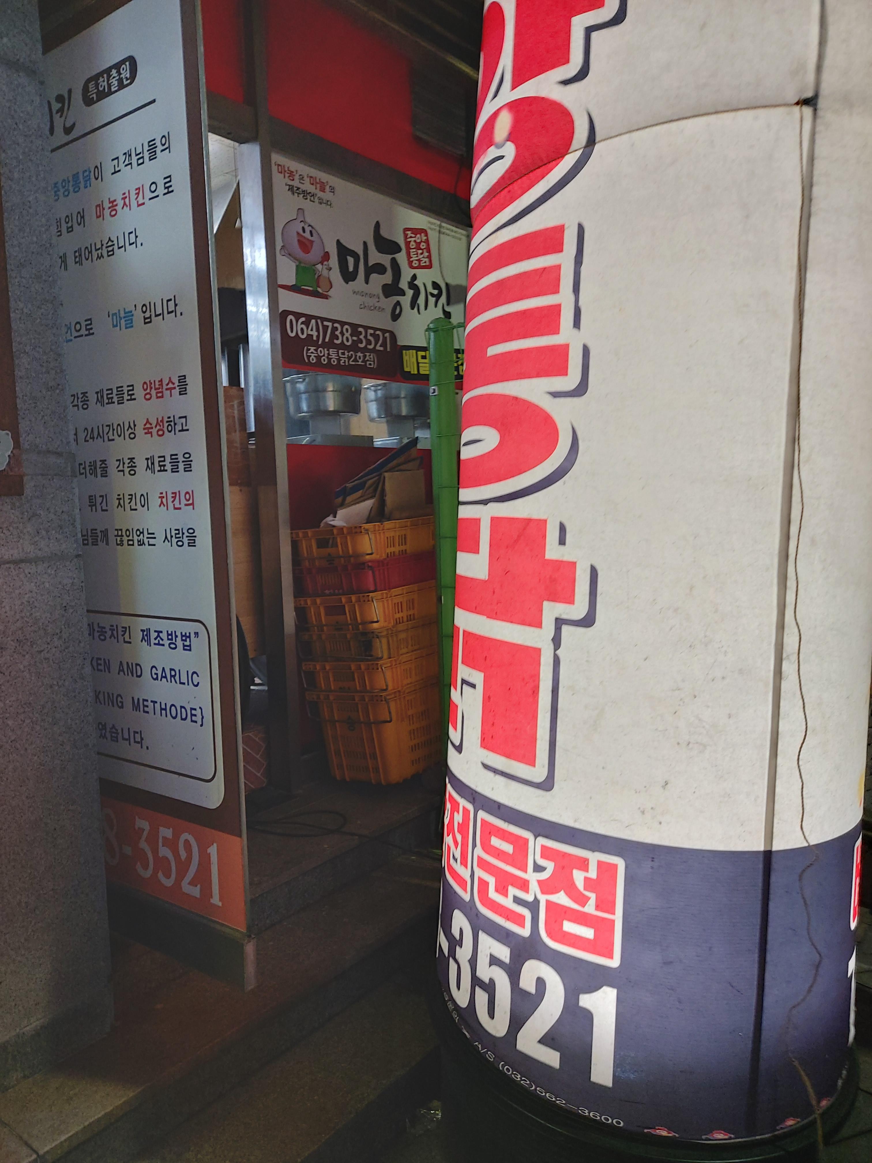제주도말로 마농이 마늘이라고 해서, 여기는 마늘치킨만 파는 집이었다.