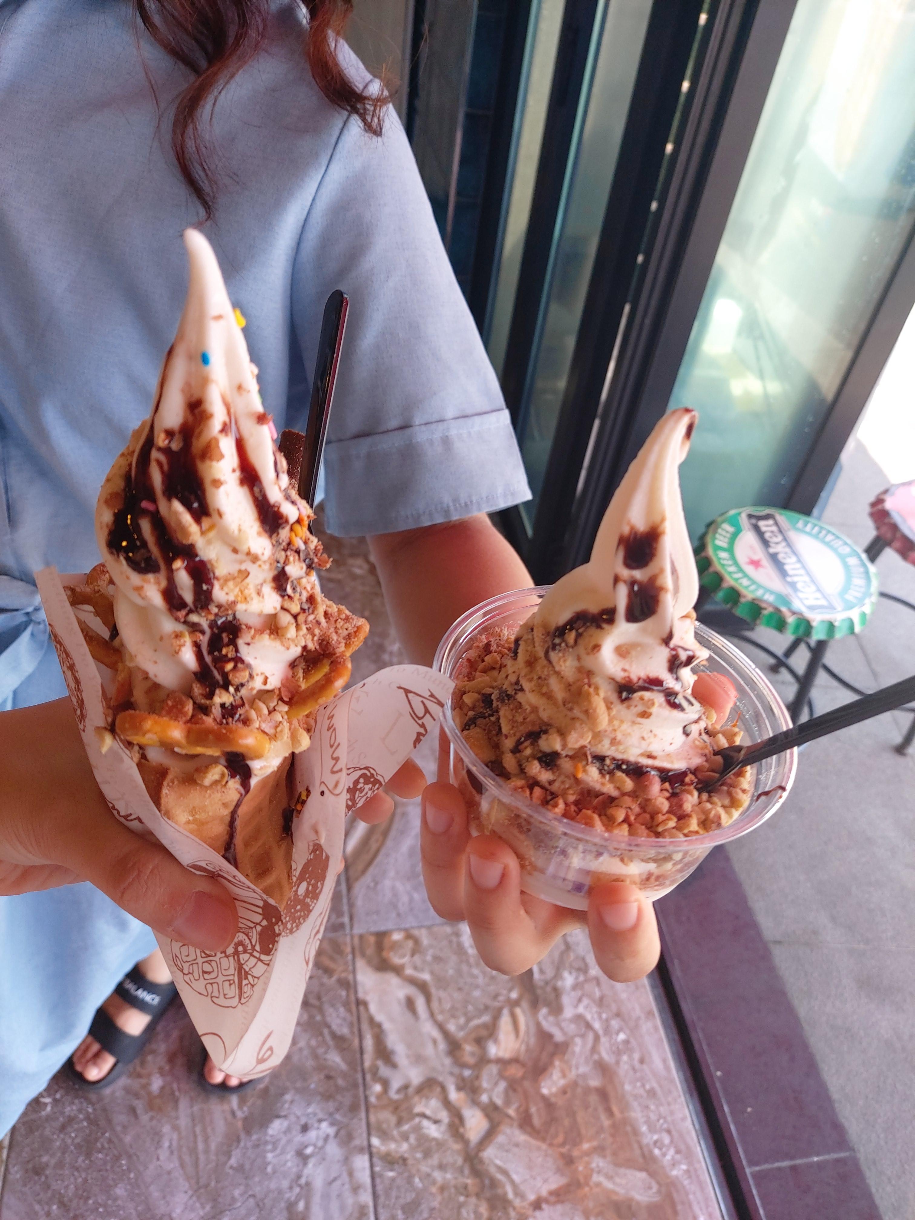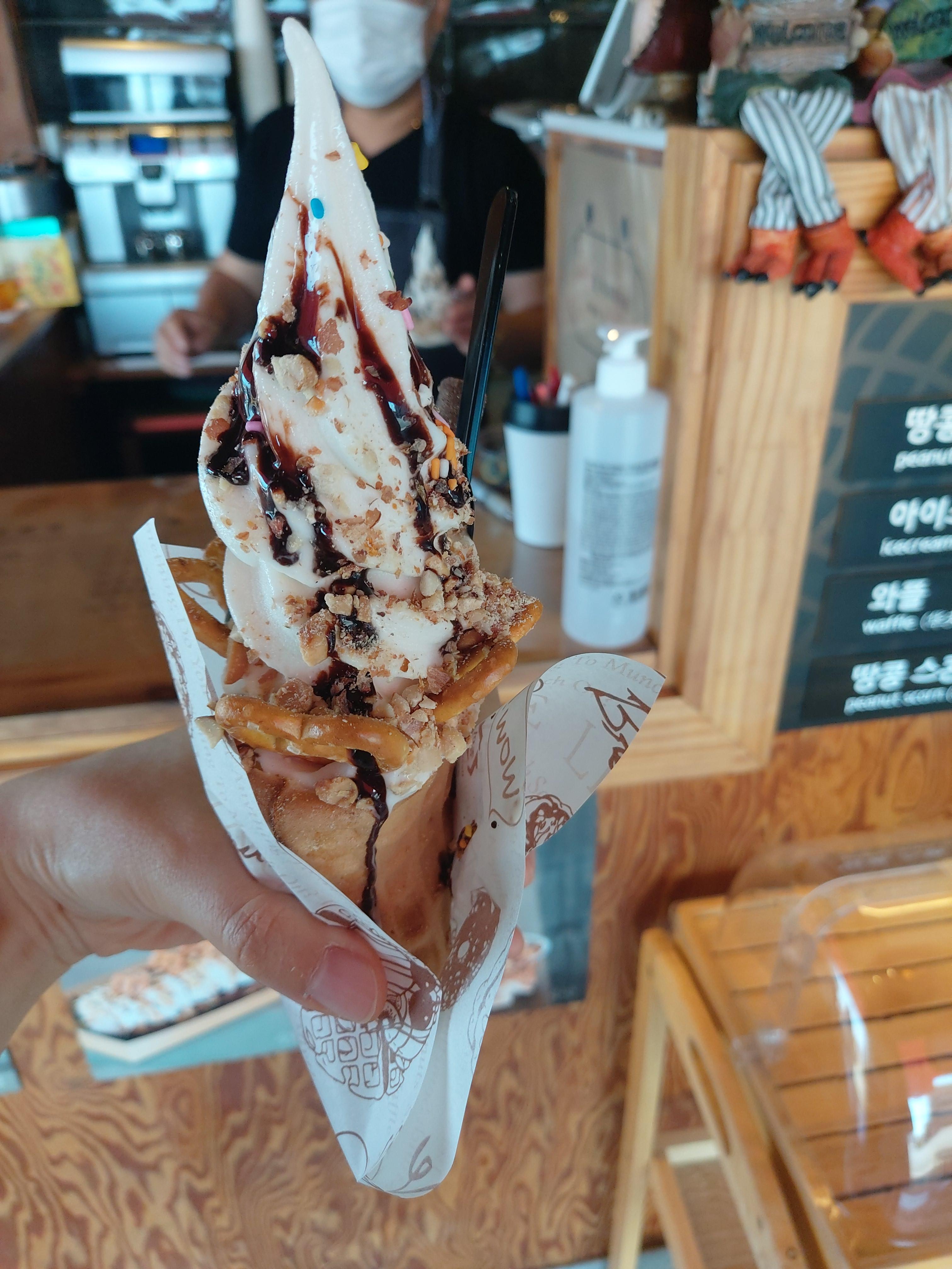 아이스크림 가격은 4천원으로 싸진 않았지만 그래도 그냥 먹어본다는데 의의를 두고 골랐다. 땅콩빵 아이스크림도 있길래 신기해서 같이 주문했다.