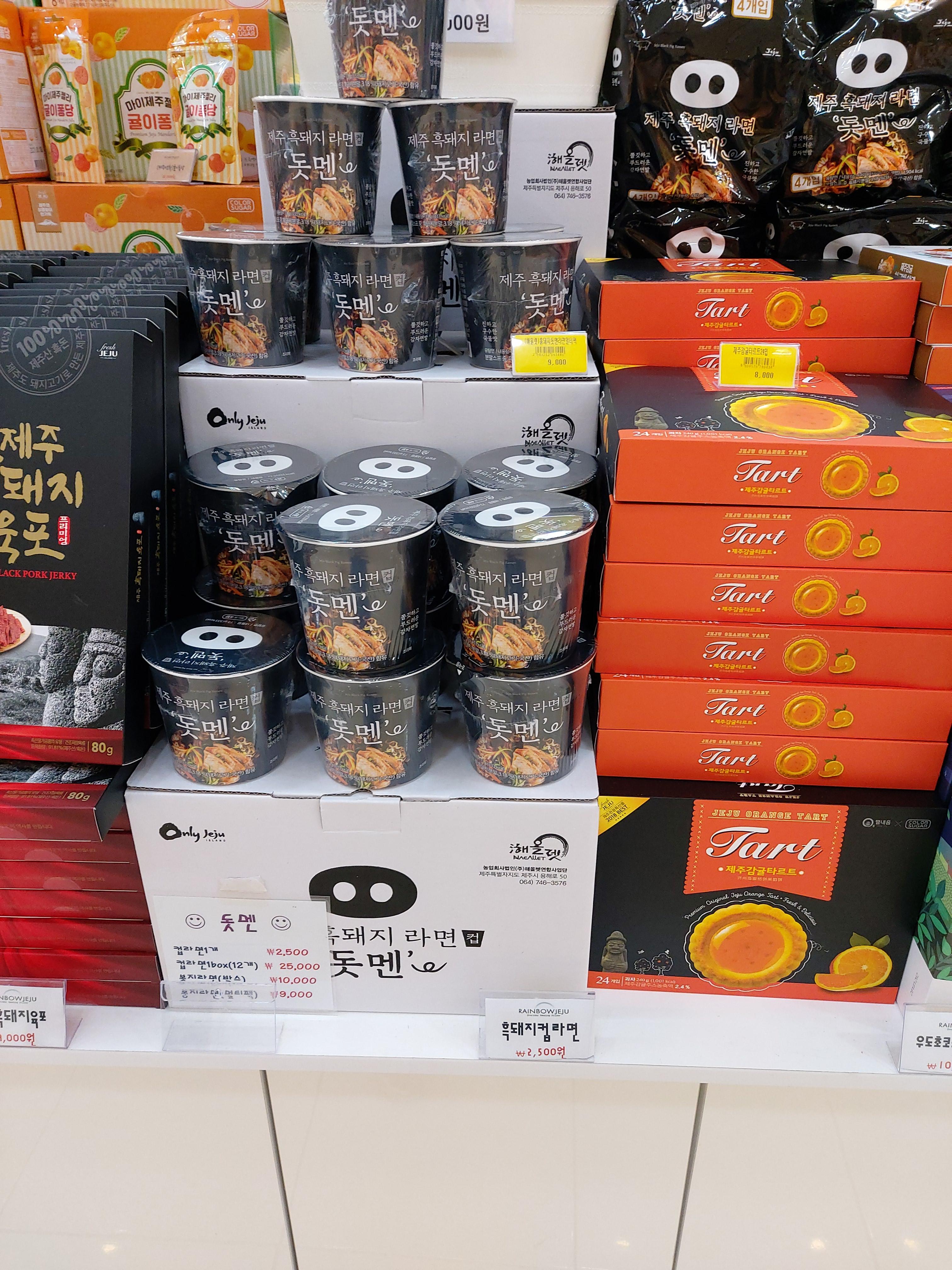 돗멘.... 은 제주 특산품으로 파는 듯 했는데 전에 비행기 타면서 한번 먹어본 바로는 그렇게 엄청 맛있다는 느낌은 아니라 굳이 궁금하다면 한번 정도만 먹어보면 될 듯 싶다.