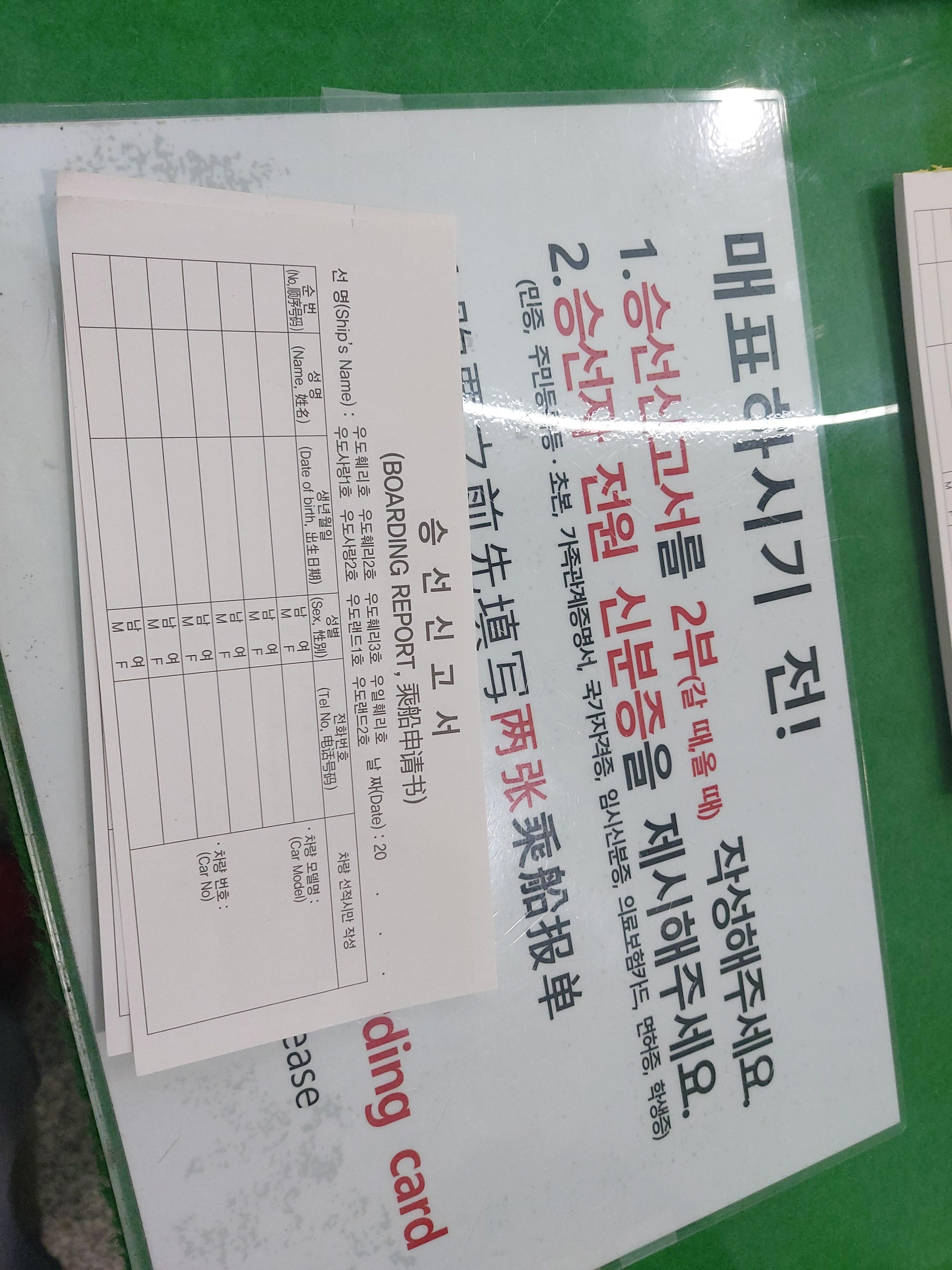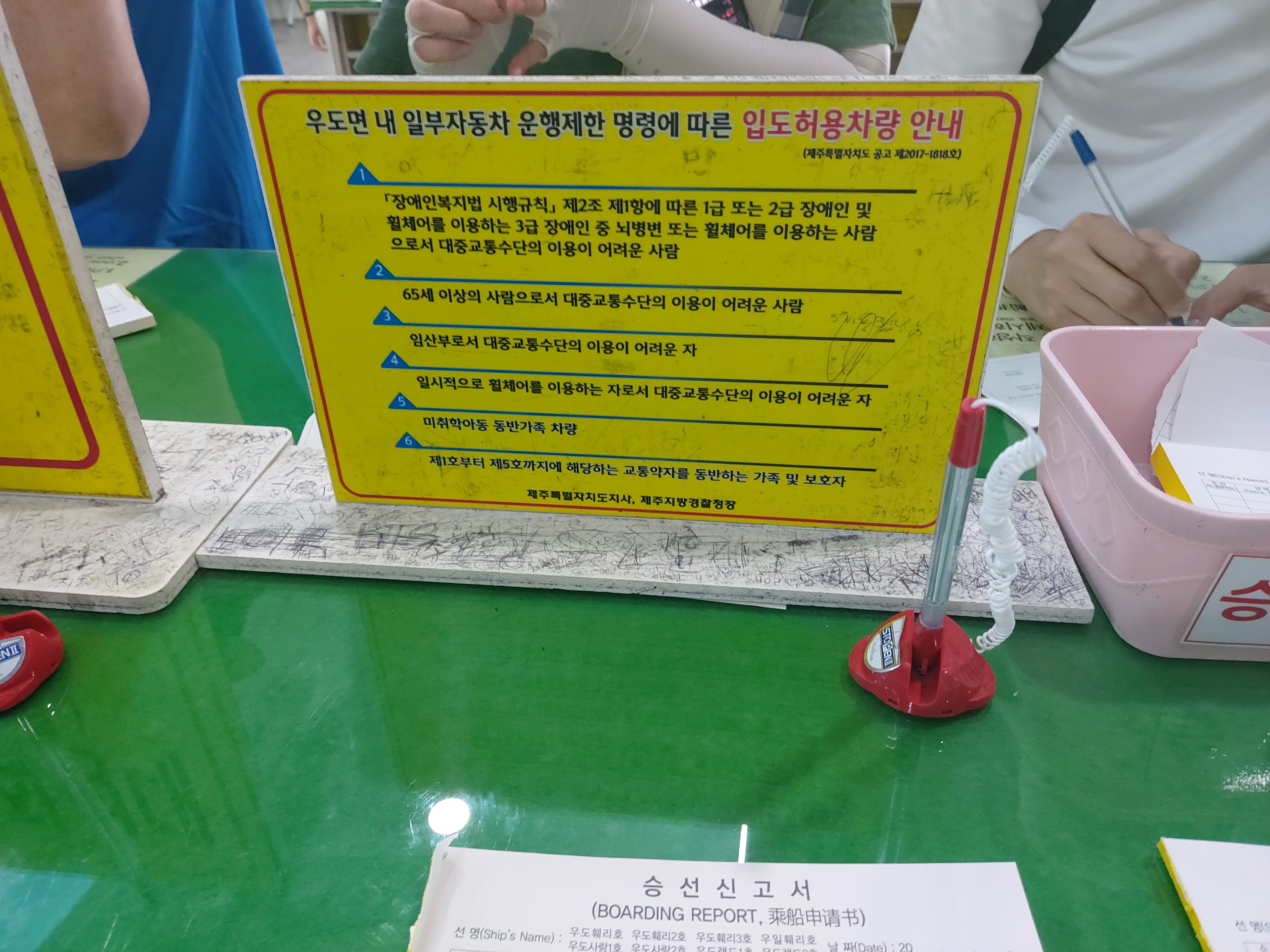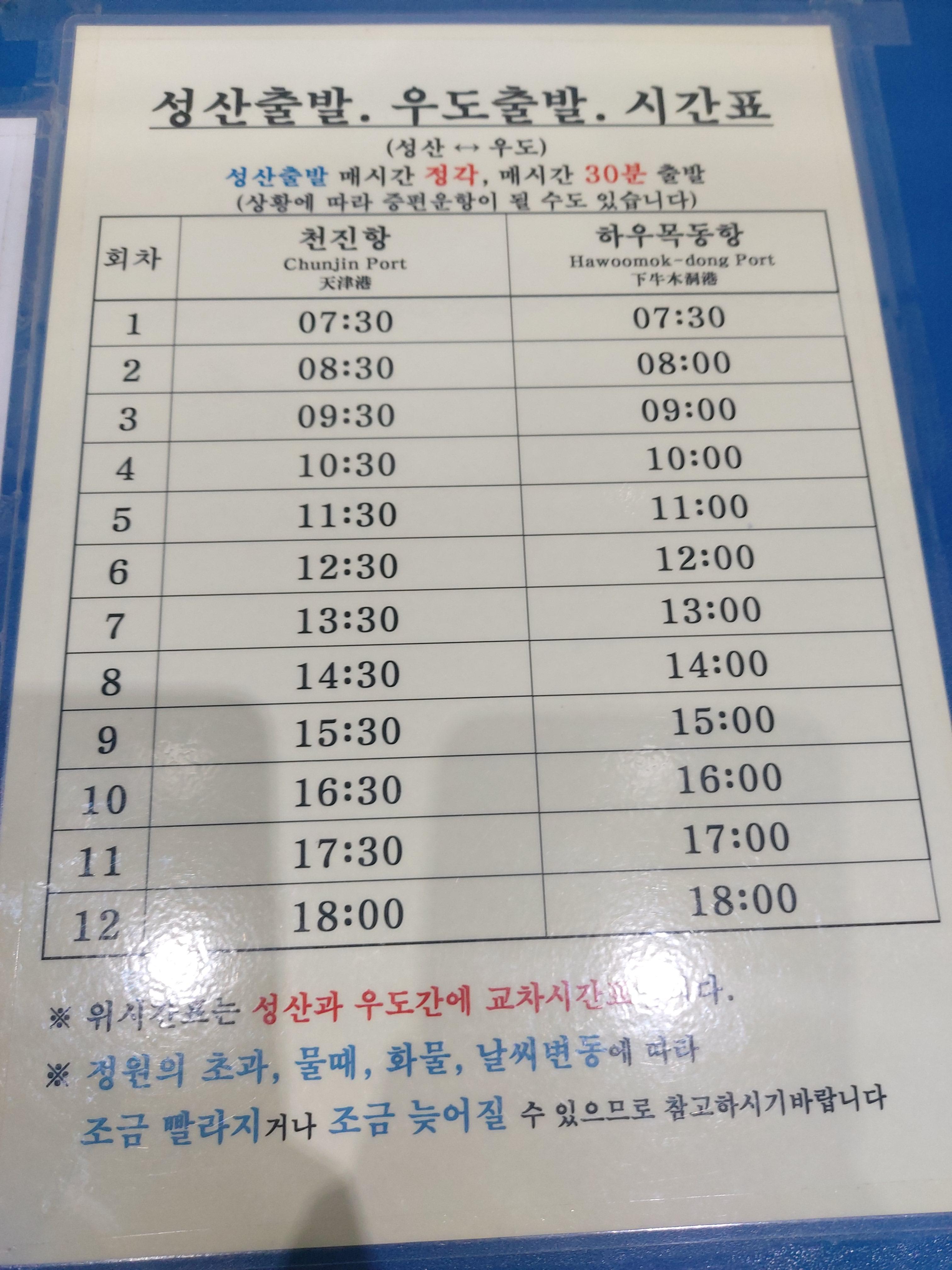 승선신고서를 탈때 돌아올때 용으로 두장 작성하고 티켓을 끊으면 끝. 티켓 끊을때 돌아오는 시간을 잘 확인하면 되는데 성산항에서 출발하는건 30분에 한대지만 우도에서 돌아올때는 항구마다 한번씩 가는거라 한시간에 한대란다. (그런데 내가 갔던날은 이걸 찍어놓고 갔는데 증편이었던건지 하우목동항에서 30분에 배가 있었음...읭? 하고 신나서 타긴 했다)