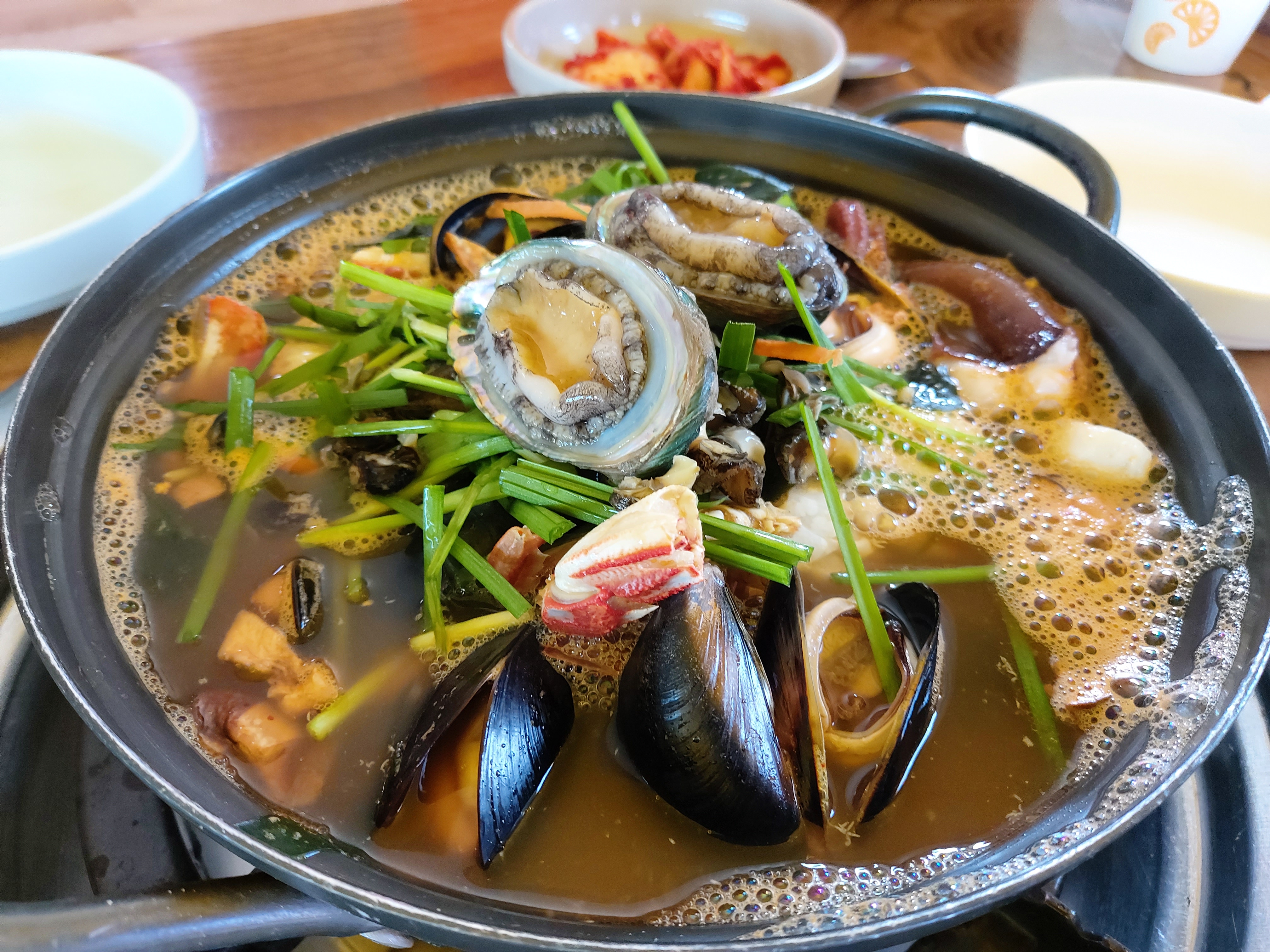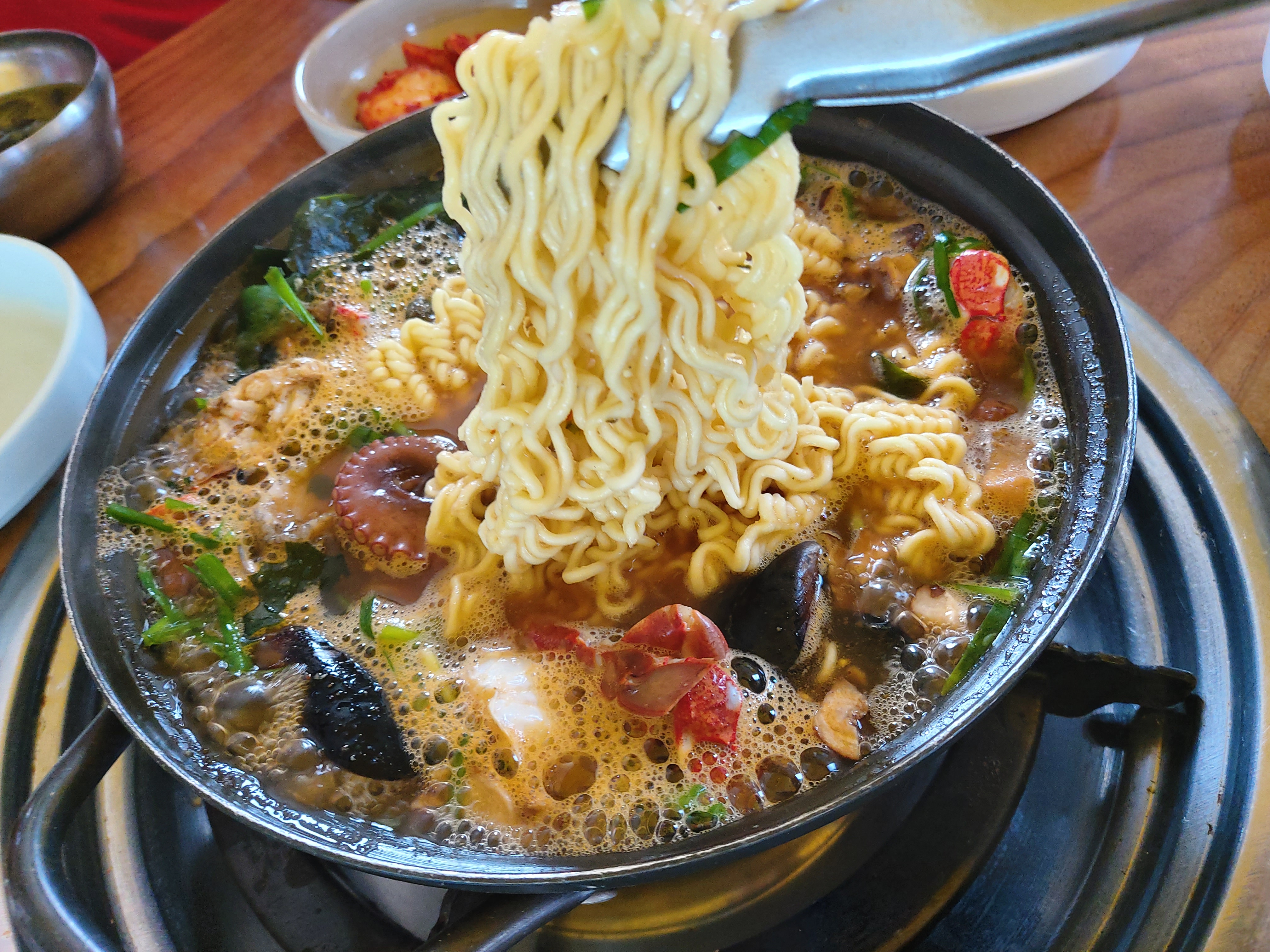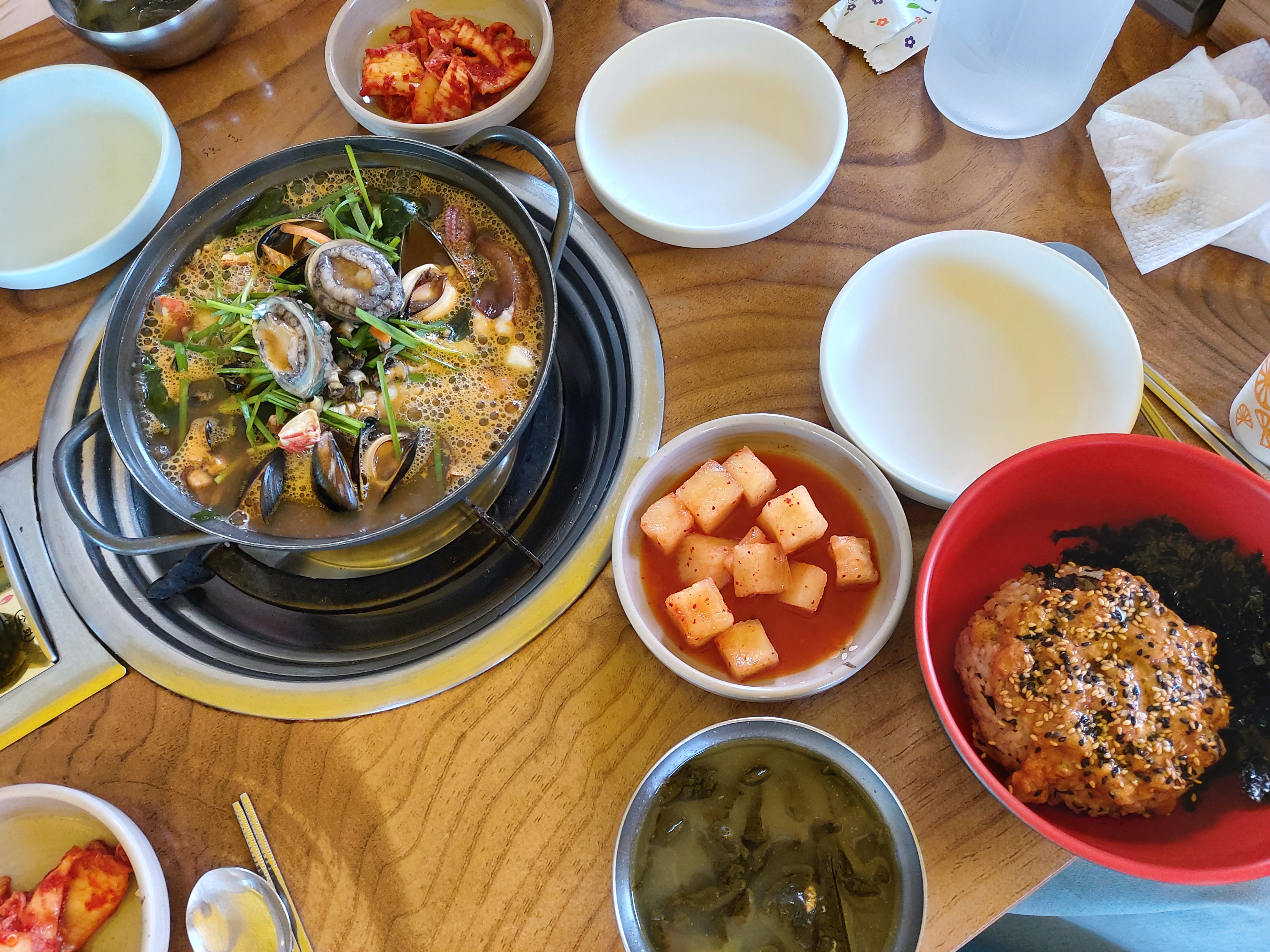 라면 하나만 시켰는데 게에 전복에 홍합에 각종 해산물이 들어가있어서 국물이 엄청 칼칼해서 좋았다. 비빔밥이랑 같이 먹었을때의 조합도 훌륭해서 와 진짜 라면은 신의한수라며 같이 퍼먹었다.