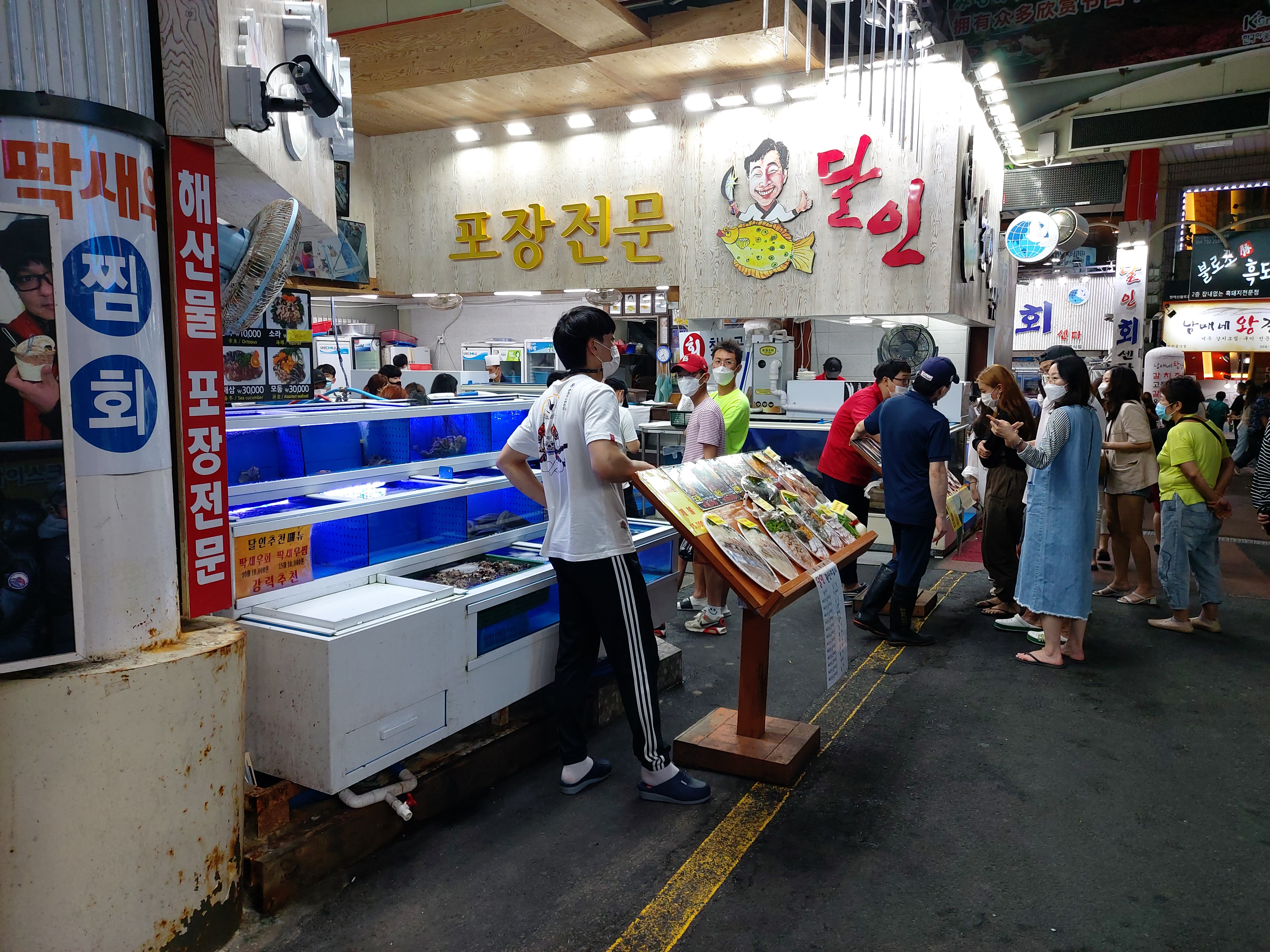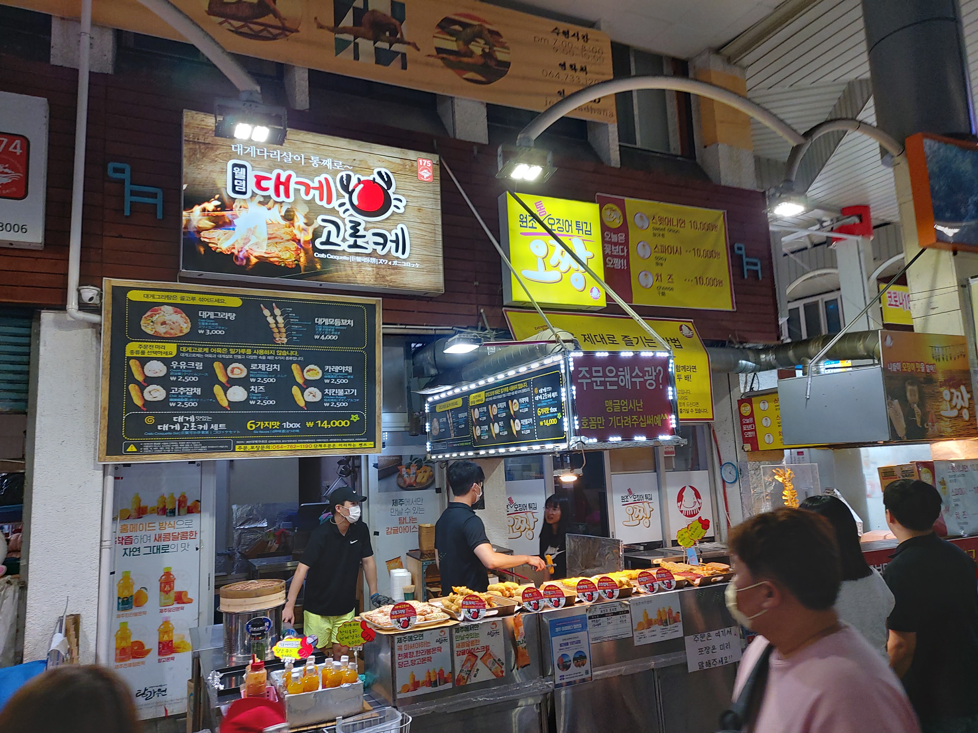 18:30~19:30 정도 시장에서 구경하고 살거 사고 회와 치킨, 김밥에 떡볶이 포장해서 호텔로 이동