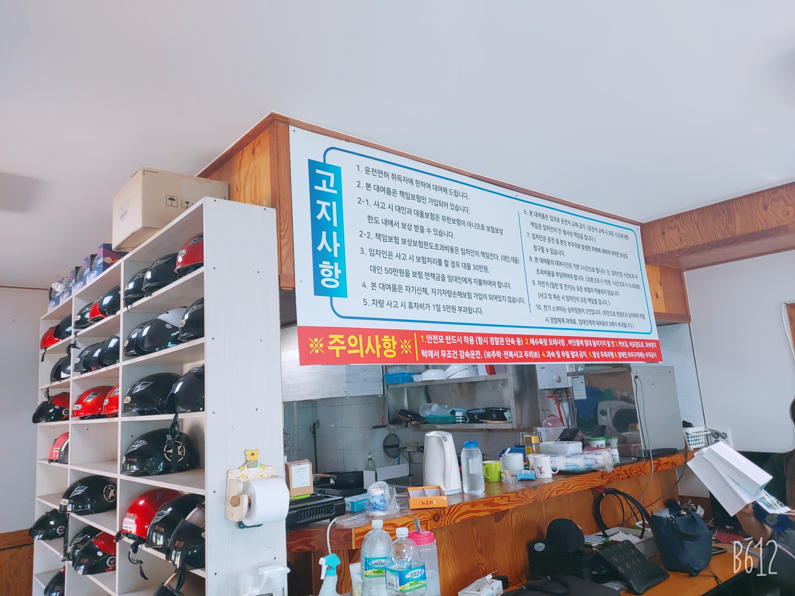 부모님은 그래도 옆으로 앉는걸 타고싶다고 하셔서 그걸로 빌리고 우리는 옆에서 맘에들게 생긴 하늘색 전기차를 빌렸다. (3시간 3만원) 빌리는데 친절하게 지도도 주고 어떤 길로 가라고 안내도 해주셔서 고대로 따라갔다.