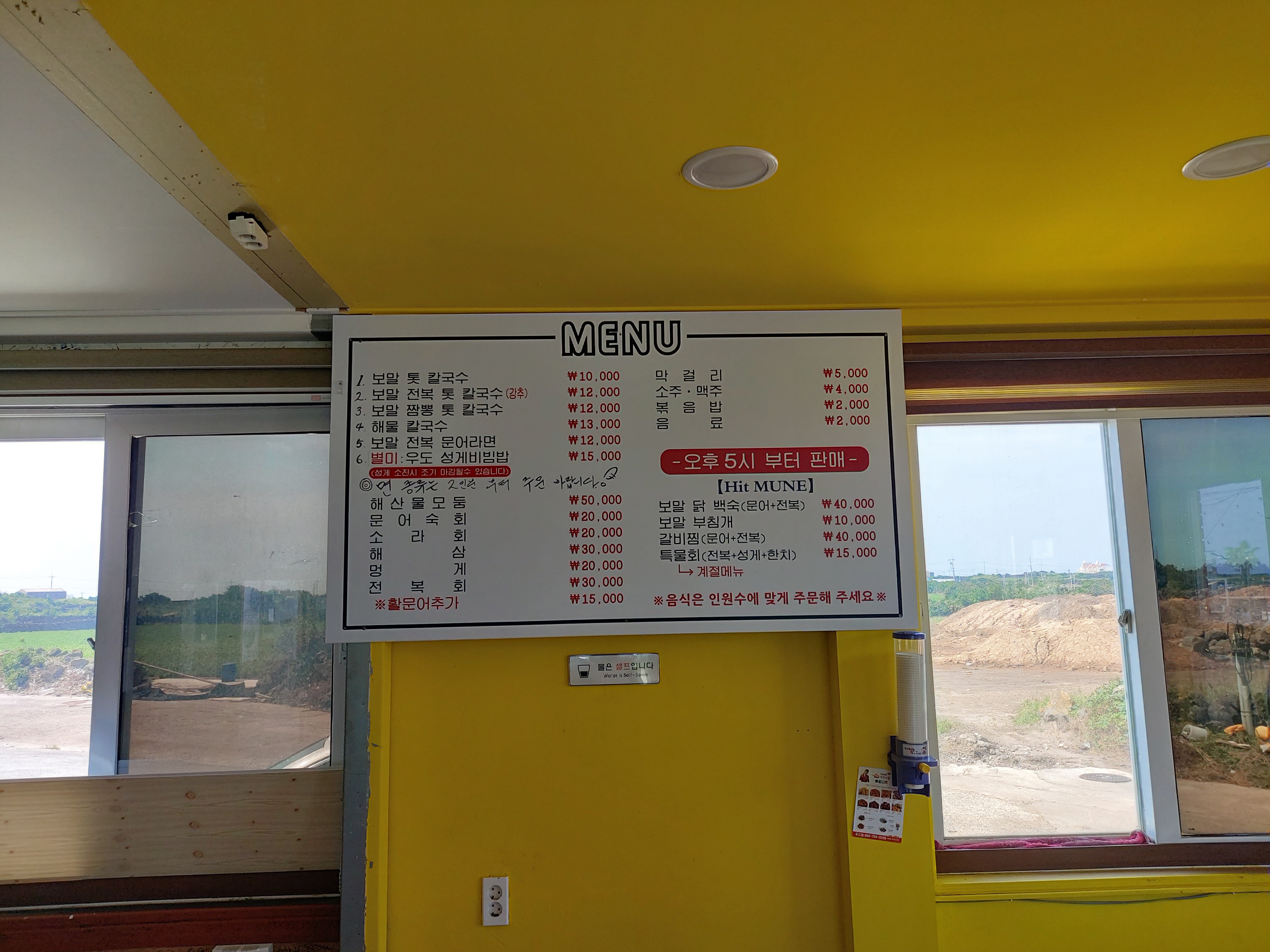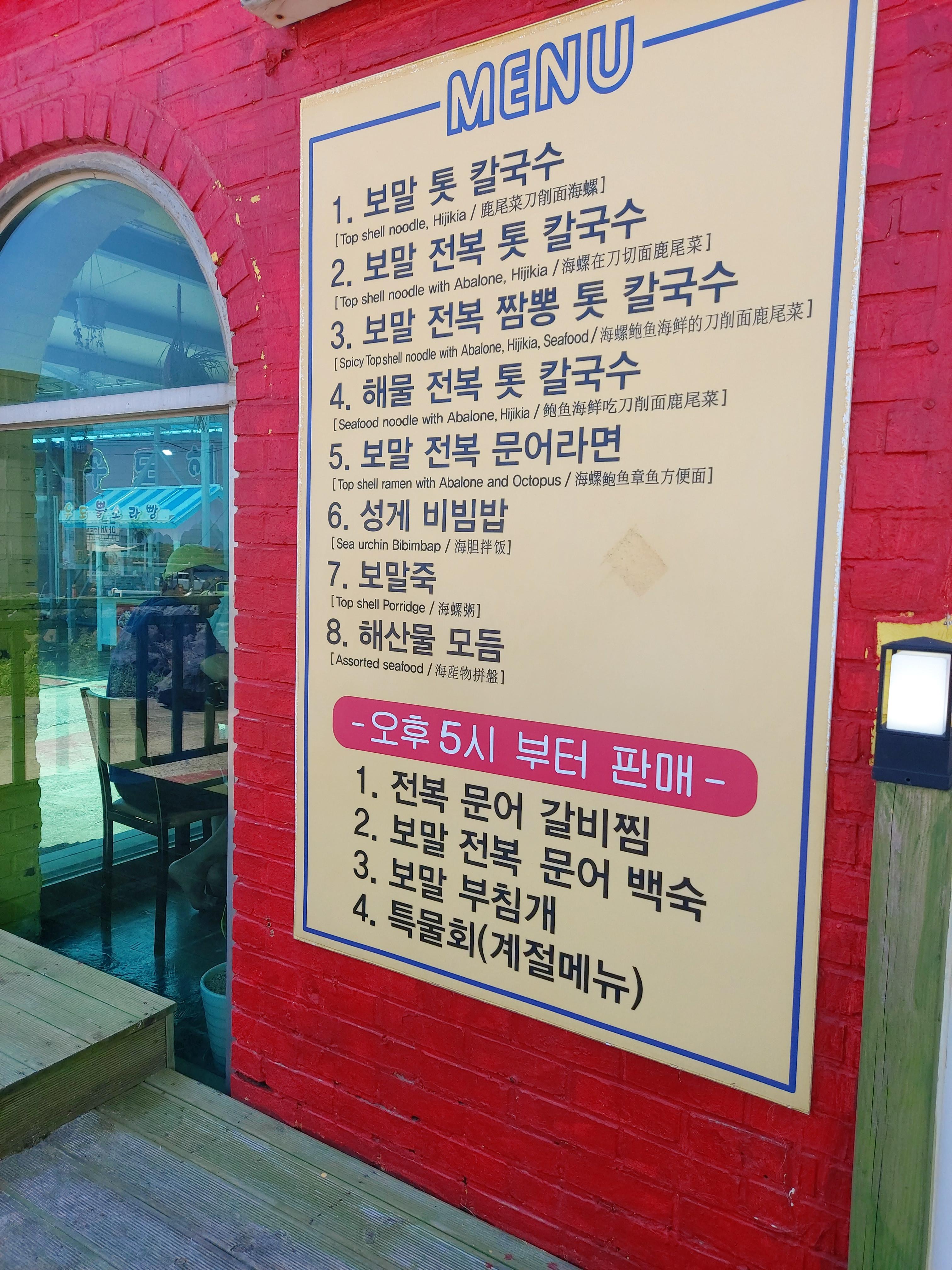 메뉴는 톳칼국수와 비빔밥, 문어라면, 보말죽 등이 있었다.