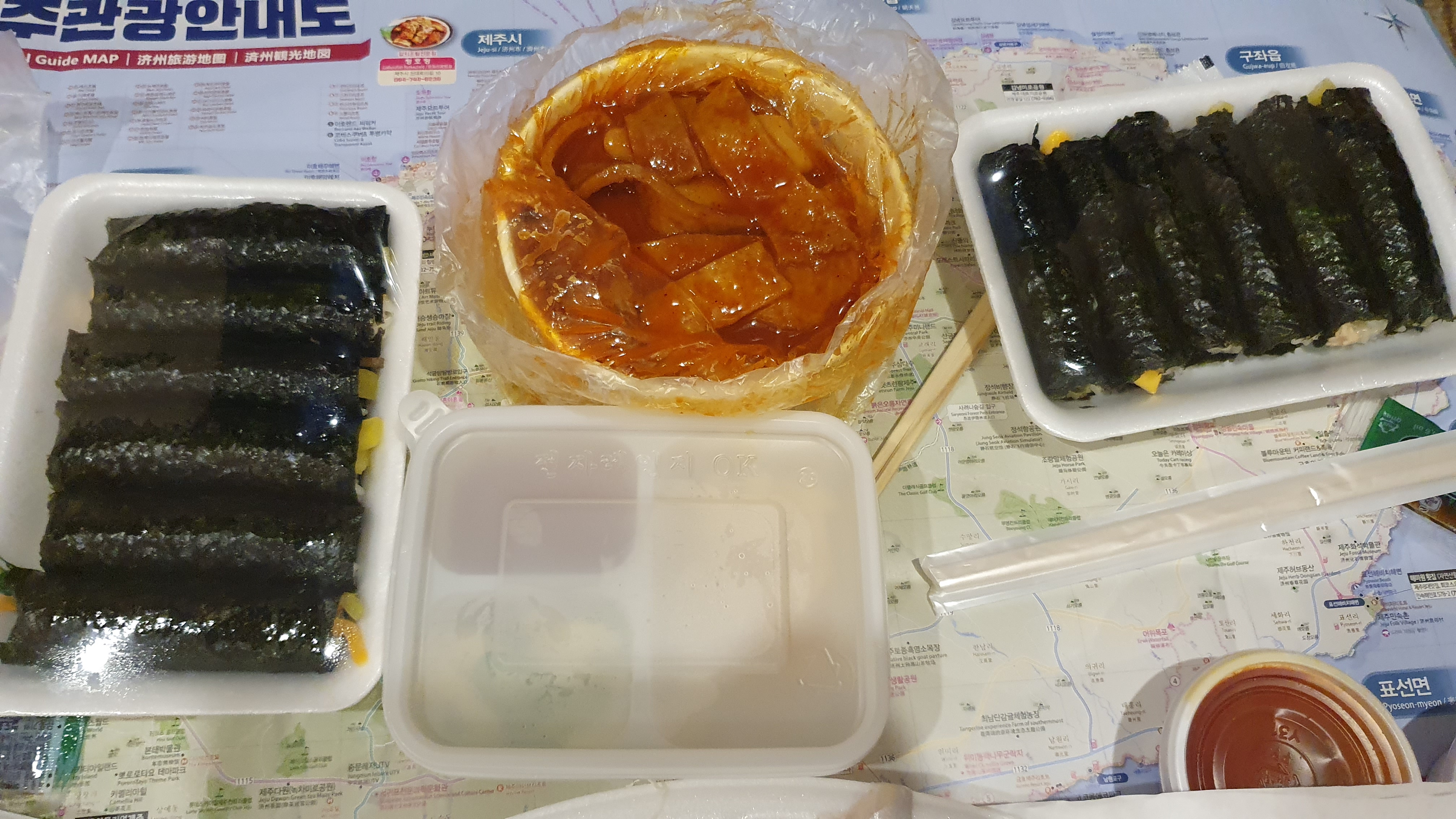 마농치킨에 김밥과 떡볶이. 사실 회 빼고 이것만 먹어도 이미 충분히 4인분일것 같은데 먹고싶은걸 다 고르다보니 양이 넘쳤다. 하지만 떡볶이는 의외로 신의한수였고 (치킨 찍어먹으면 꿀조합)