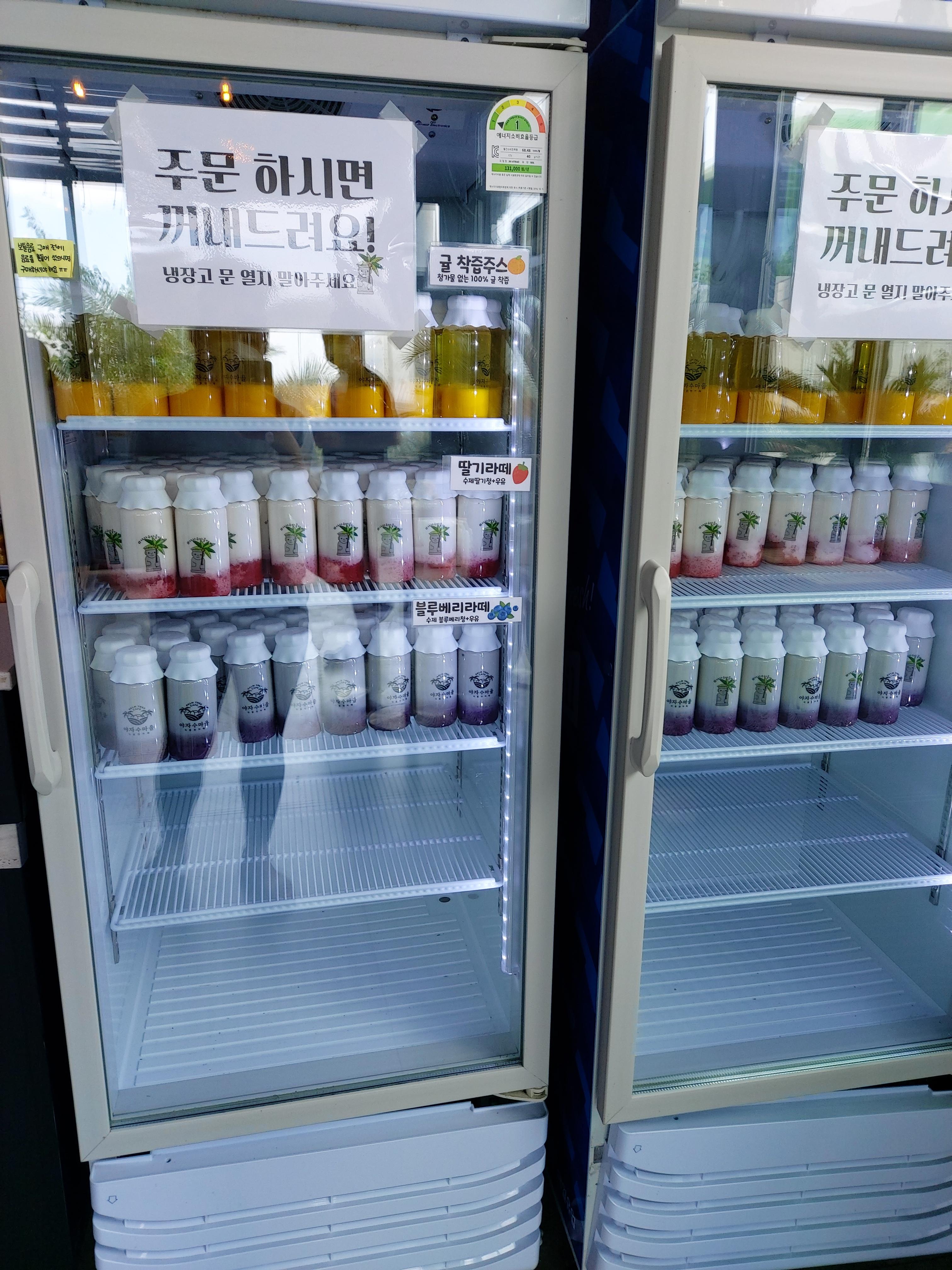 한쪽 쇼케이스에 보틀음료도 있었는데 이 중 딸기라떼를 주문했는데 제법 맛있고 병도 예뻐서 개인적으로는 추천한다. 얼음컵도 달라고 하면 주니 이걸로 마시는것도 나쁘지 않은 선택인 듯 싶다.