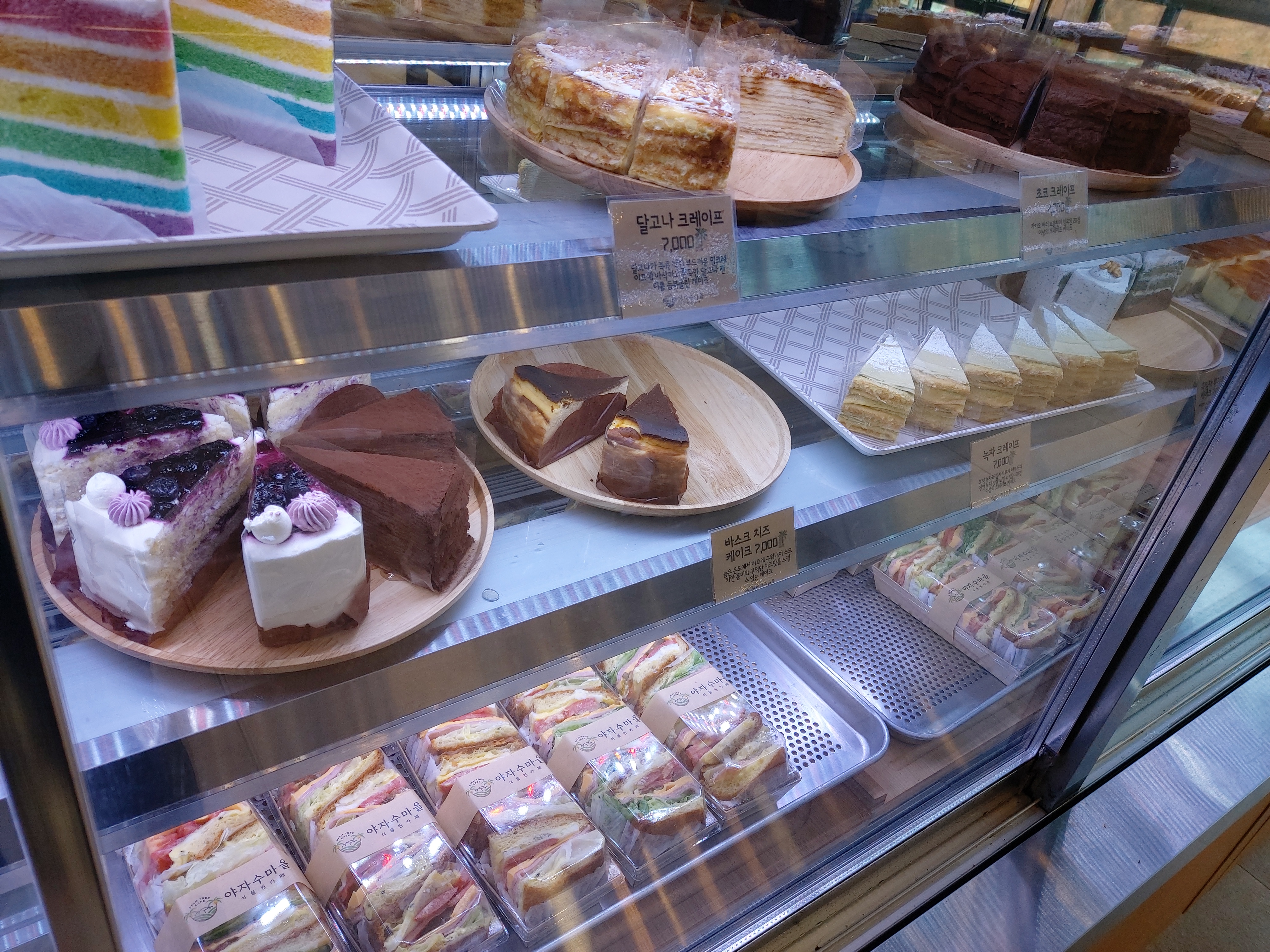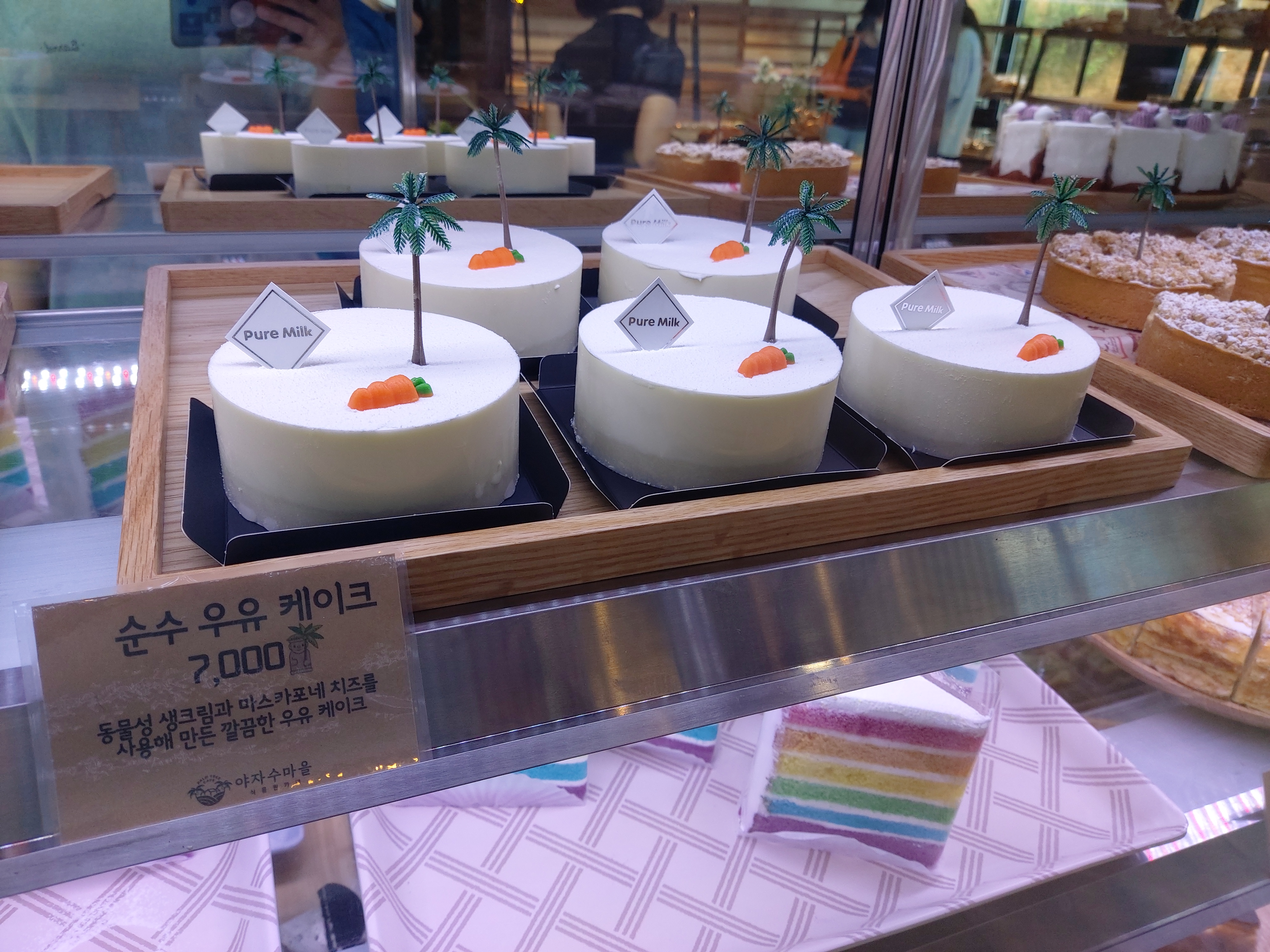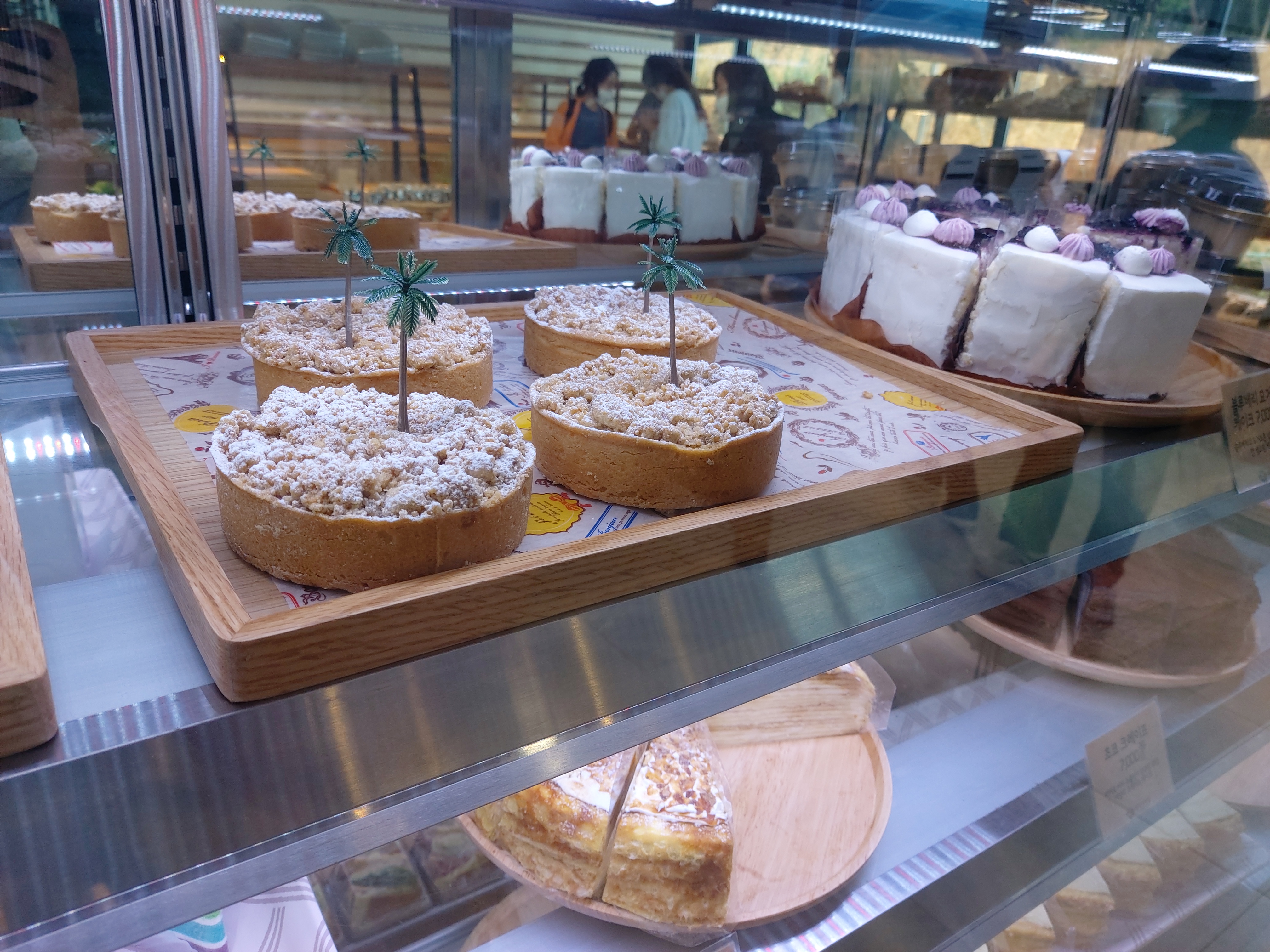 이 타르트와 우유 케이크...! 야자수가 한그루씩 꽂혀있는게 너무 귀여워서 하나 주문할까 살짝 고민하기도 했다. 아쉽게도 주문은 안해서 맛은 잘 모르겠다.
