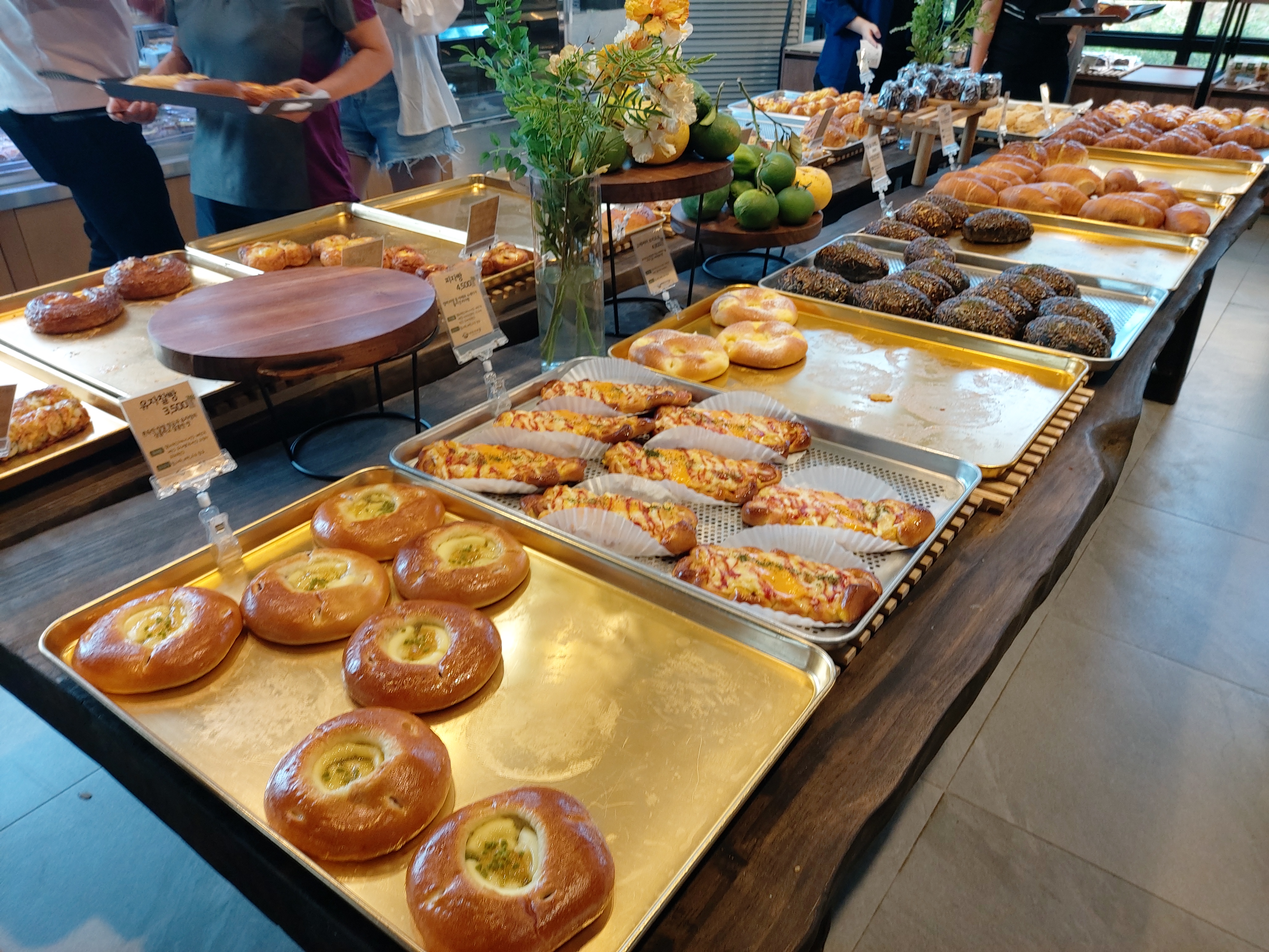 베이커리류도 제법 다양하게 있었는데 이미 식사를 거하게 하고와서 빵은 따로 주문하지 않았다. 다른 사람들 중에는 빵을 고른 사람도 많아서 한켠에서 다들 셀프 포장을 하고 있었다. 빵 포장은 셀프라서 하는 곳이 따로 있었다.