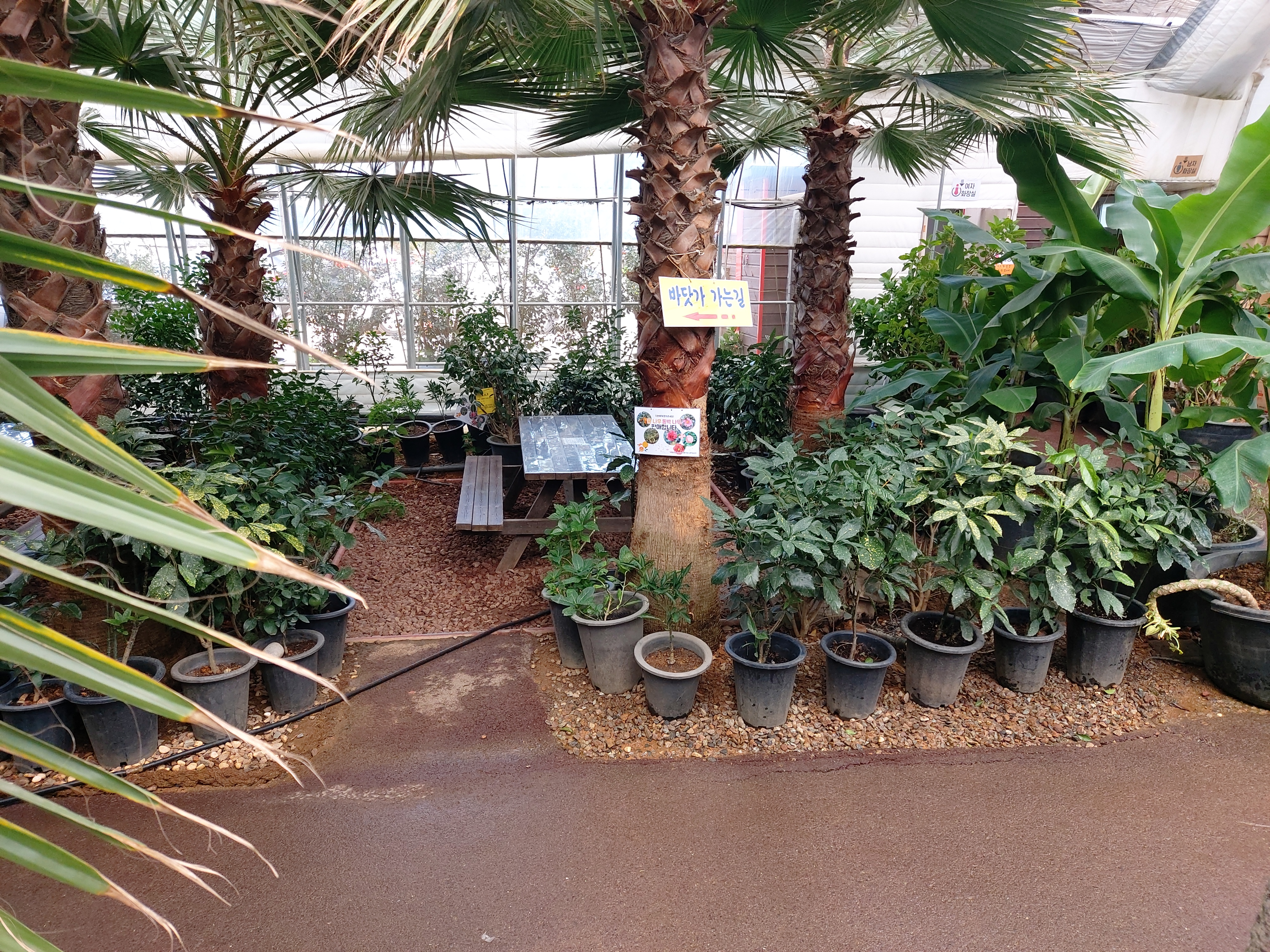 네비를 찍고 오다보면 야자수마을 카페 근처에는 아직 아무것도 없어서 (다 공사중이다) 차들이 이동하는게 보이면 다 여기로 오는 거였는데, 그걸 감당할만한 주차공간이 있음에도 엄청나게 붐볐고 단순히 식물원하나 이렇게 있는게 아니라 카페 건물 따로 식물원도 내가 생각했던것보다 큰 규모, 거기다 야외에 공간도 있었다. 거기다 식당 건물로 추정되는 건물도 따로 있었는데 다른쪽에는 건물을 더 짓고있기 까지 했다. 아마도 점점 더 확장을 하려는 것 같았다.
