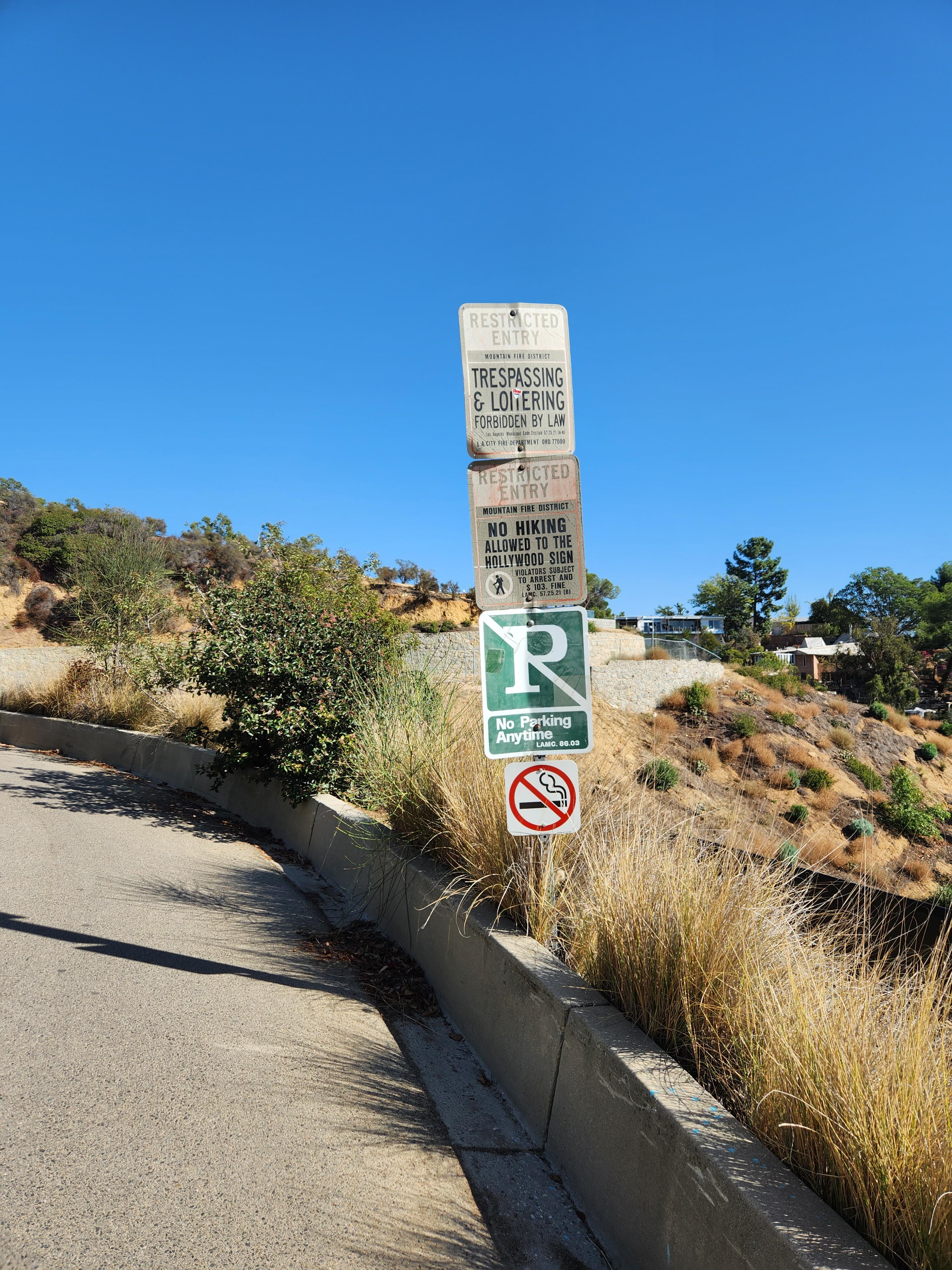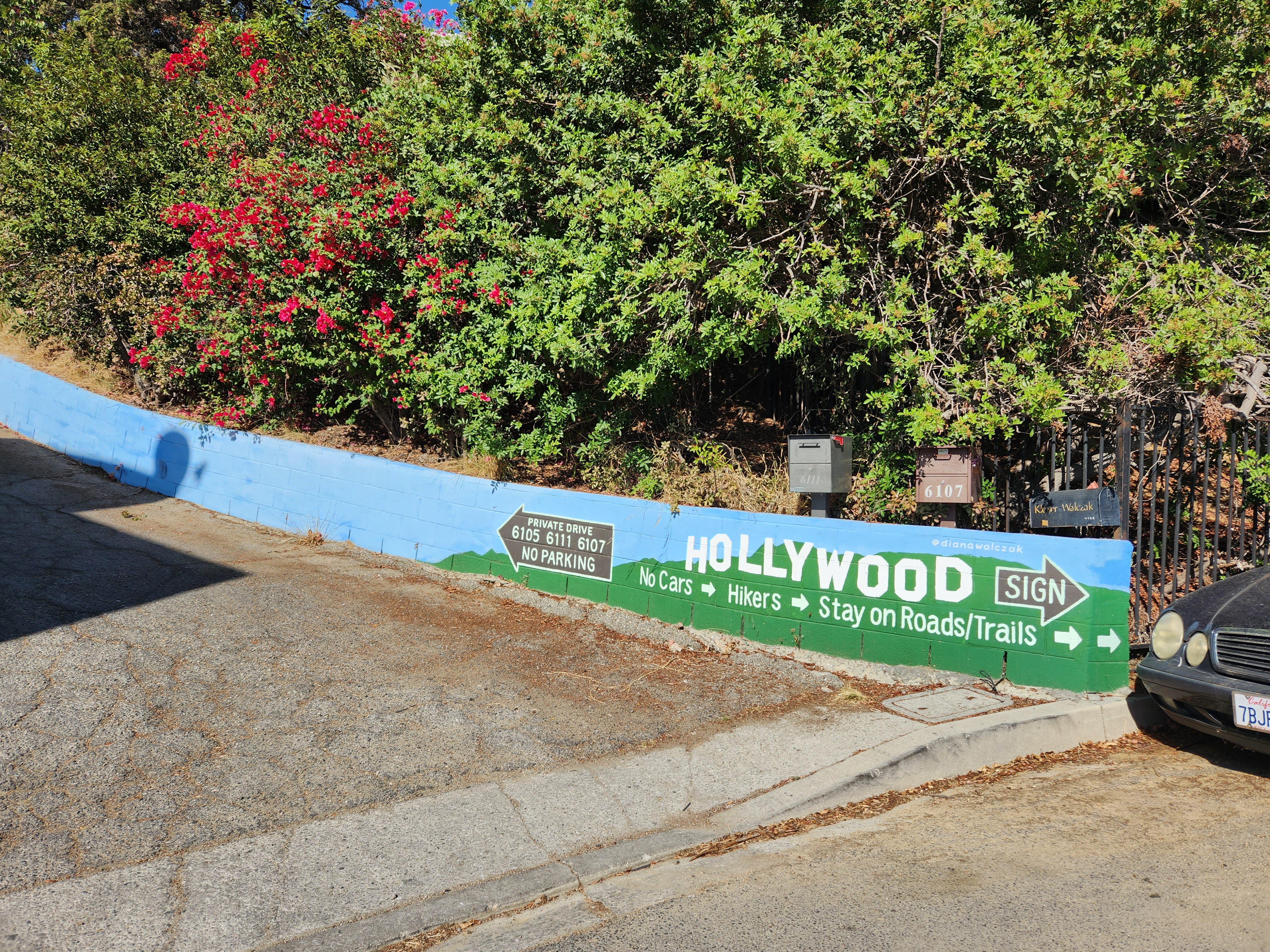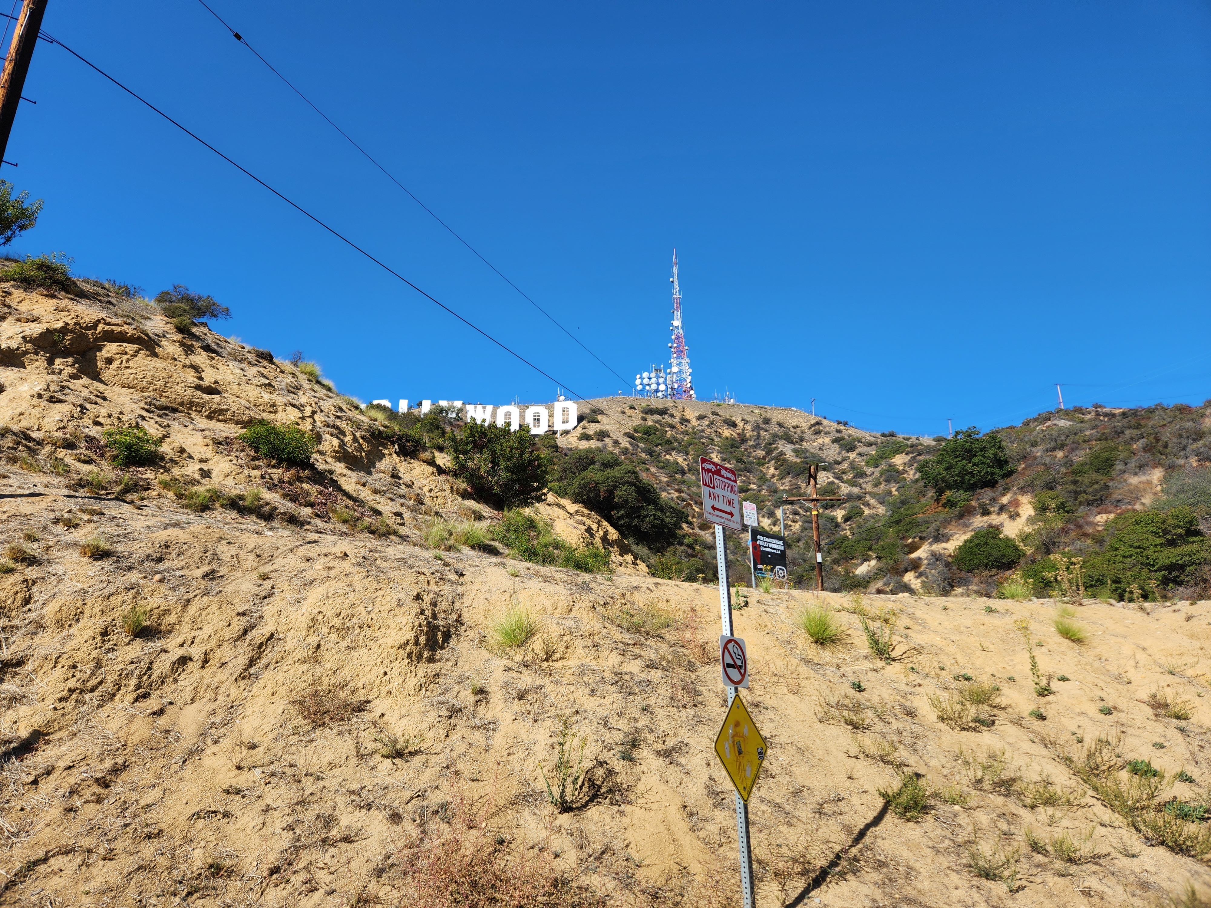 실제로 헐리웃 사인이 있는 위치는 저 위쪽이지만 걸어갈 수 있는 위치는 이정도다. 사인에 더 가깝게 트래킹해서 올라가는 사람들을 보긴 했지만 표지판으로는 트래킹 금지라고 써있어서 이게 가능한 건지는 모르겠다. 사인이 워낙 높은 곳에 위치해있는데다가 크기도 커서 멀리서부터 차로 이동하면서도 구경할 수 있었다.