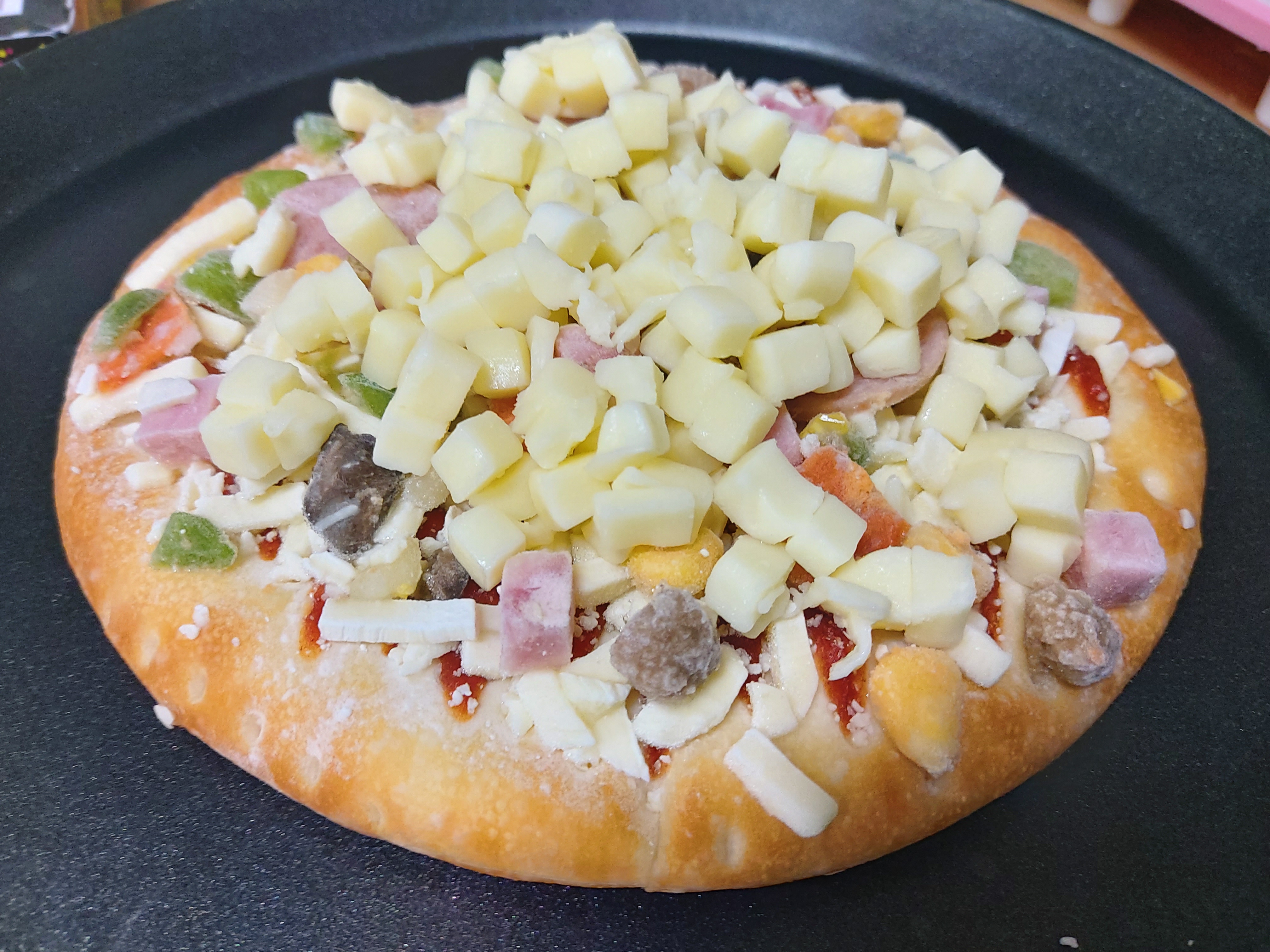하지만 내가 피자를 뜯은 이유는 바로 이 생모짜렐라 치즈를 얹기 위함이었다.