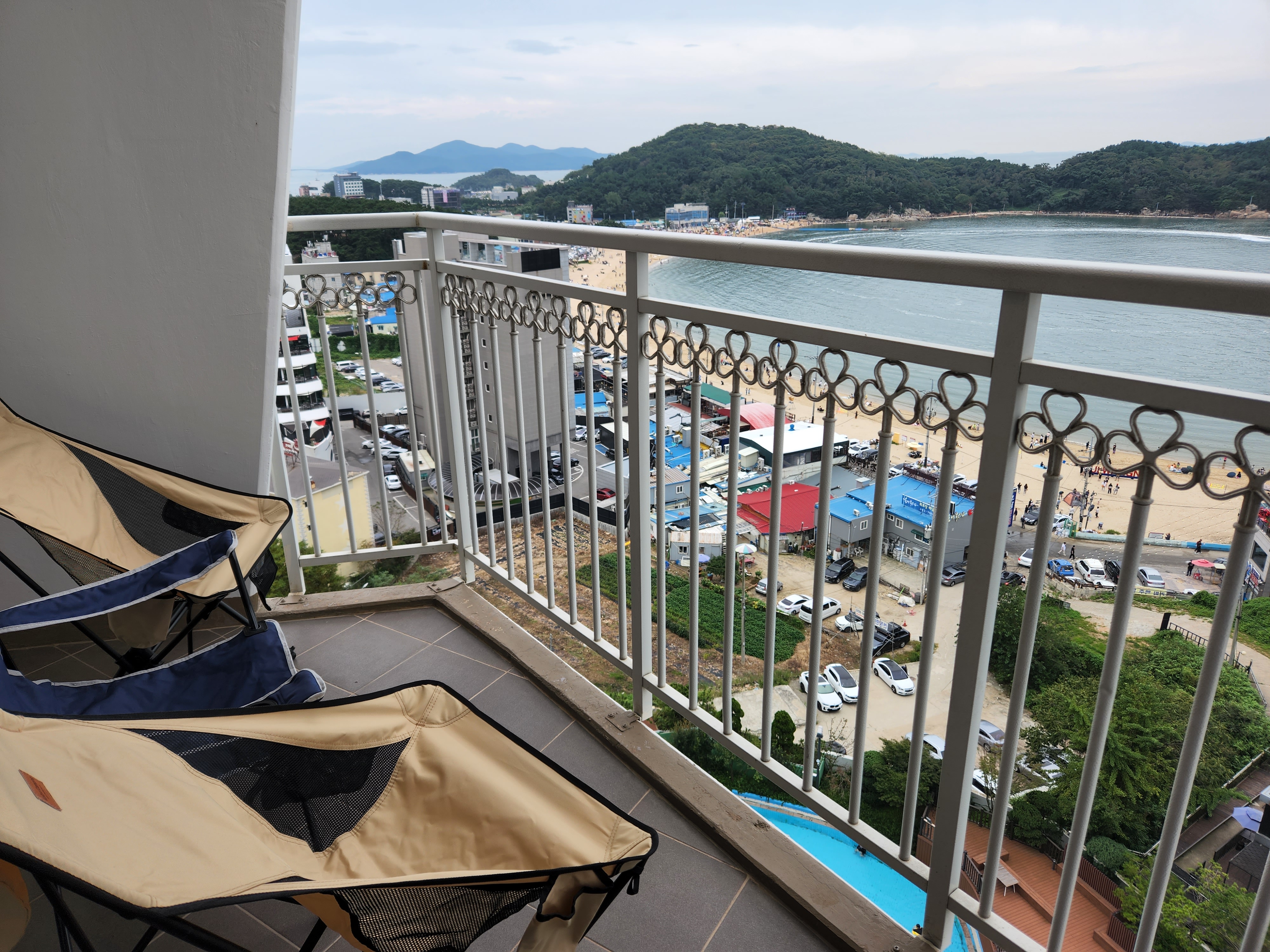 그리고 거실에 붙어있는 테라스에서도 해수욕장을 바로 구경할 수 있어서 방에 들어올 때마다 자주 테라스에 나갔다. 가만히 보고만 있어도 좋은데 방에 있는 의자를 가지고 가기는 조금 애매한 구조에 테라스에 따로 의자도 없어서 가서 앉아있으려면 캠핑의자같은걸 따로 챙겨가는게 좋을 것 같다.