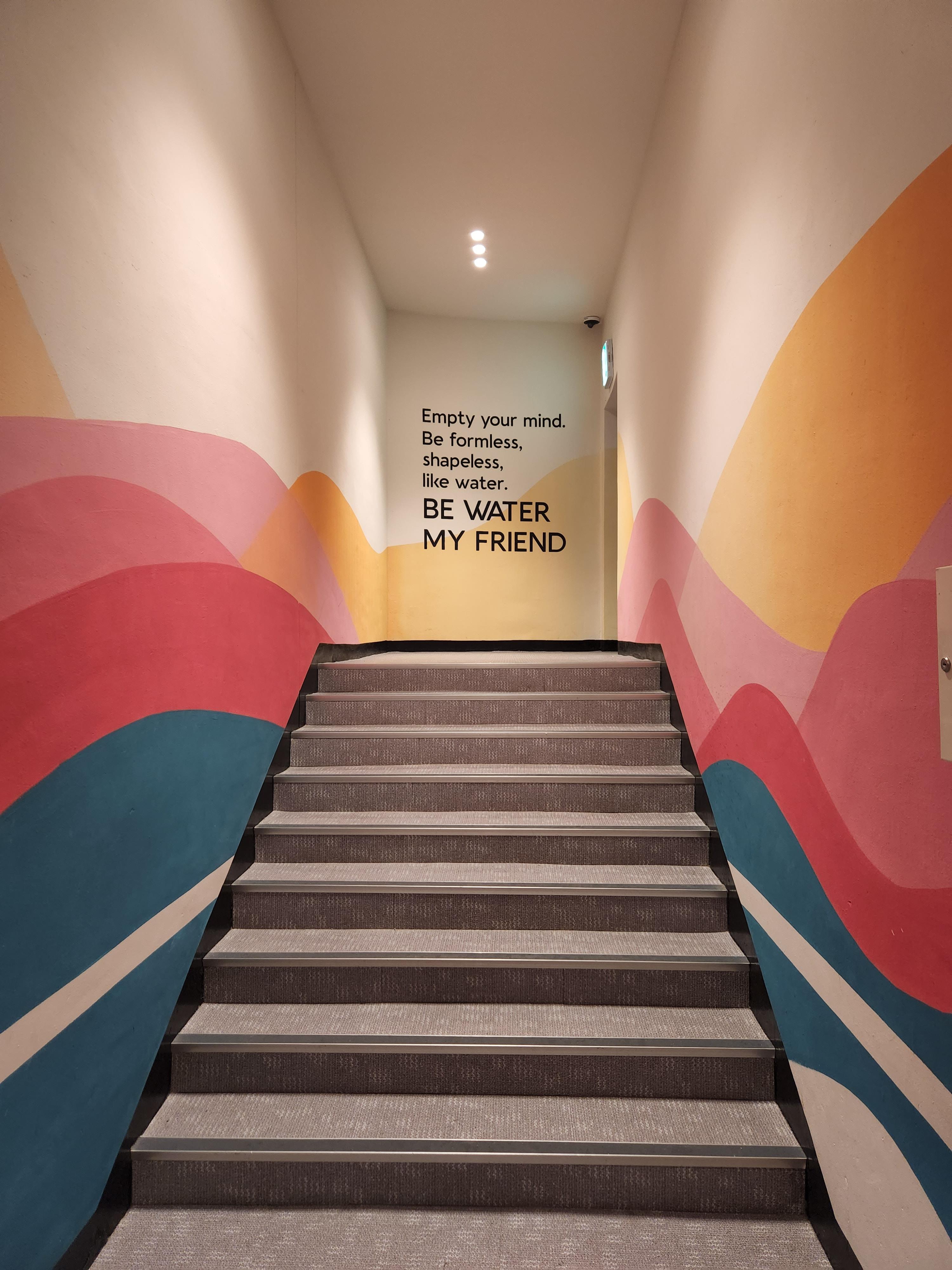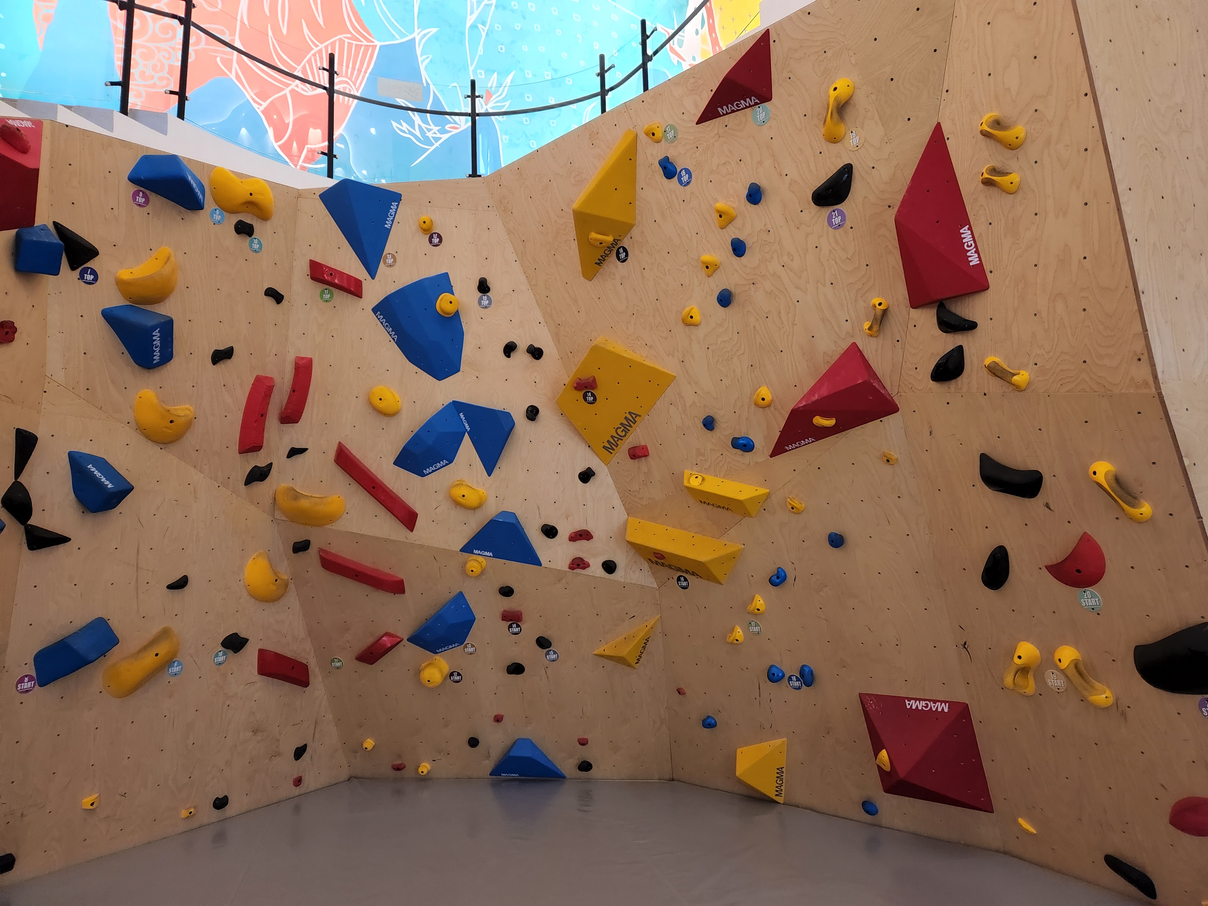 같은 층이지만 문으로 분리되어있는 공간(계단이 바깥 1층과 통해있는 공간이었다) 에 작게 클라이밍 암벽이 있어서 체험도 가능했다. 제법 위험할 것 같은데 따로 안내하는 직원은 없었다. 도전하는 사람이 잘 없어서 그런거겠지...? 제일 쉬운건 맨손 맨발로도 할 수 있었지만 내 수준에 살짝 어려워보이는건 시도하다 다칠 것 같아서 구경만 하고 왔다.