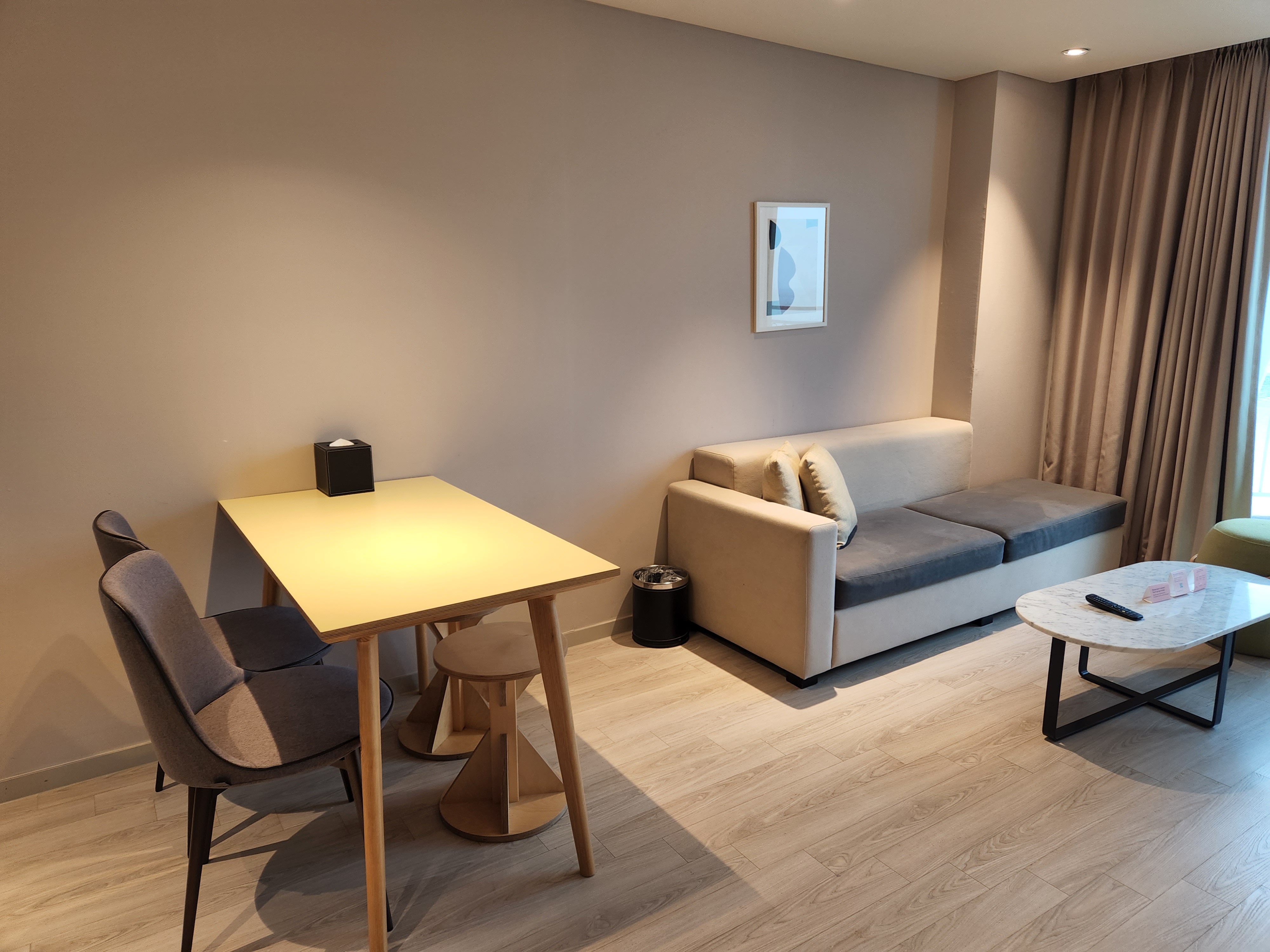 리조트라 그런지 가격은 제법 쎈 편이었는데 방 컨디션이 아주 좋아서 가족단위로면 한 번쯤 올만하지 않나 싶긴 했다. 방도 두개였고, 화장실도 두개라 친구들과 함께 와서 놀기에도 엄청 좋을 것 같았다. 화장실은 거실쪽에 있는 것과 안방에 붙어있는 화장실이 있었다.