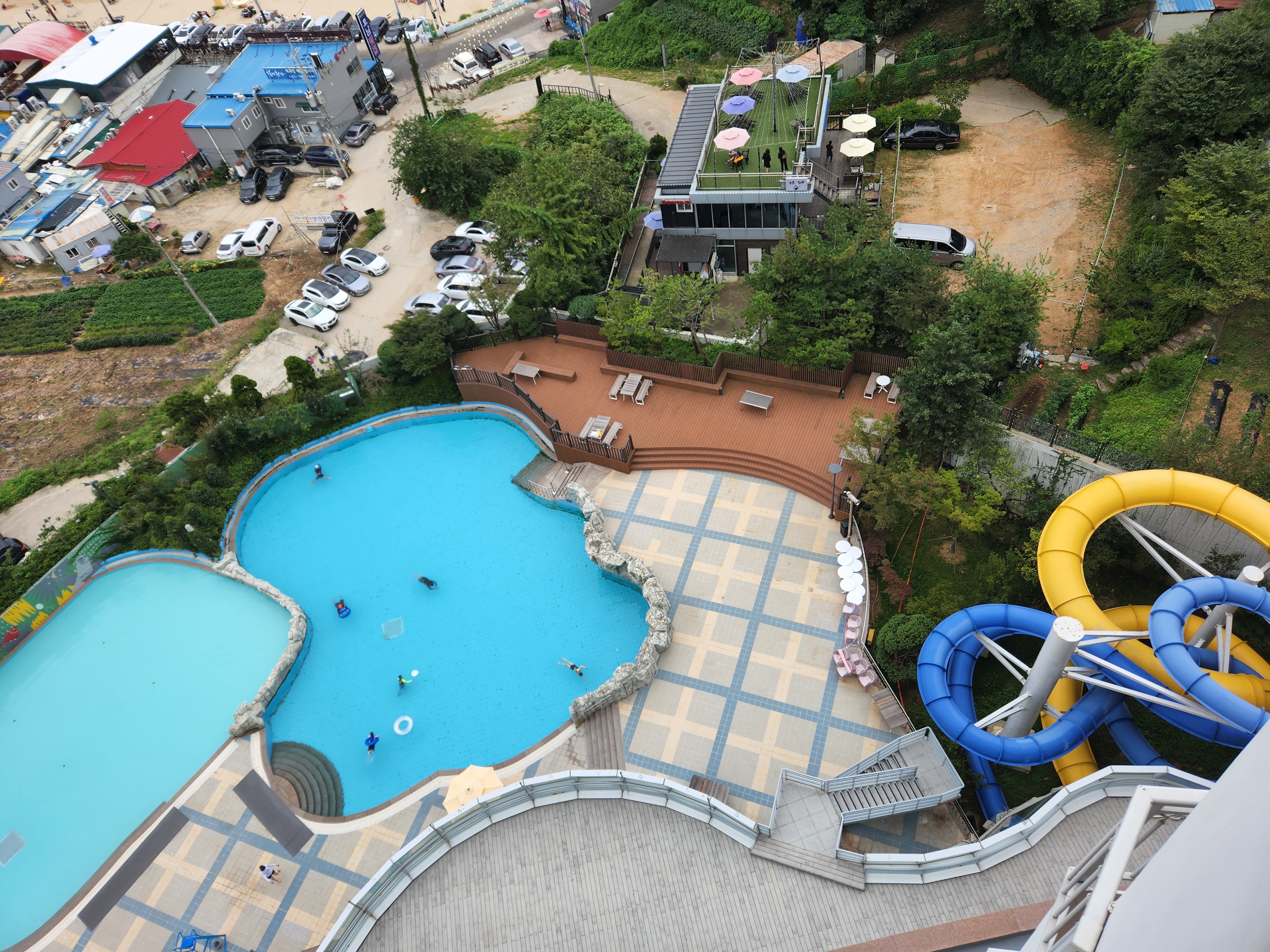 여기가 그 유명한 더위크앤리조트의 아쿠아센터..... 인데 가격이 4만원으로 제법 쎈 편이었다. 투숙객은 30% 할인을 해줬는데 그래도 2만원 후반~3만원이이었다. 수영복과 수영모자가 필수였는데 운영시간에 맞춰가서 하루종일 놀 수 있으면 그게 제일 가성비가 좋지 않을까 싶긴 했다. 갈 수 있으면 가는게 좋겠지만 우리 가족은 안가고 그냥 동네를 살짝 구경하고 방에서 먹고 놀기로 결정해서 구경만 하고 들어왔다.