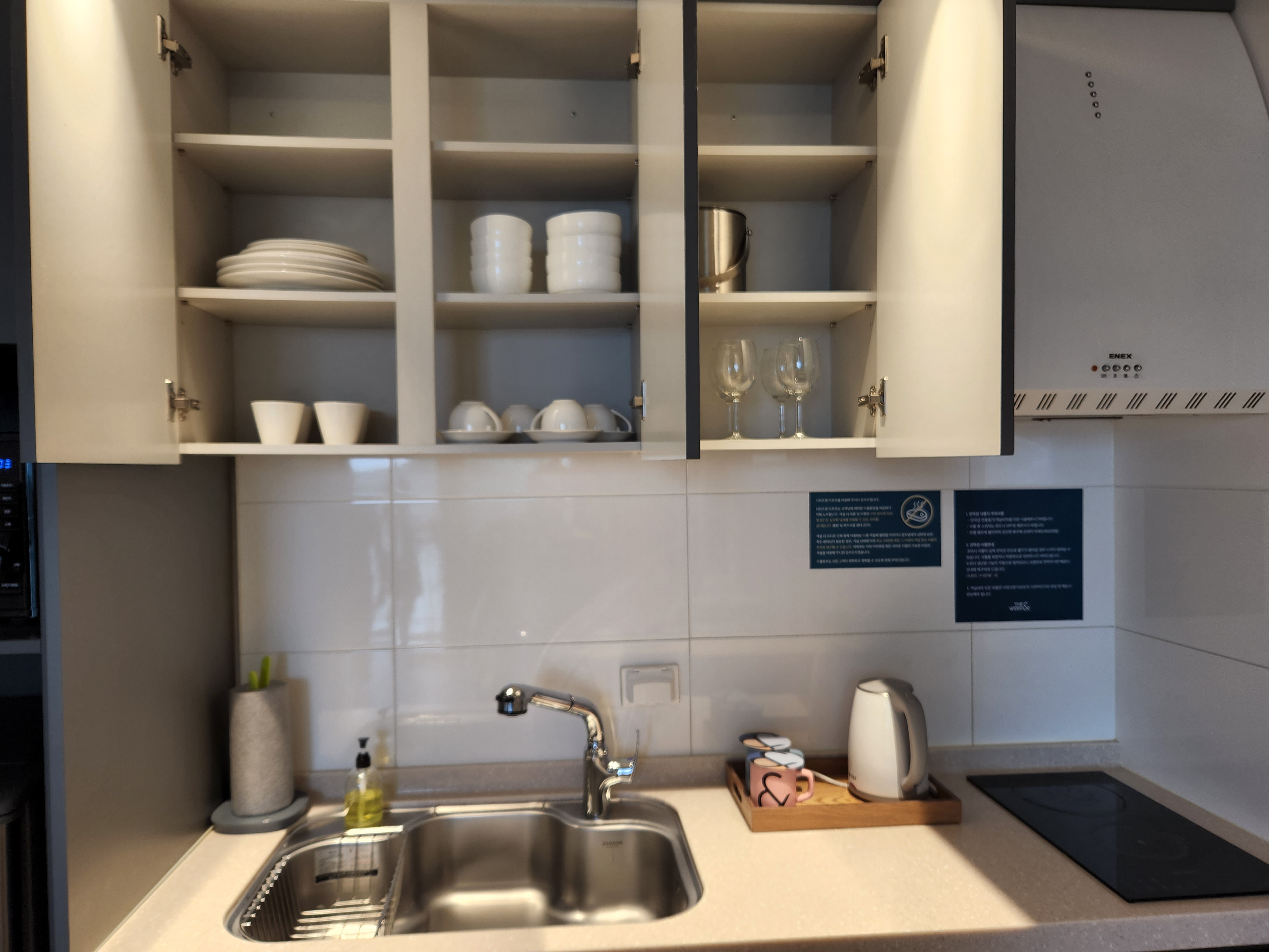 인덕션과 함께 작은 후라이팬과 냄비가 있어 뭘 데워먹기에도 나쁘지 않았는데 냄새나는 음식은 안된다는걸 보니 그냥 가볍게 라면이나 끓여먹어야하는게 아닌가 싶긴 했다.